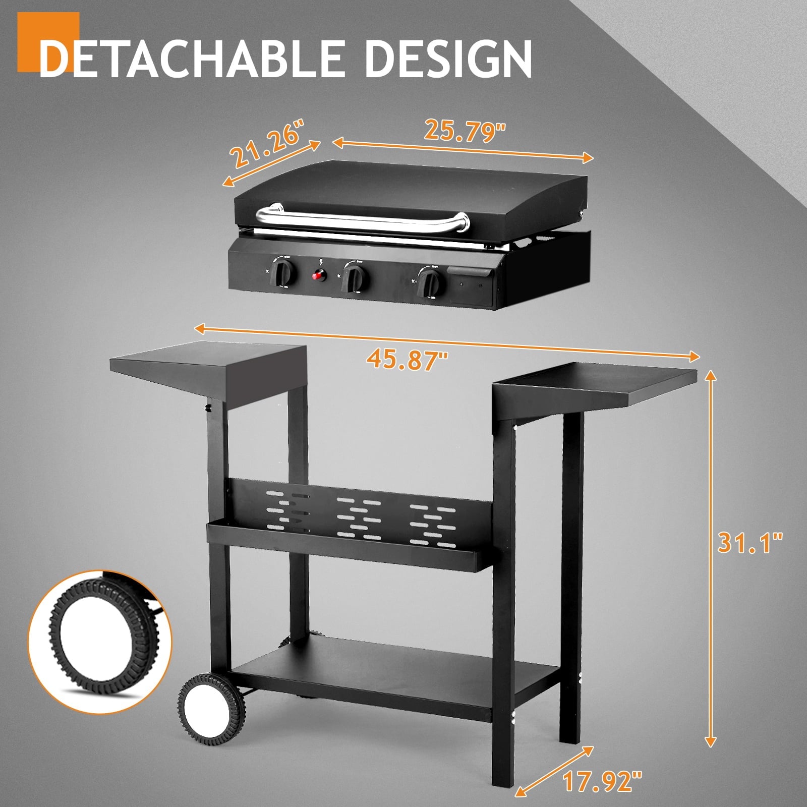 - 😋【Built to Last】: Crafted from **heavy-duty iron and stainless steel**, this seizeen gas griddle withstands years of sizzle and smoke. Plus, its **compact yet robust design** (45.9 x 17.7 x 33.5 inches) fits seamlessly into any outdoor kitchen setup.