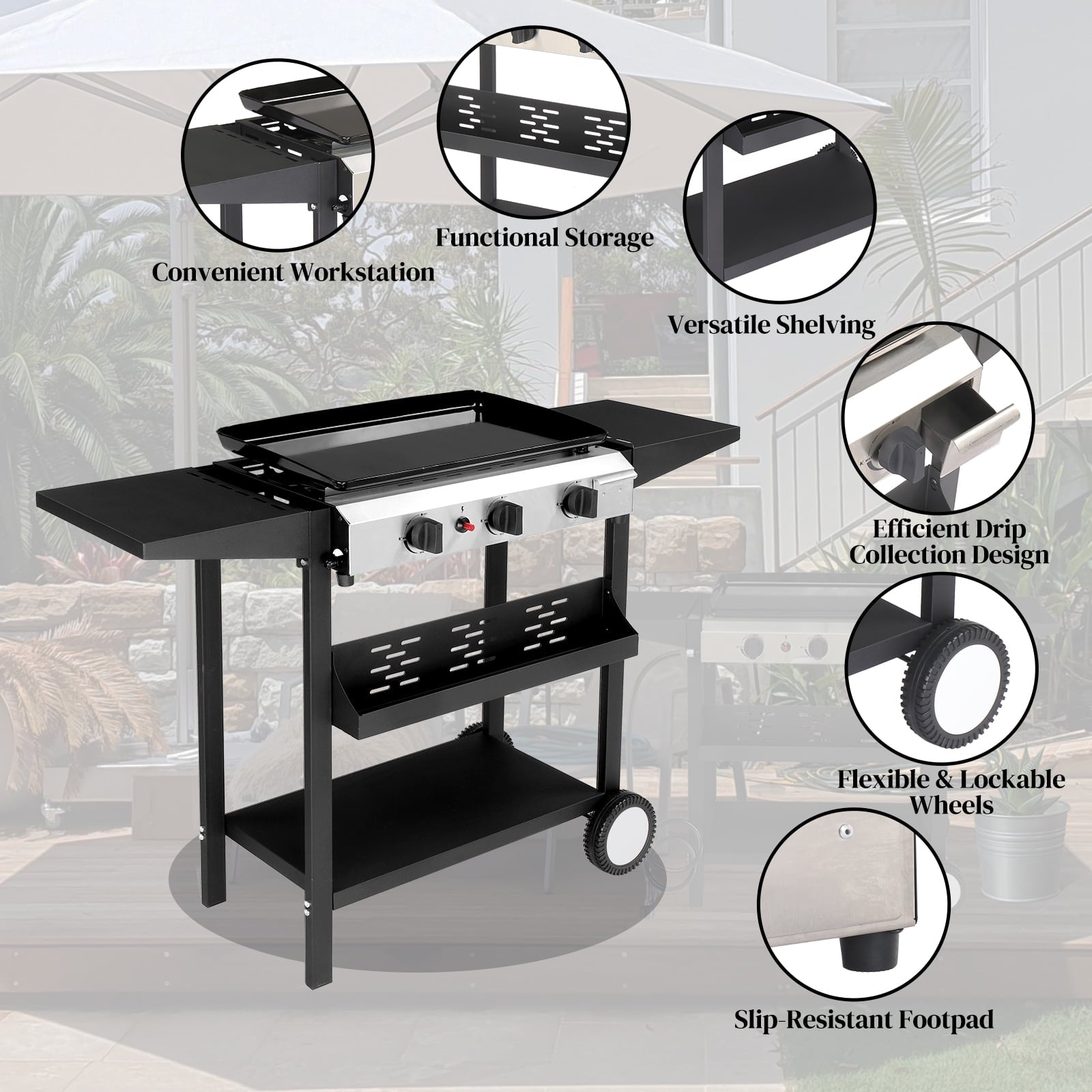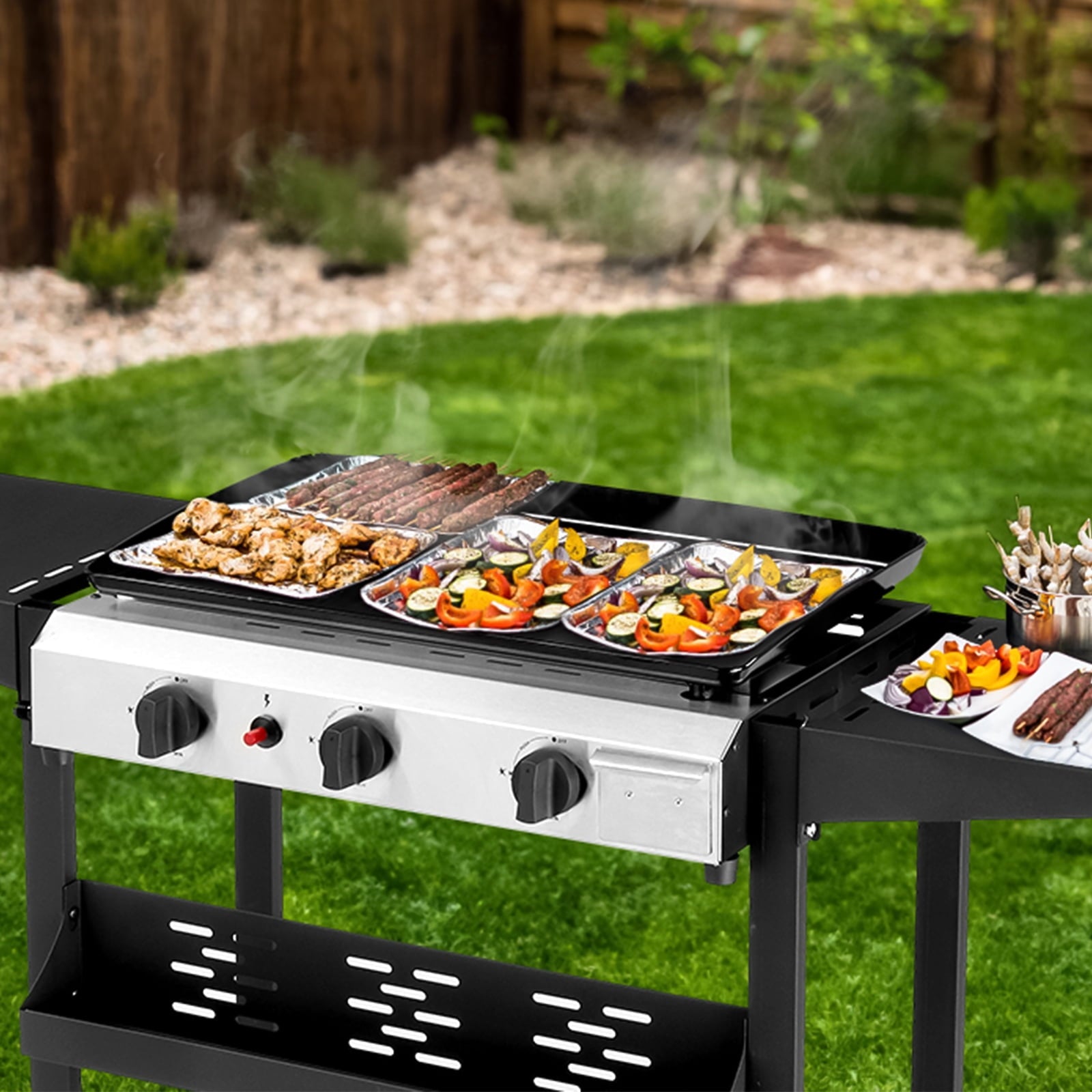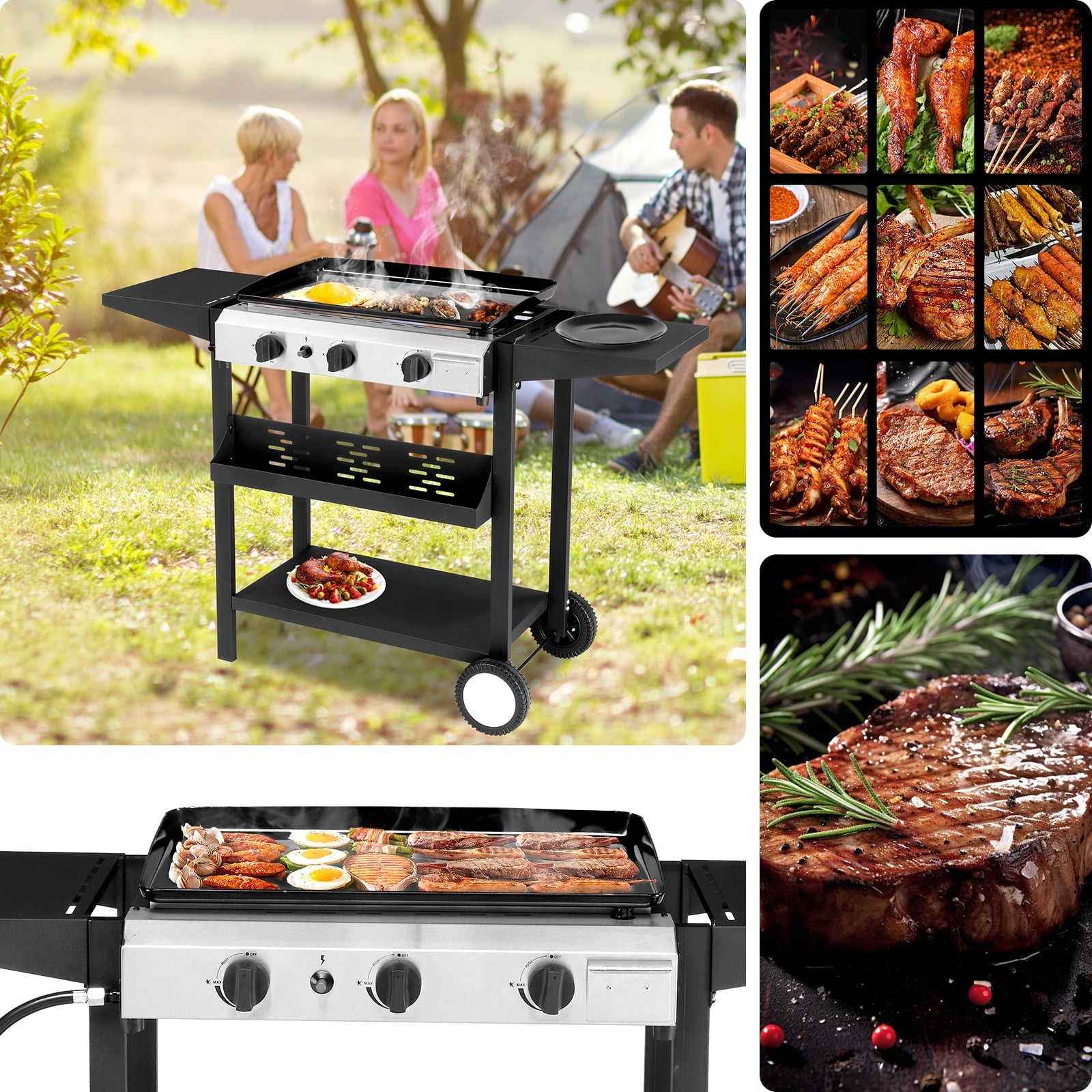 - 😋【Master of Control】: Three **independent burners** let you create multiple heat zones simultaneously. Sear burgers on high, caramelize onions on medium, and keep tortillas warm on low—all at once. Precision is power.