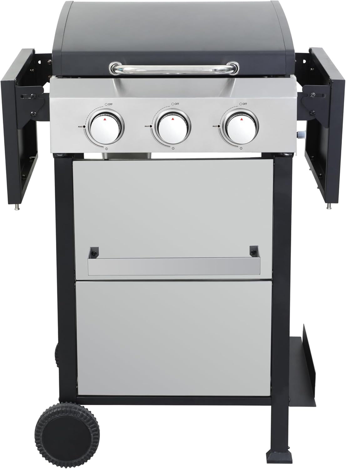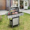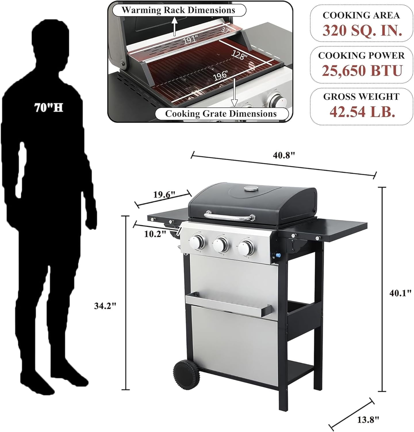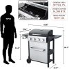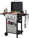 - 【25,650 BTU 3-Burner Stainless Steel Propane Gas BBQ Grill】This propane gas grill has 3 Stainless Steel burners, can put out 25,650 BTU-per-hour with integrated automatic easy ignition, quick start up with the push &turn of a control knob. Product Dimensions: 40.8″(W) x 19.6″(D) x 40.1″(H). 2pcs 6inch wheels for easy transport.
