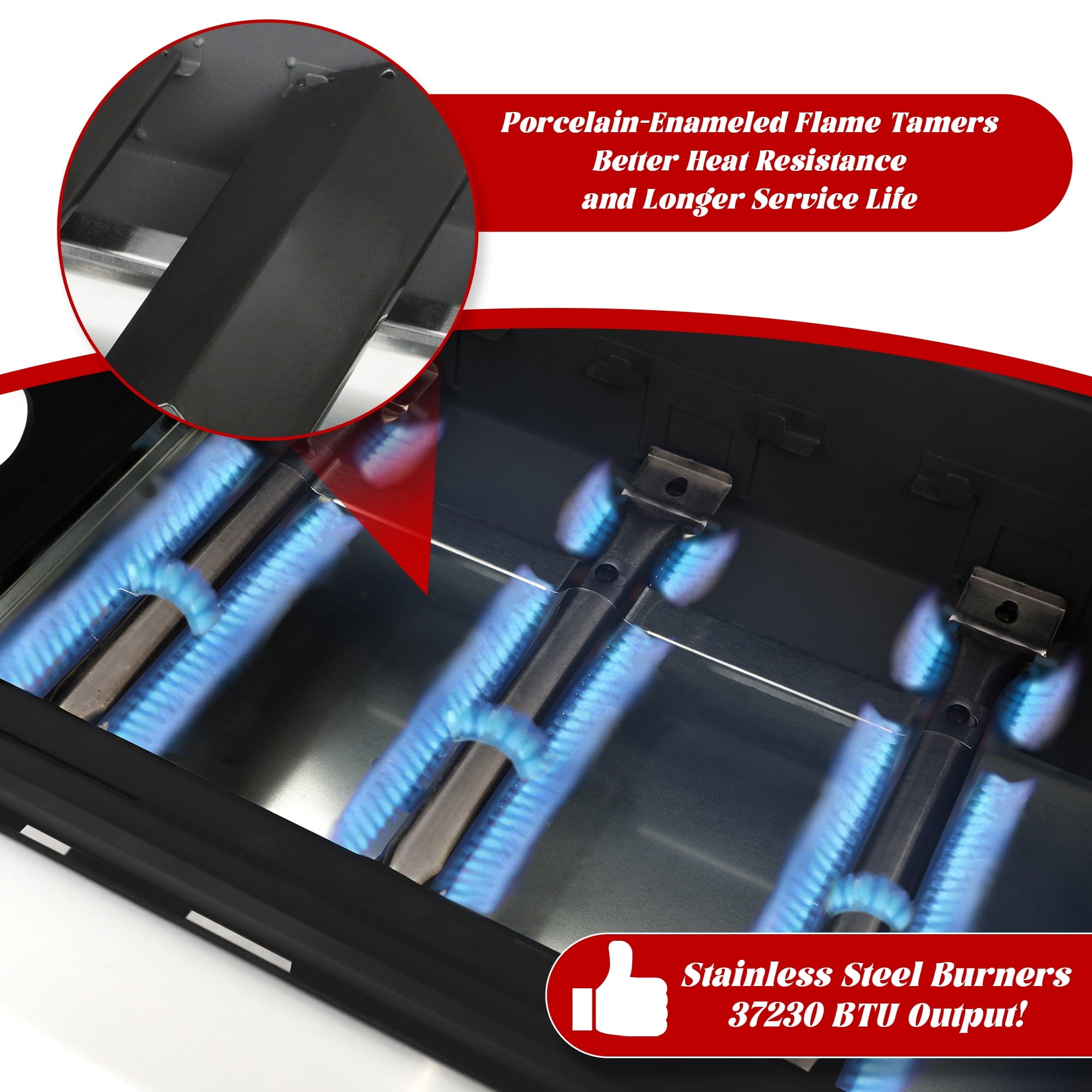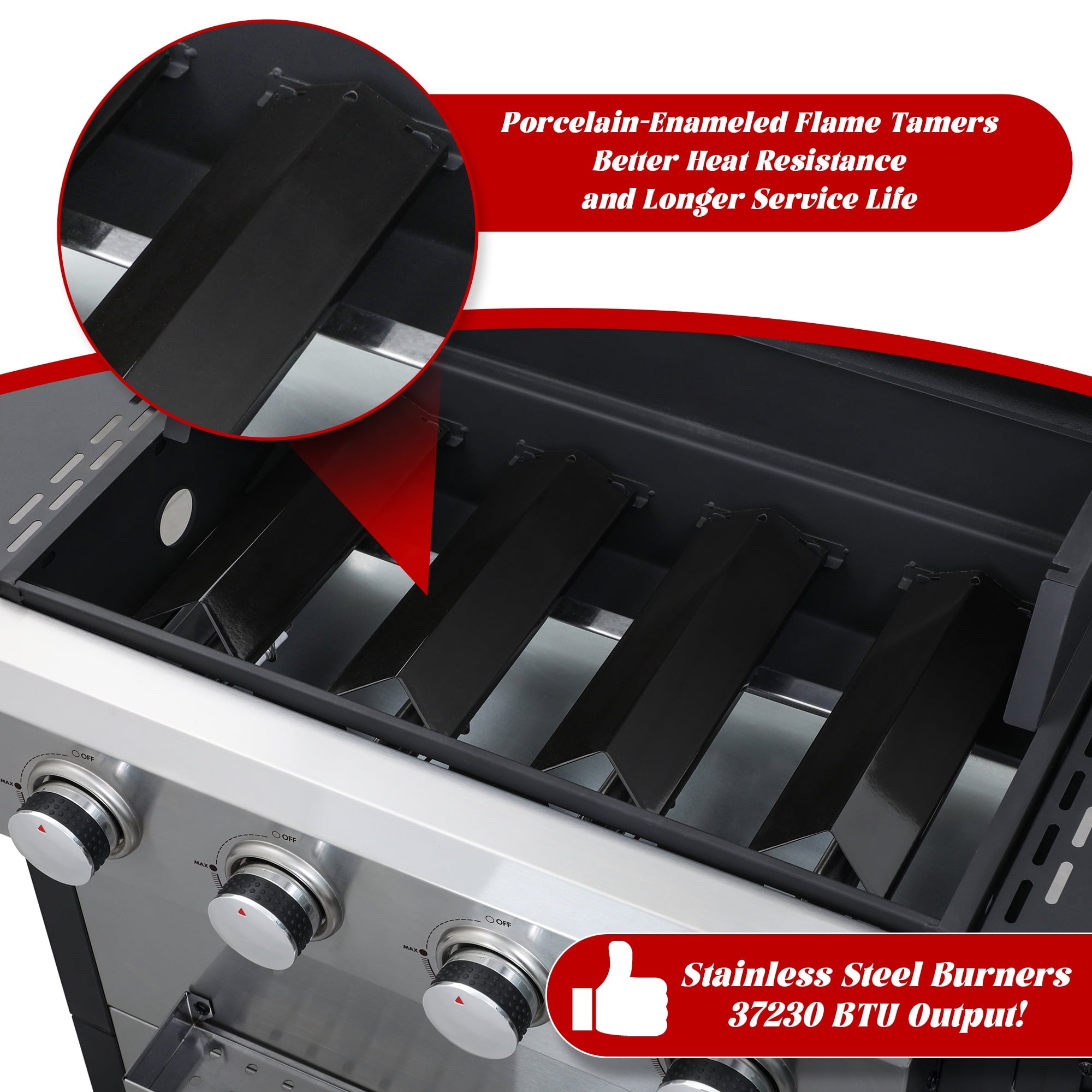 - Even Heat Distribution: The stainless steel burners and enameled flame tamers ensure consistent heat across the entire cooking surface, double layer lid for thermal protection in meal, so every bite is cooked to perfection.