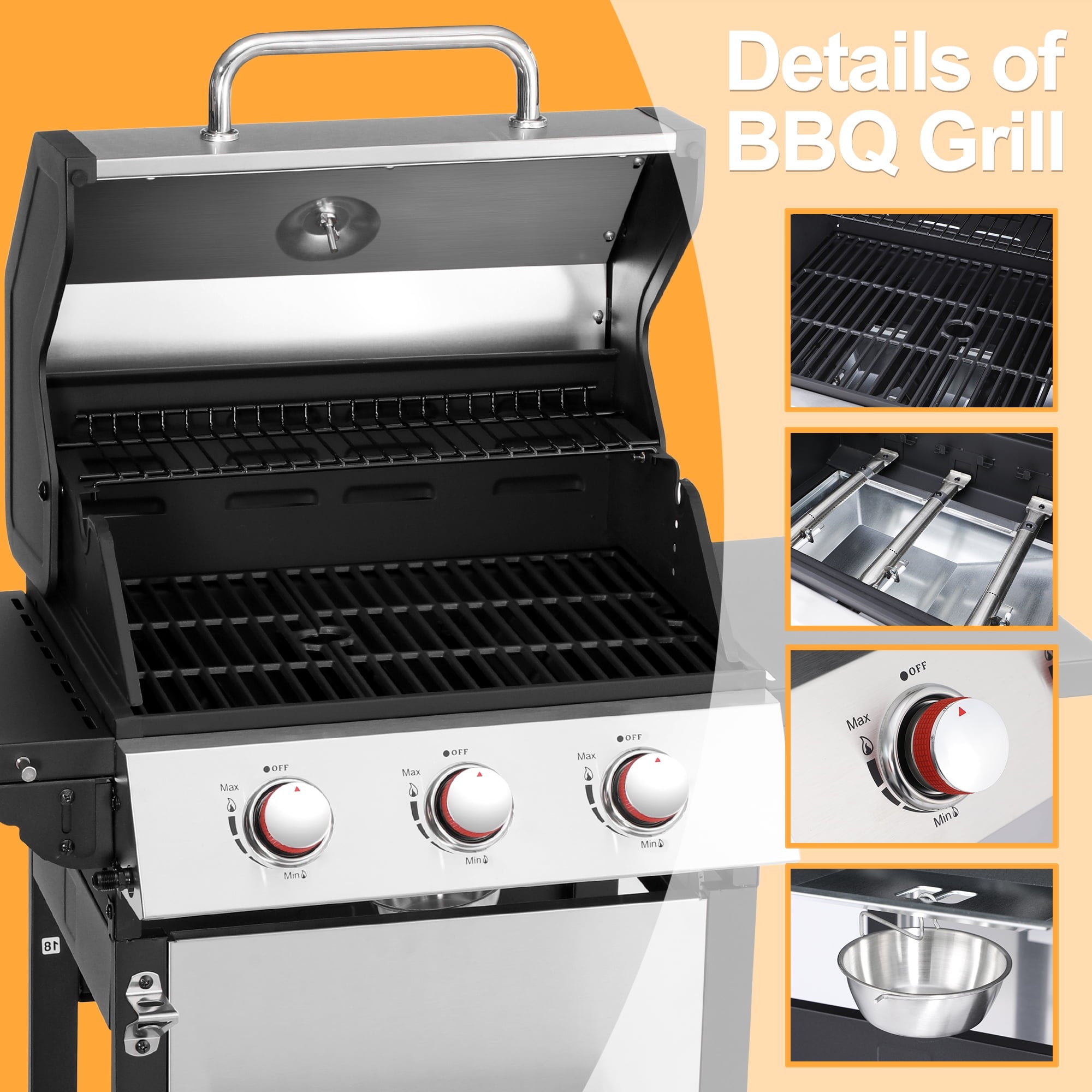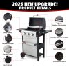 - Powerful Cooking Output: Equipped with three main burners (10,000 BTU each), this grill ensures fast, even heating for perfectly grilled meals. The performance ensures consistent heat across the entire cooking surface, so every bite is cooked to perfection.