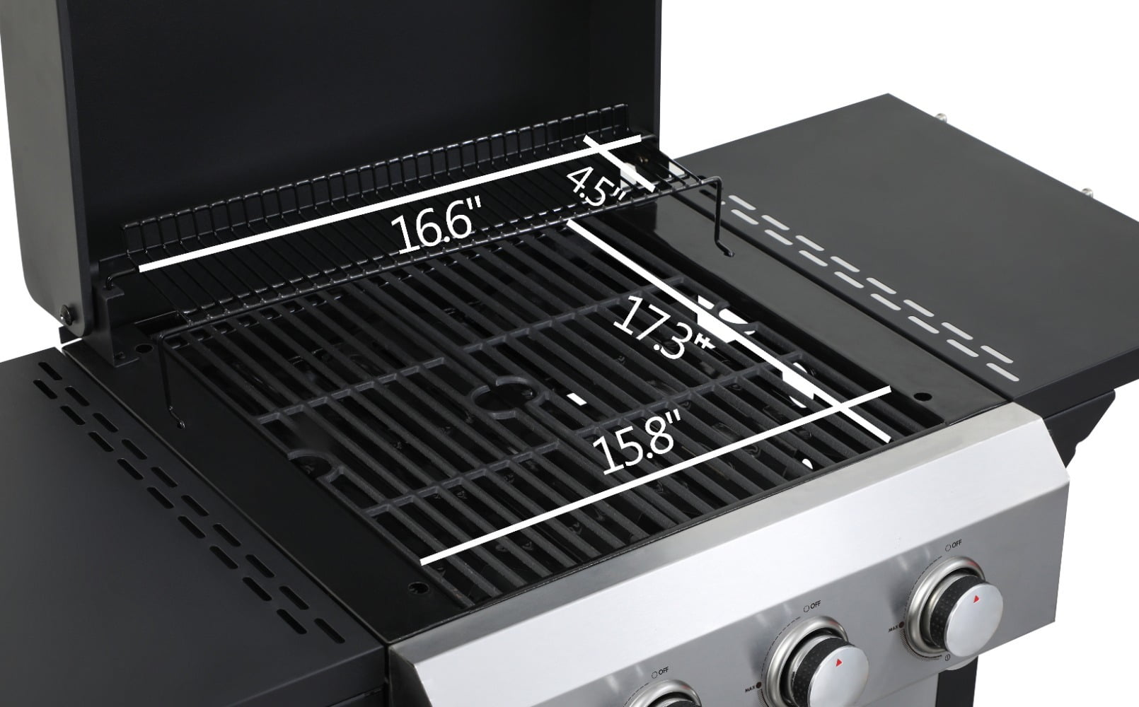 FireboxFirebox: Steel, with high-temp resistant(550C) powder coating wire enamel cooking grids: 1pc 11.8×13.2inch + 1pc 7.9×13.2inch