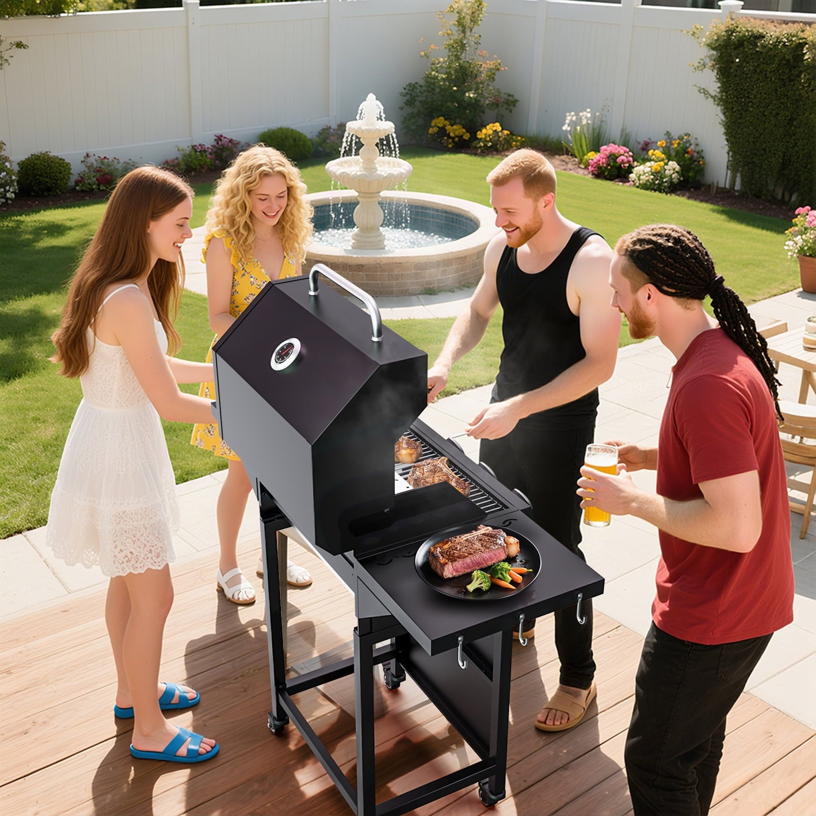 - Large Space Design: Portable and Space-Saving Design – Features foldable side shelves and compact dimensions, making it ideal for backyard parties, camping trips, and tailgating events
