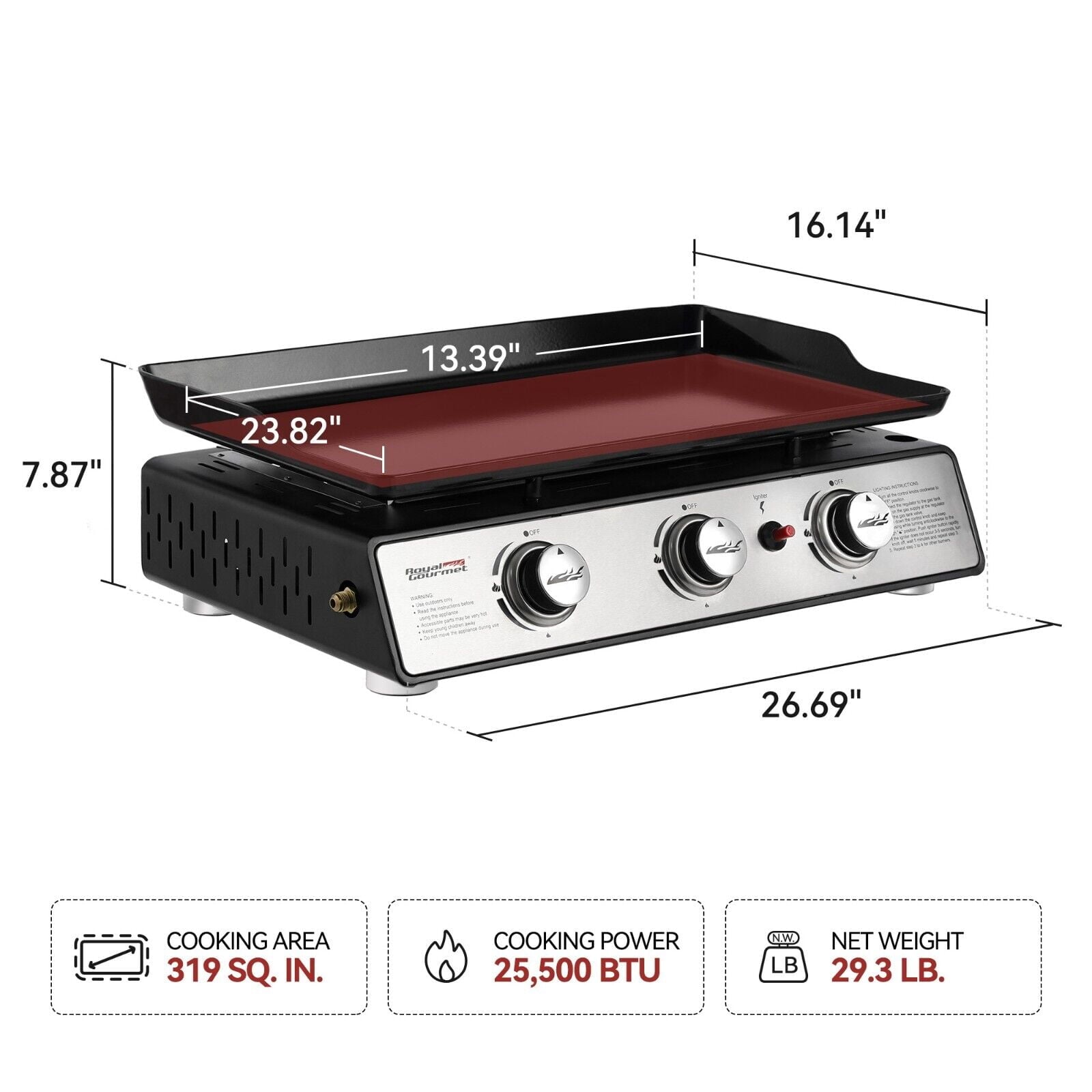 3-Burner Propane Tabletop Griddle Regulator & Cover Included