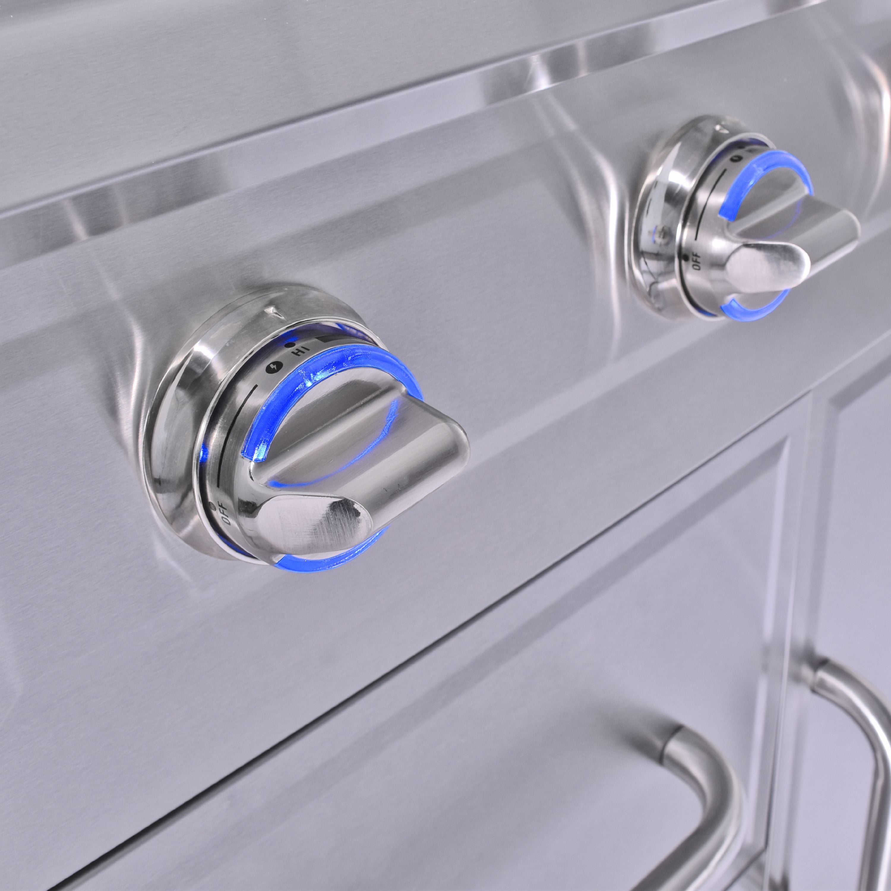 - Blue LED illuminated knobs