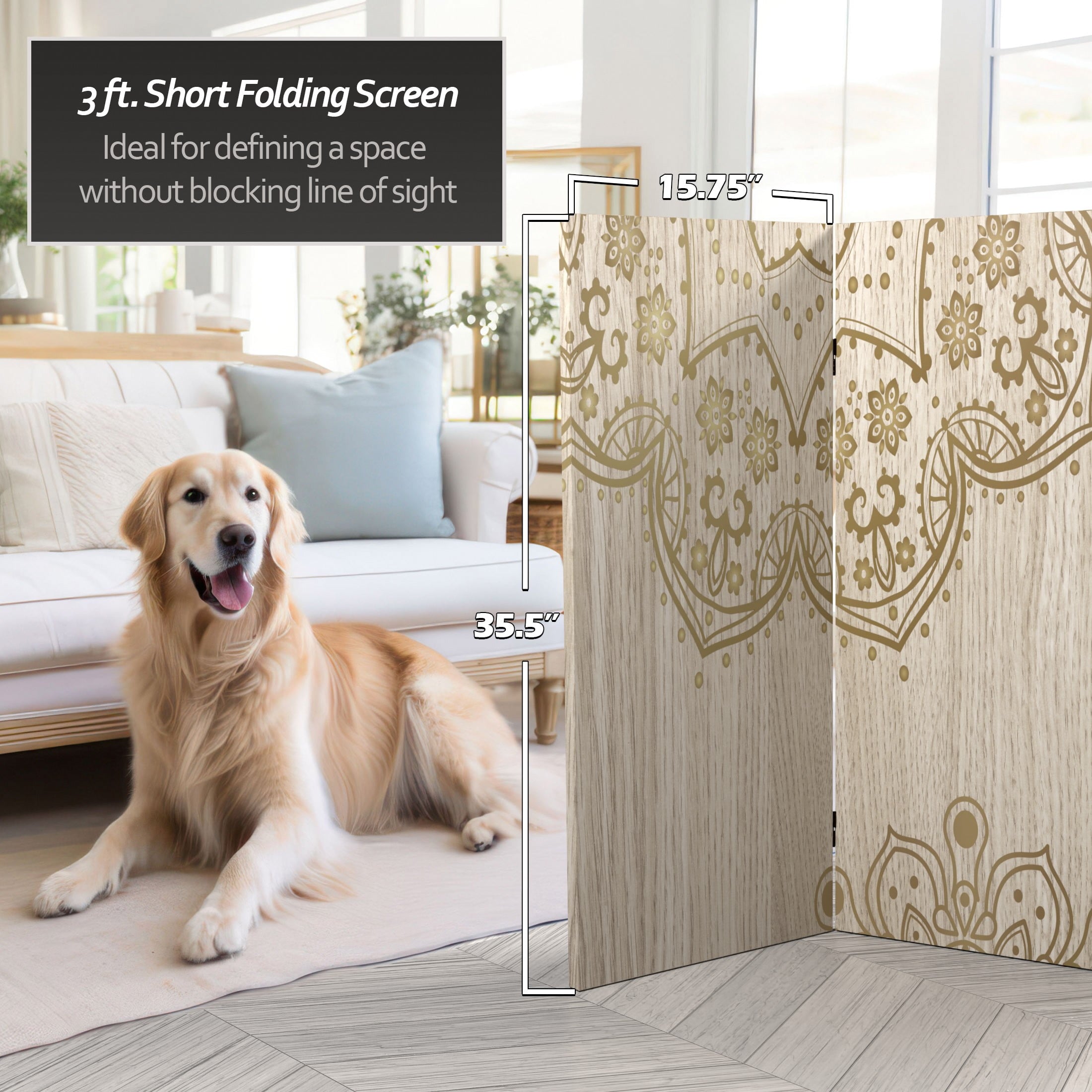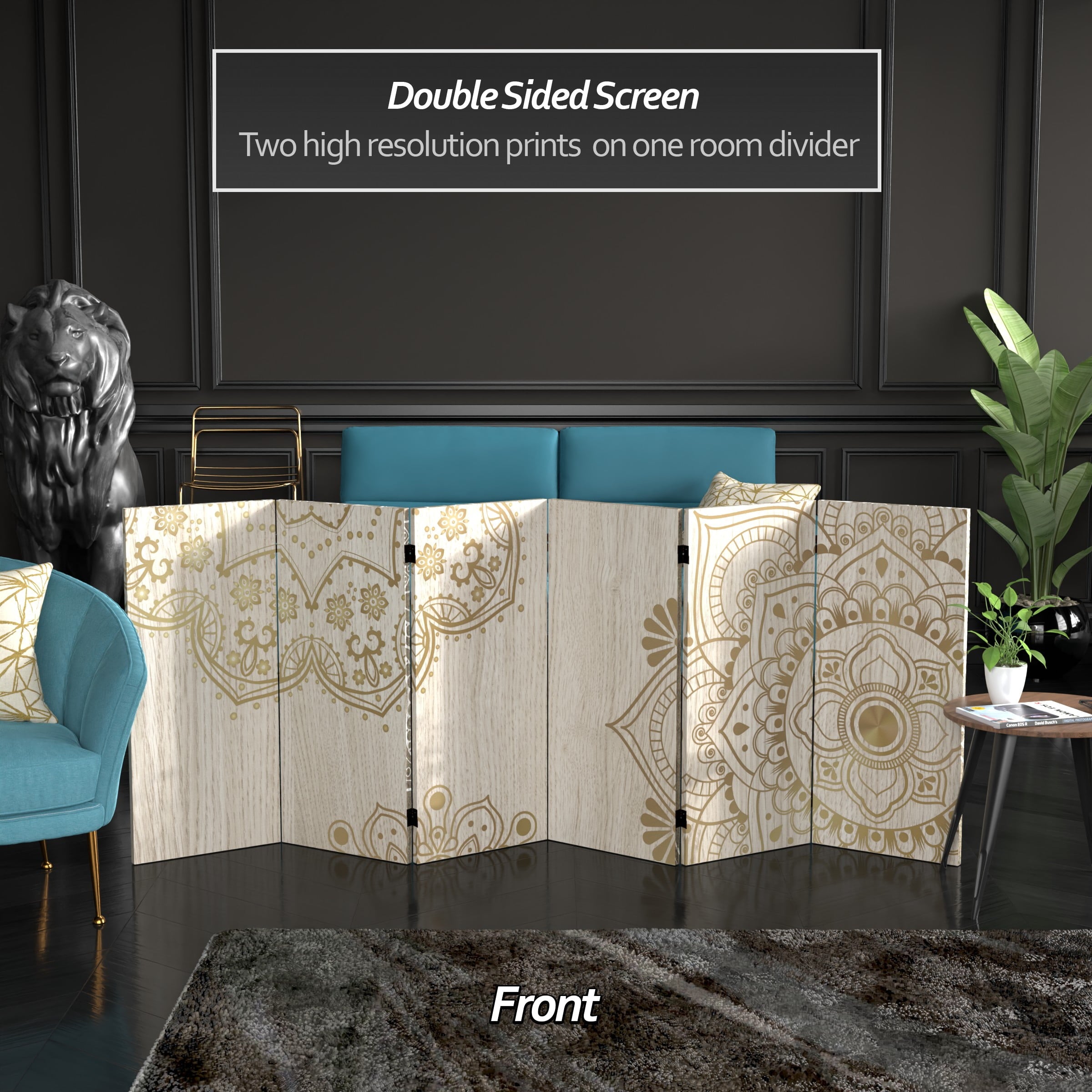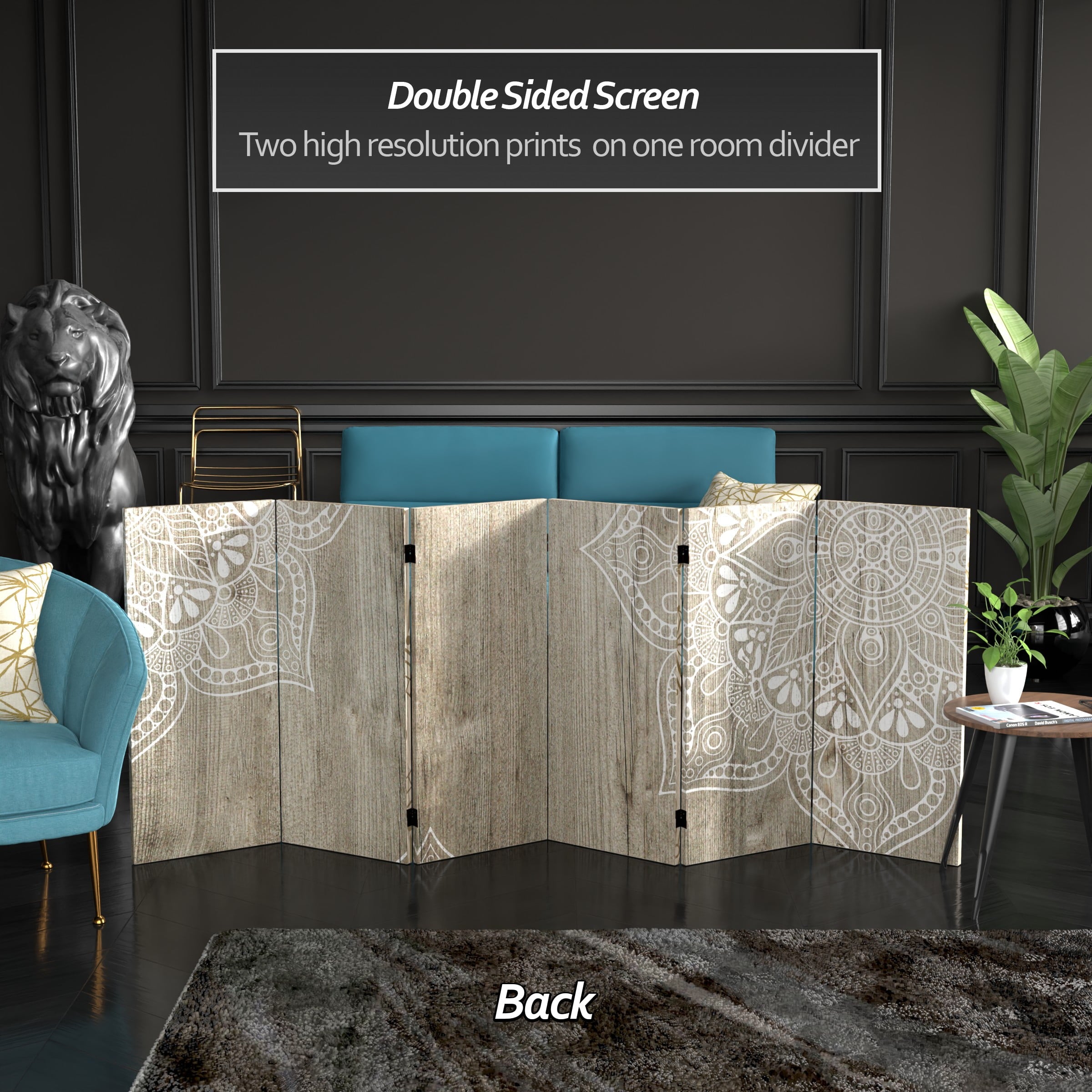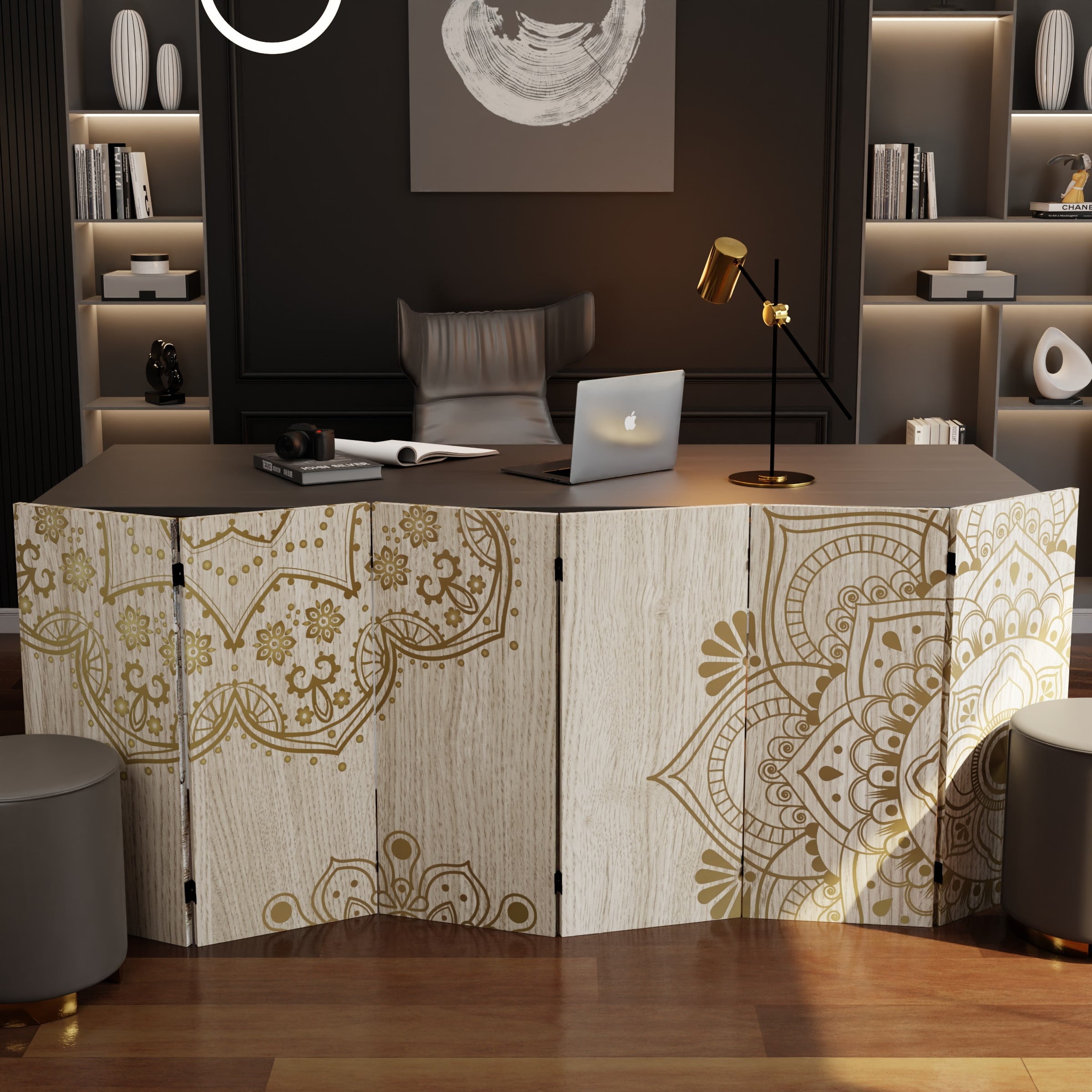 Introducing our 3 ft. Short Double Sided Mandala on Oak Canvas Folding Screen, a captivating addition to your interior decor. Made with high-quality canvas, this folding screen showcases a mesmerizing mandala design on both sides. The mandala represents harmony and spiritual balance, infusing your space with a sense of tranquility. Its smaller size and folding panels offer versatility and ease of use. Experience a visual and spiritual journey with our Mandala on Oak Canvas Folding Screen.