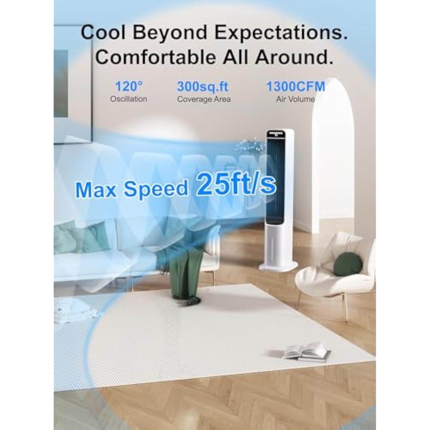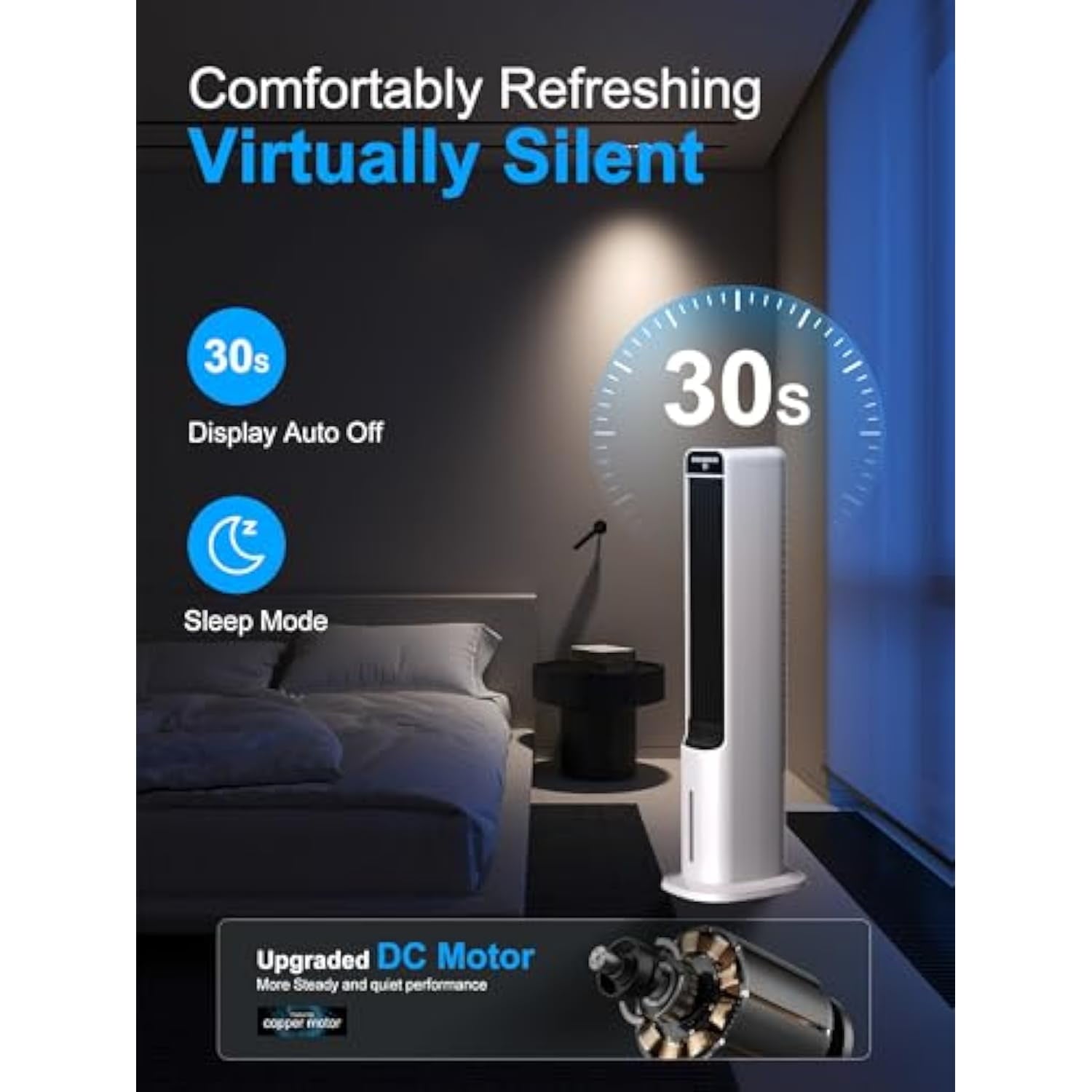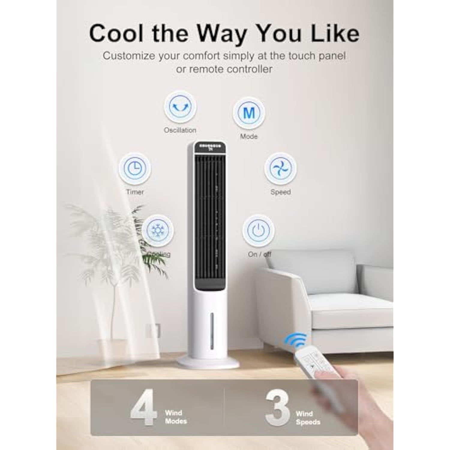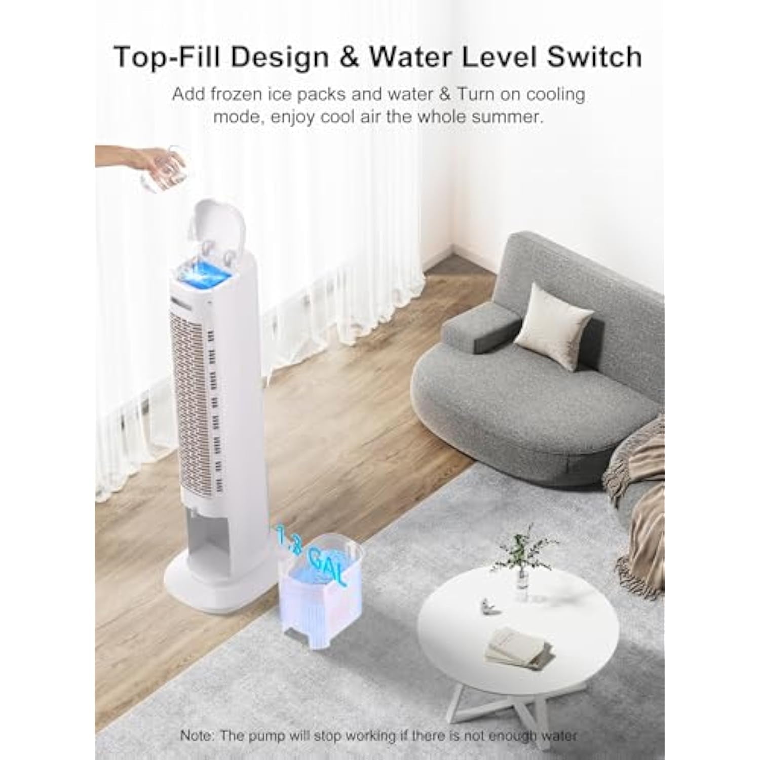 Designed in a sleek tower-fan style, this unit combines space-saving elegance with effortless operation. Its intuitive controls and easy-to-fill water tank make maintenance a breeze. Enjoy year-round comfort without the clutter or complexity of traditional appliances—simple, efficient, and ready to adapt to your every need.