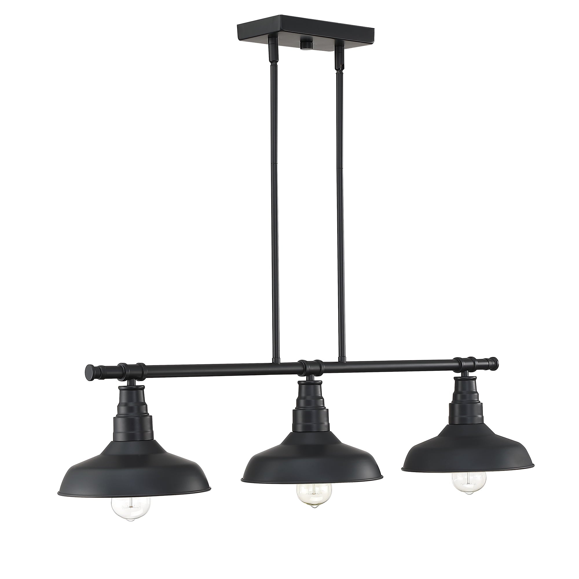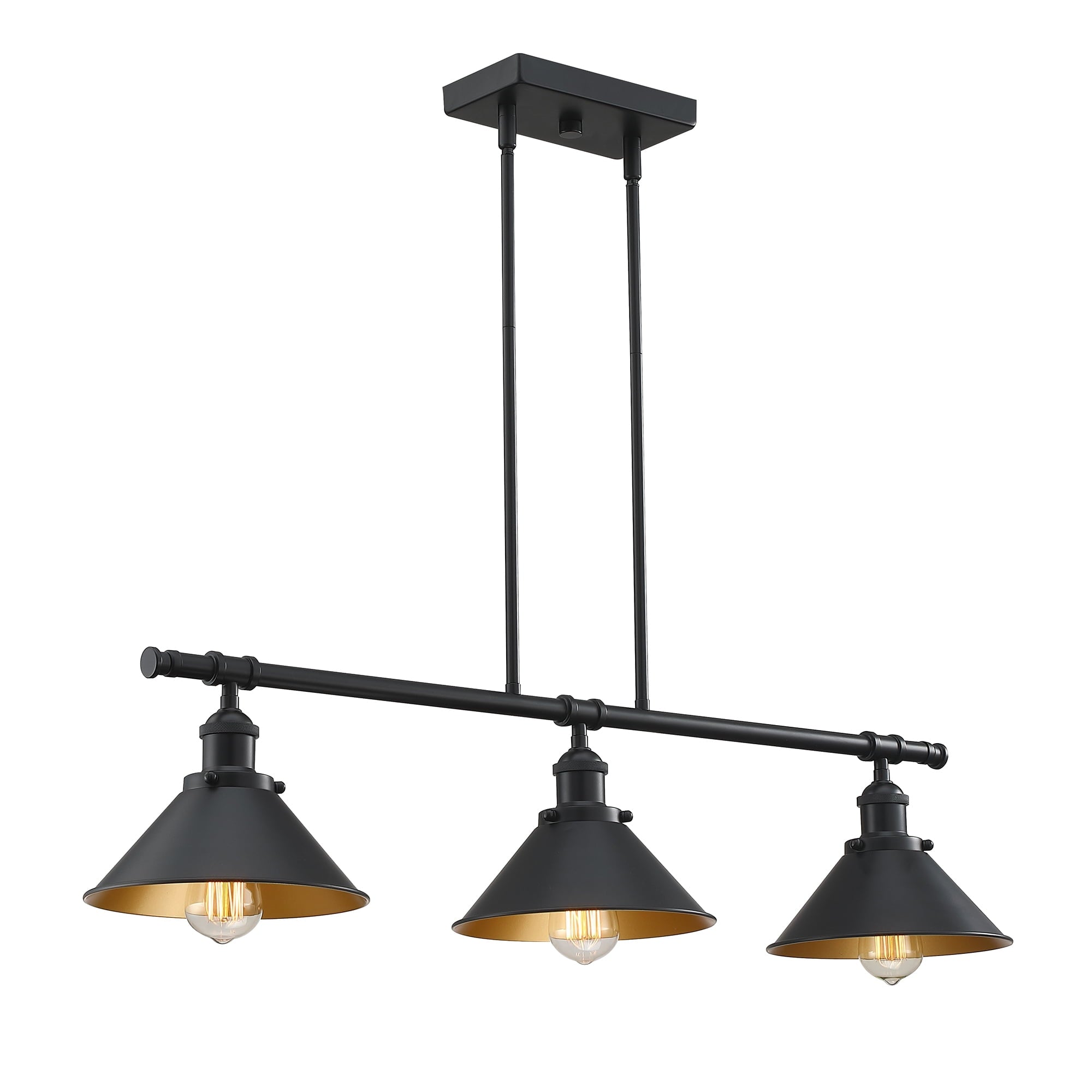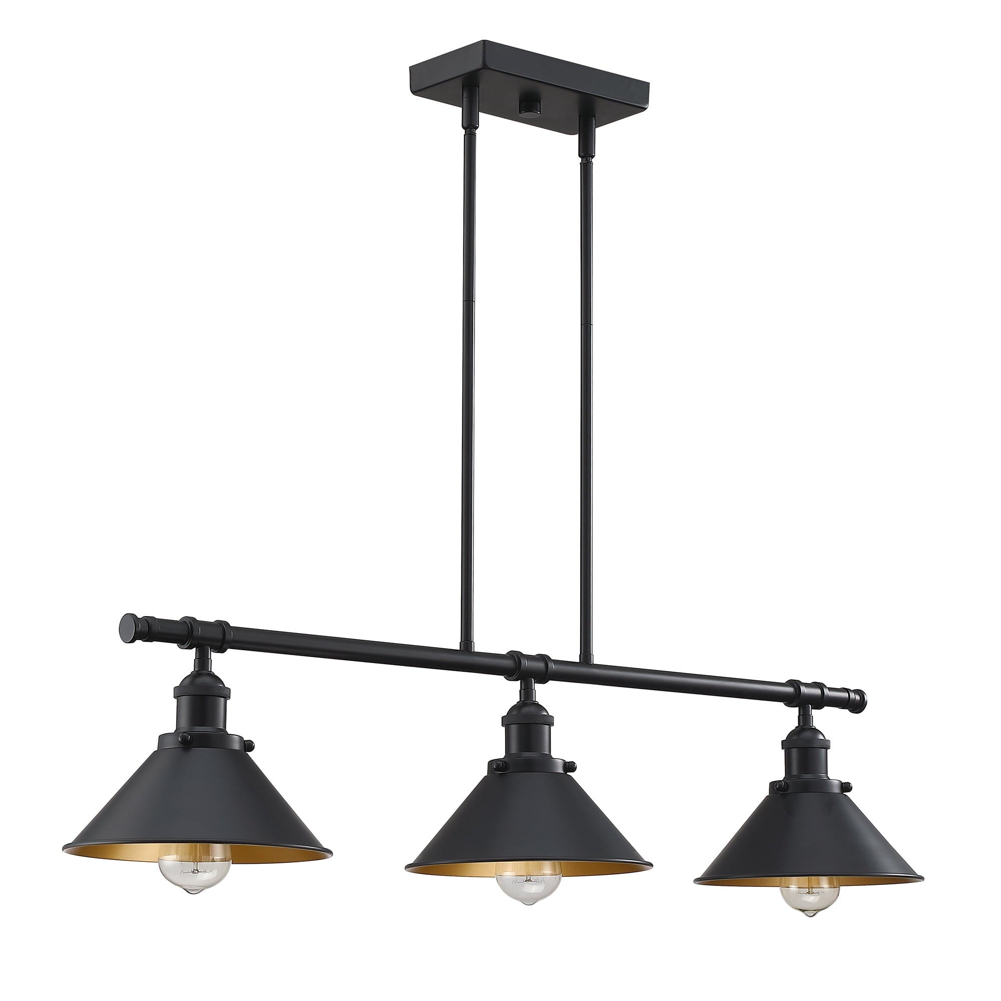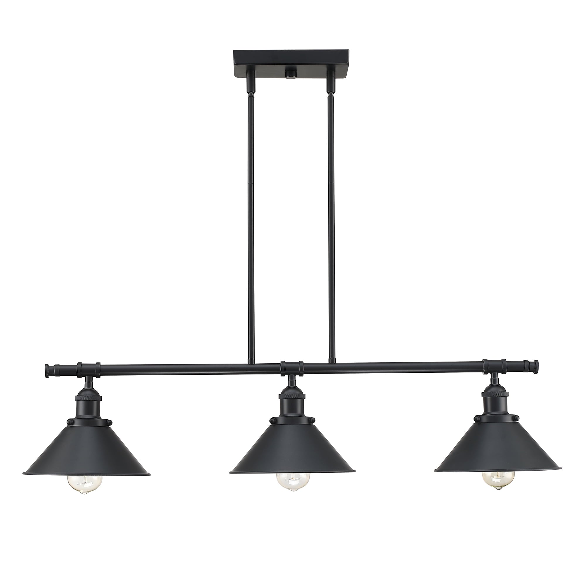 - The three matte black cone shades direct the pendant lighting from the 60W bulbs (bulb not included) directly on to your kitchen island.