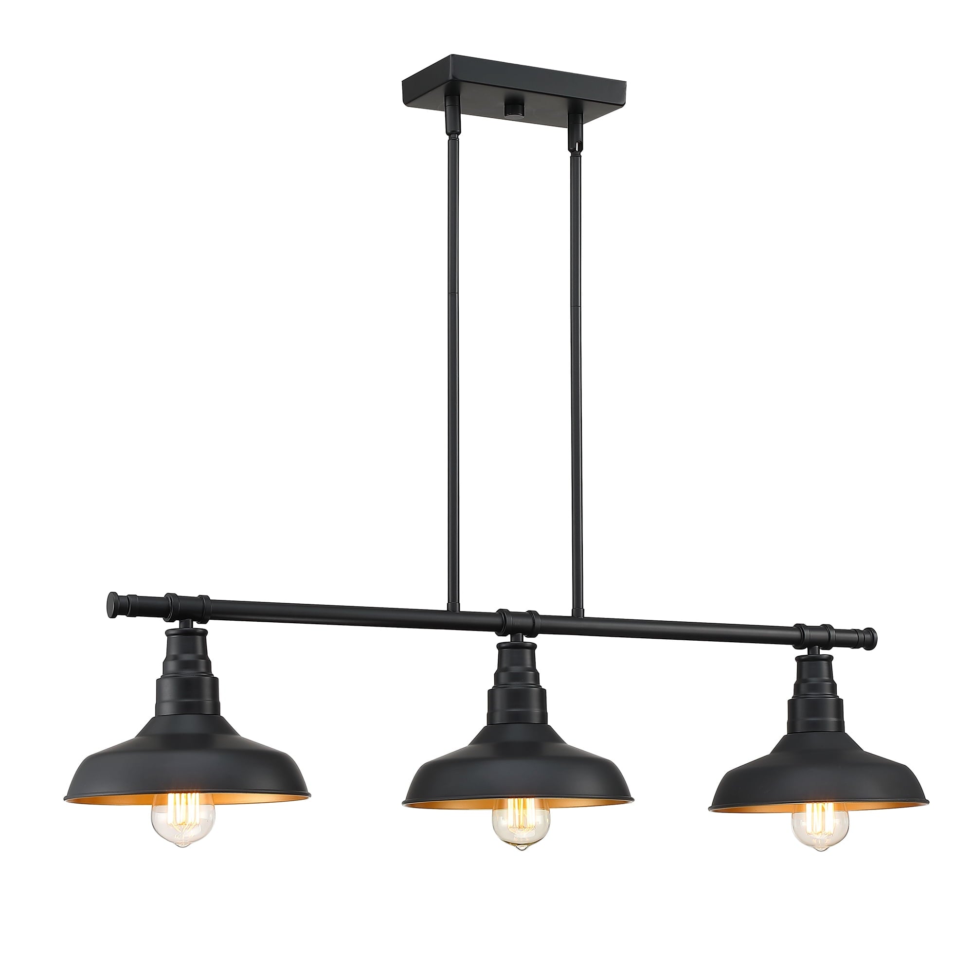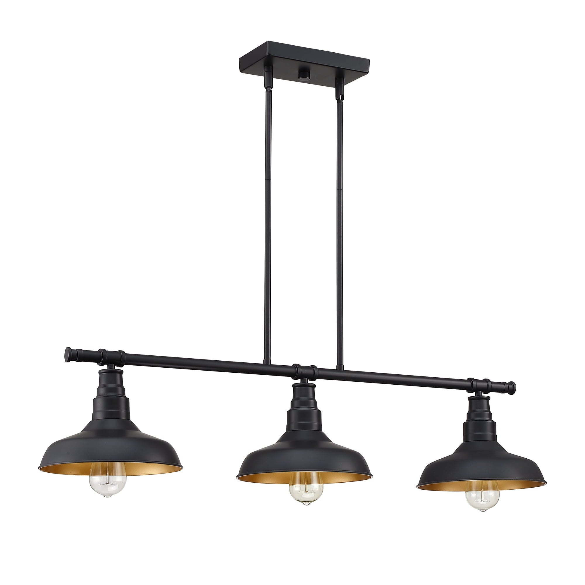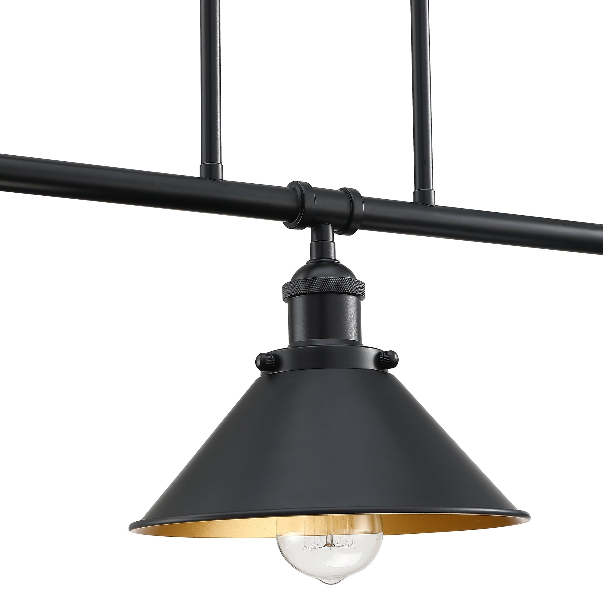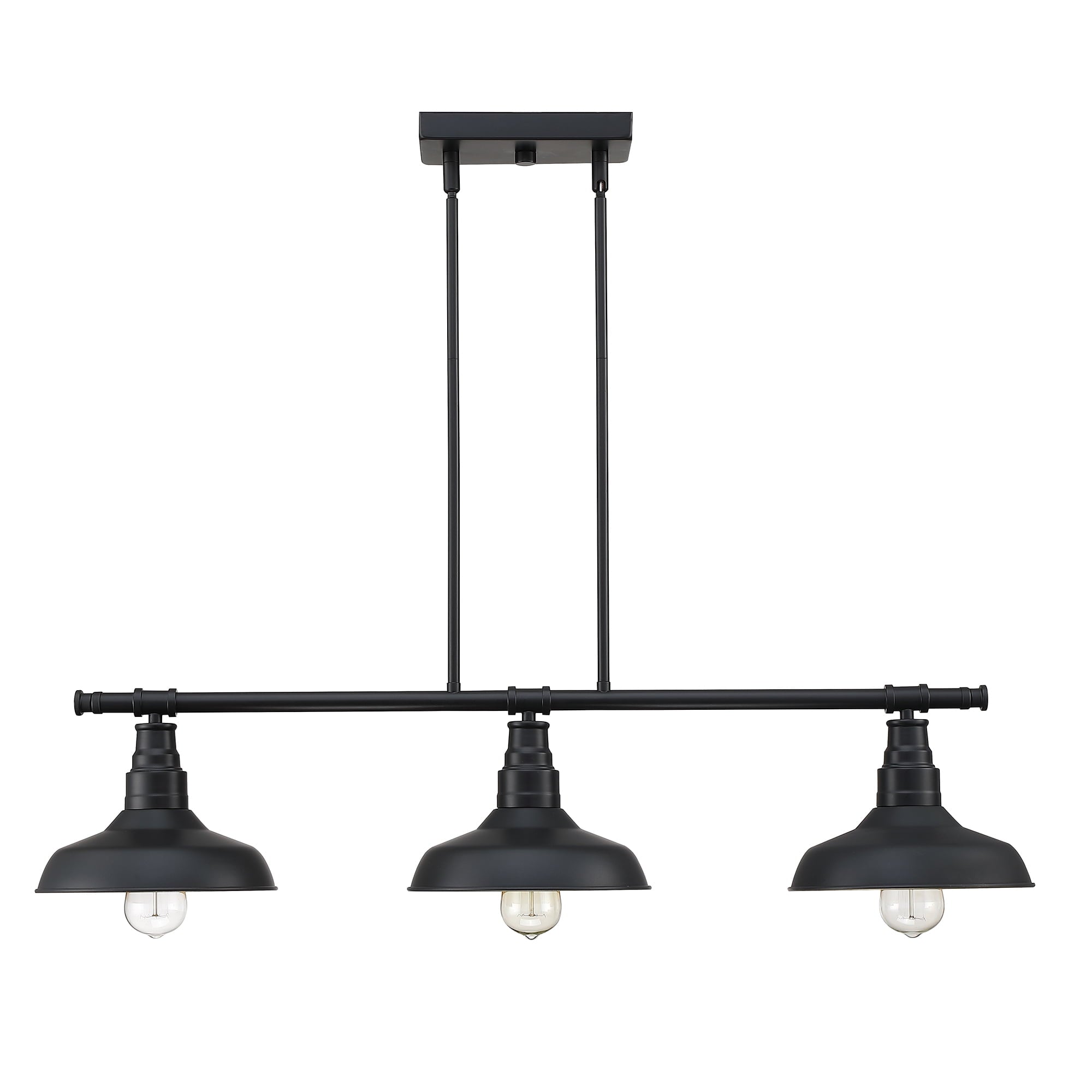 - The three matte black cone shades direct the pendant lighting from the 60W bulbs (bulb not included) directly on to your kitchen island.