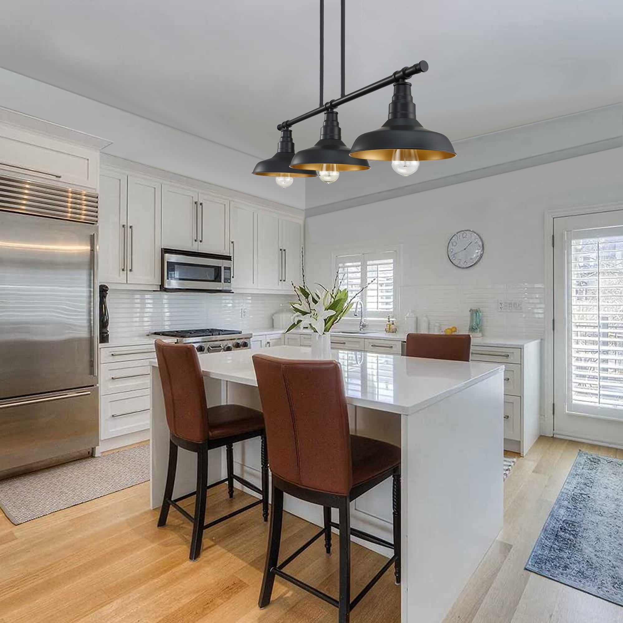 - Modern Style Look: The matte black finish rectangular metal frame gives this 3-light kitchen light fixture a modern style.