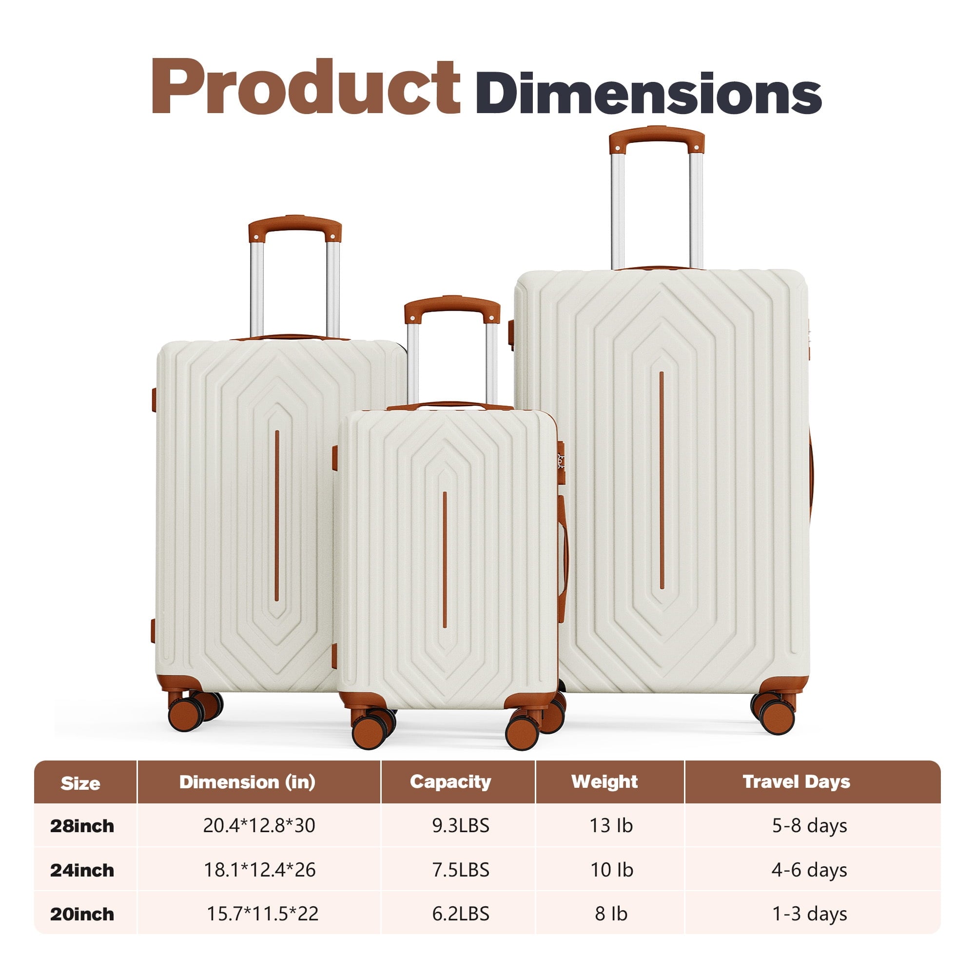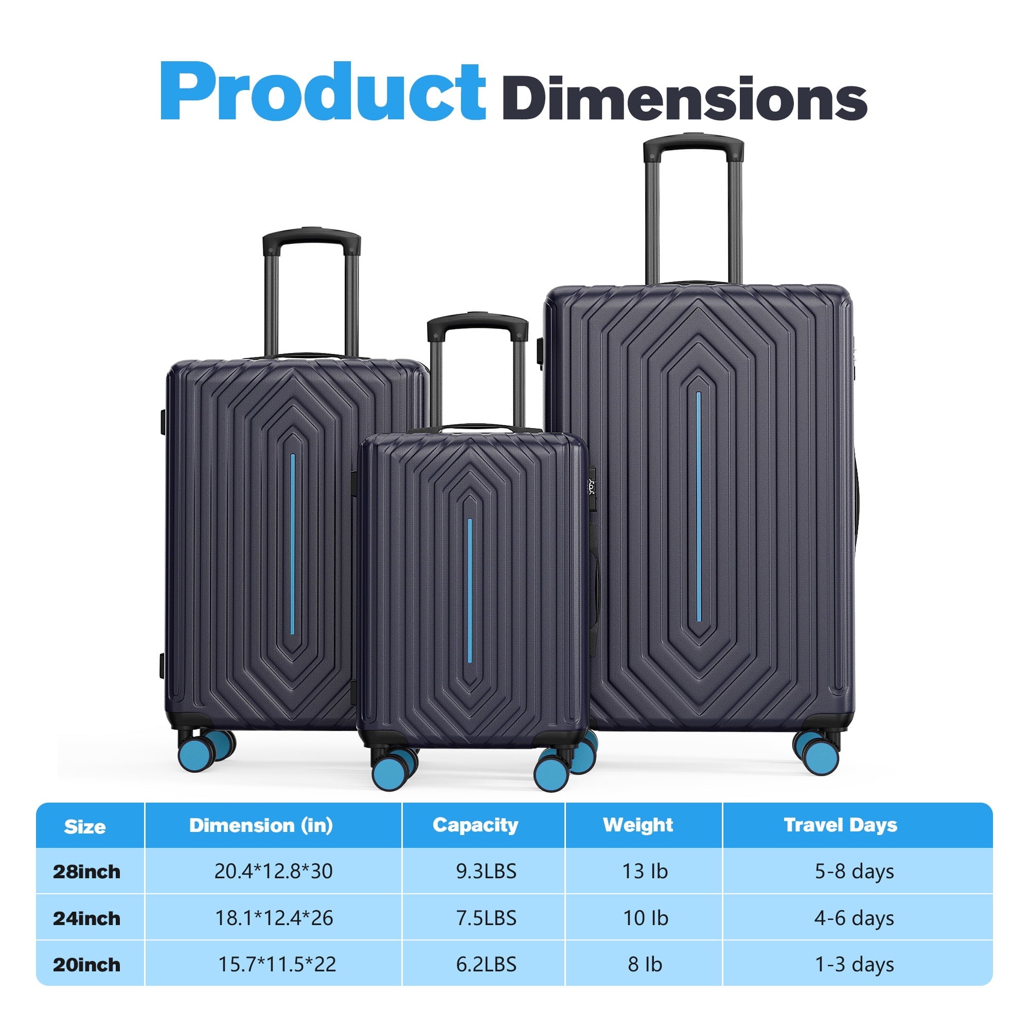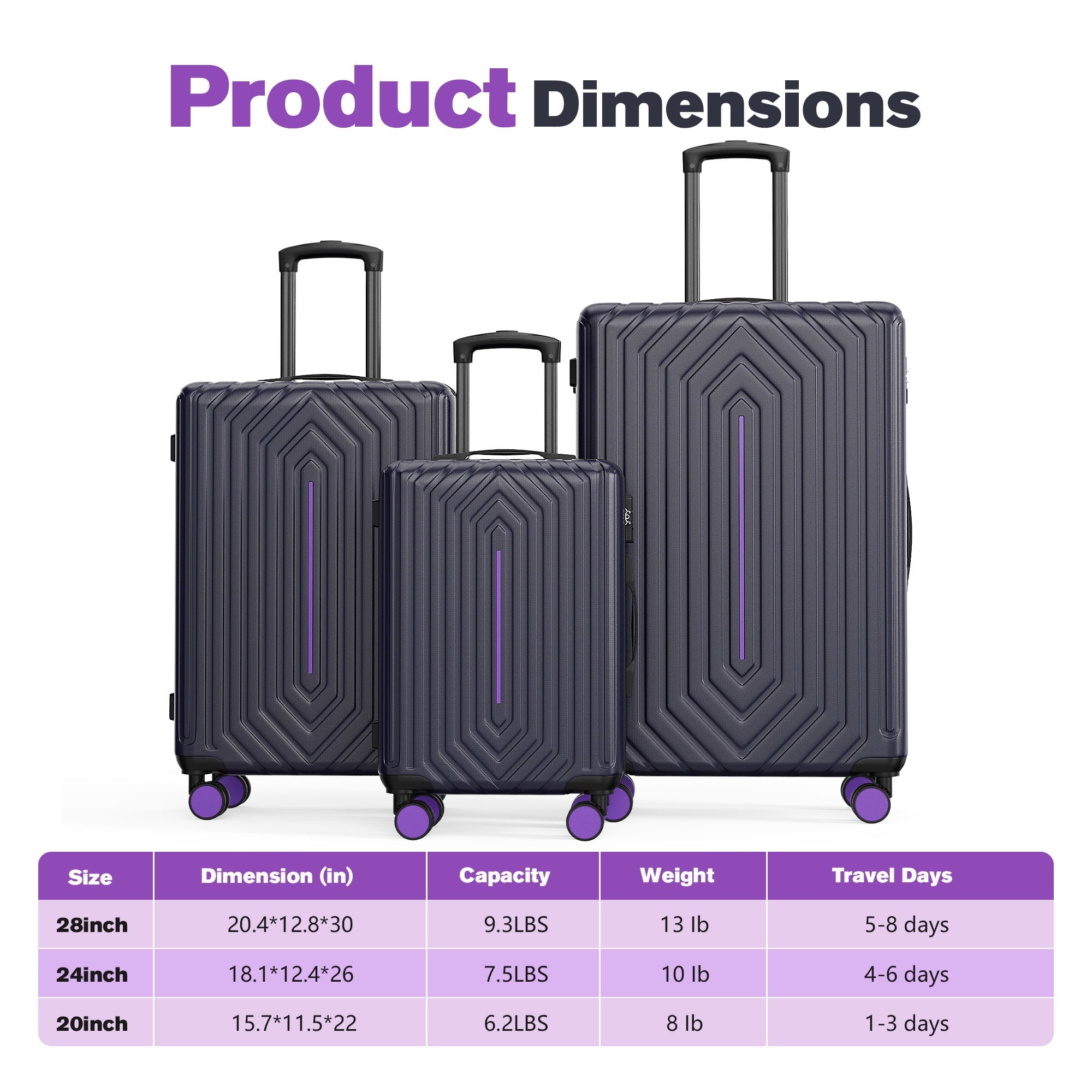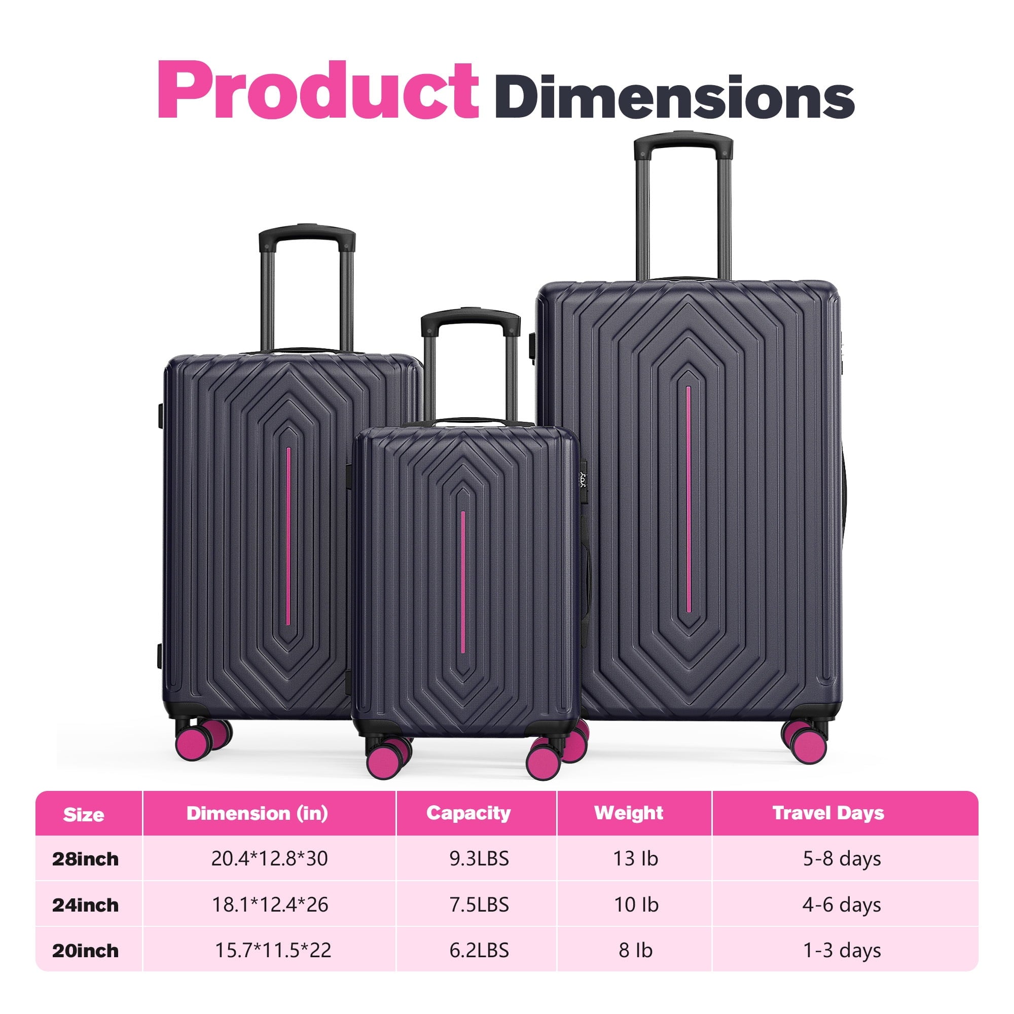 - 28″ Lugagge – 20.4″L x 12.8″D x 30″H