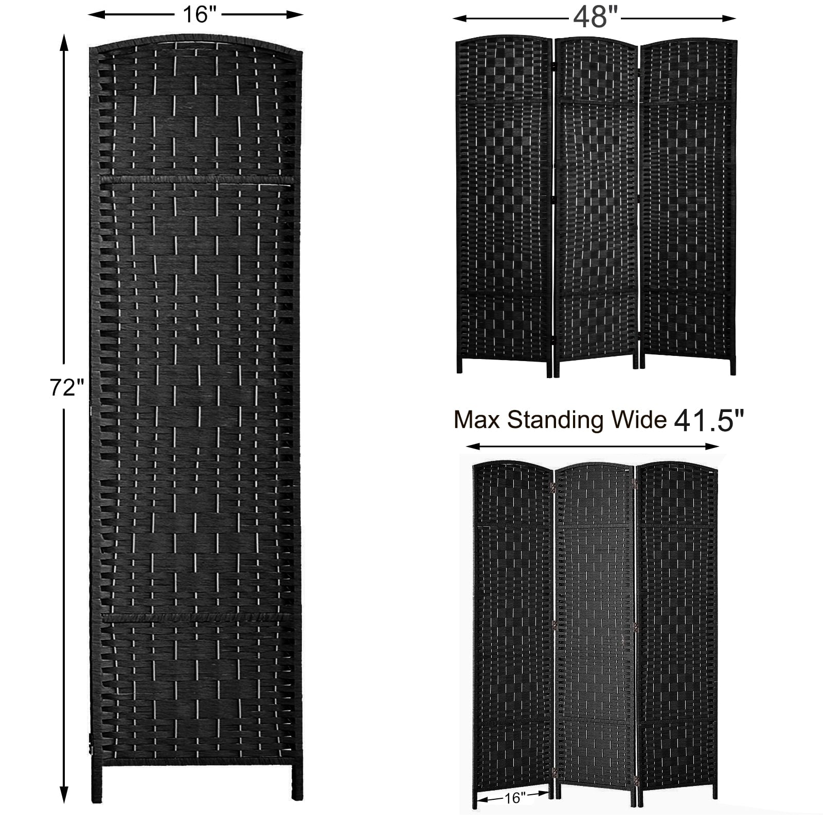 Home Room Dividers & Panel Screens 3-Panel Room Divider, 6 ft Office Partition Walls Wood Divider Folding Portable Privacy Screen, Room Dividers and Folding Privacy Screens for Home, Room Separator Wall Dividers,Black