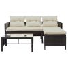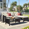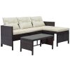 3 PCS Patio Sectional Sofa Conversation Set, All Weather Rattan Patio Furniture Set, Brown Outdoor Chaise Lounge Set with Cushion and Table, Deck Backyard Porch Furniture