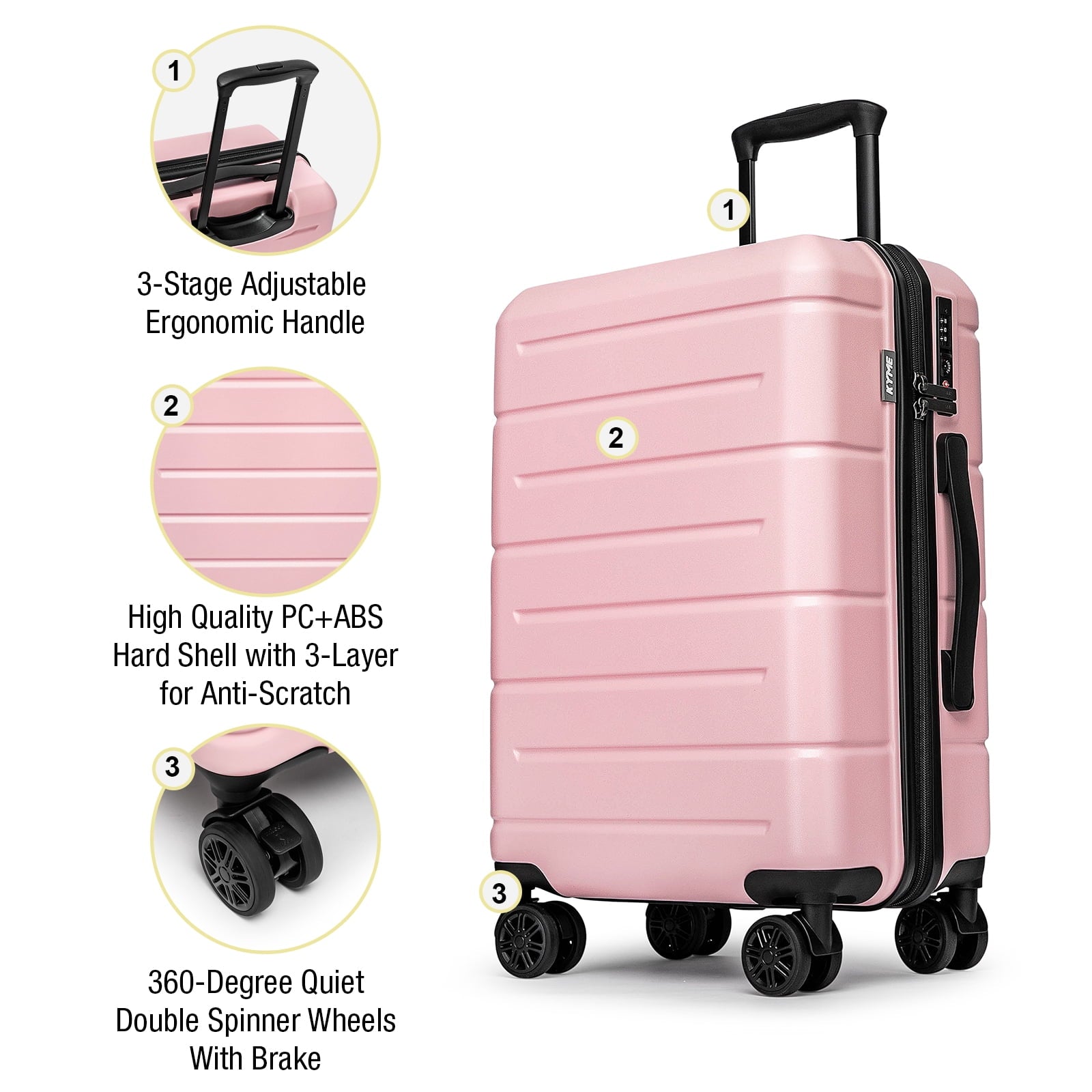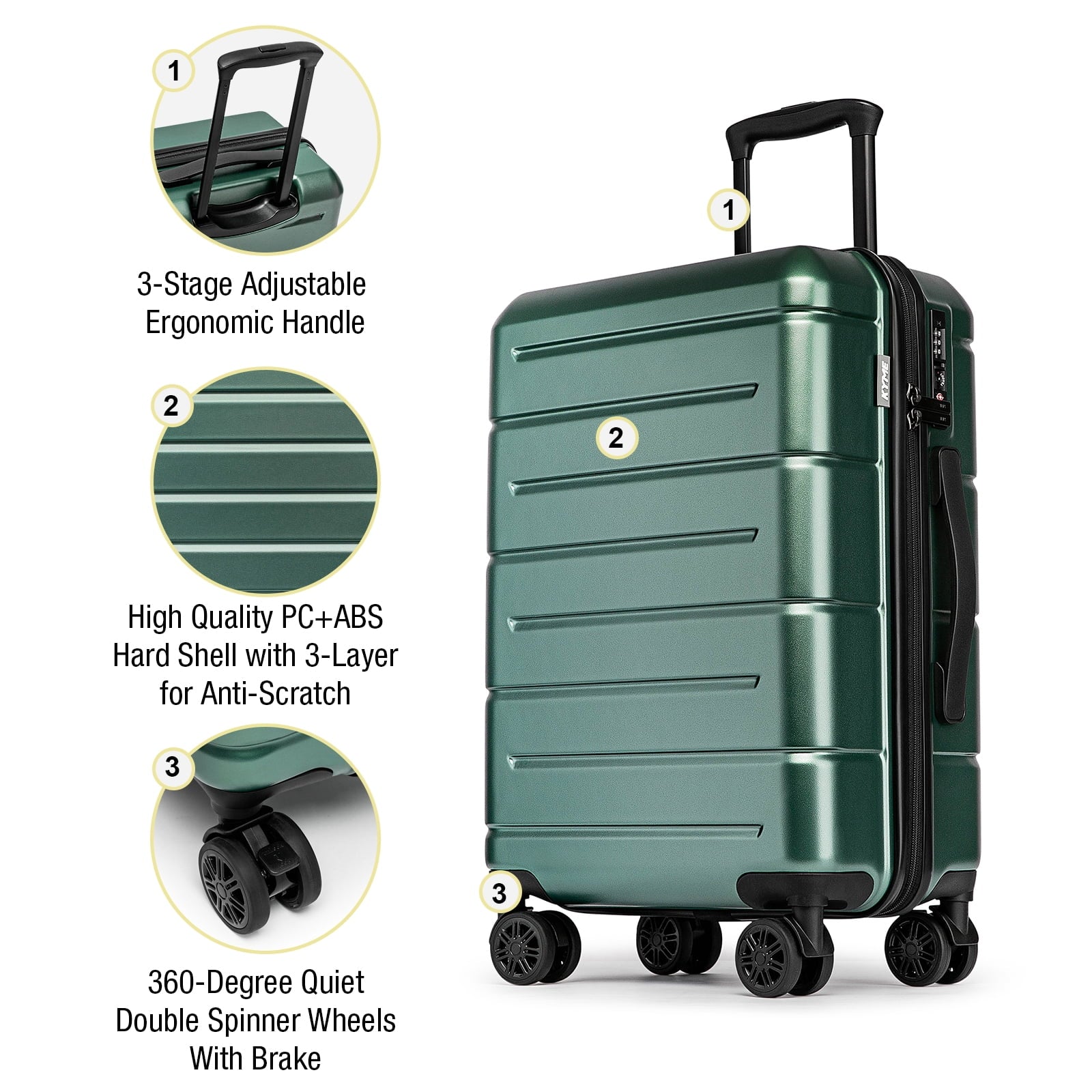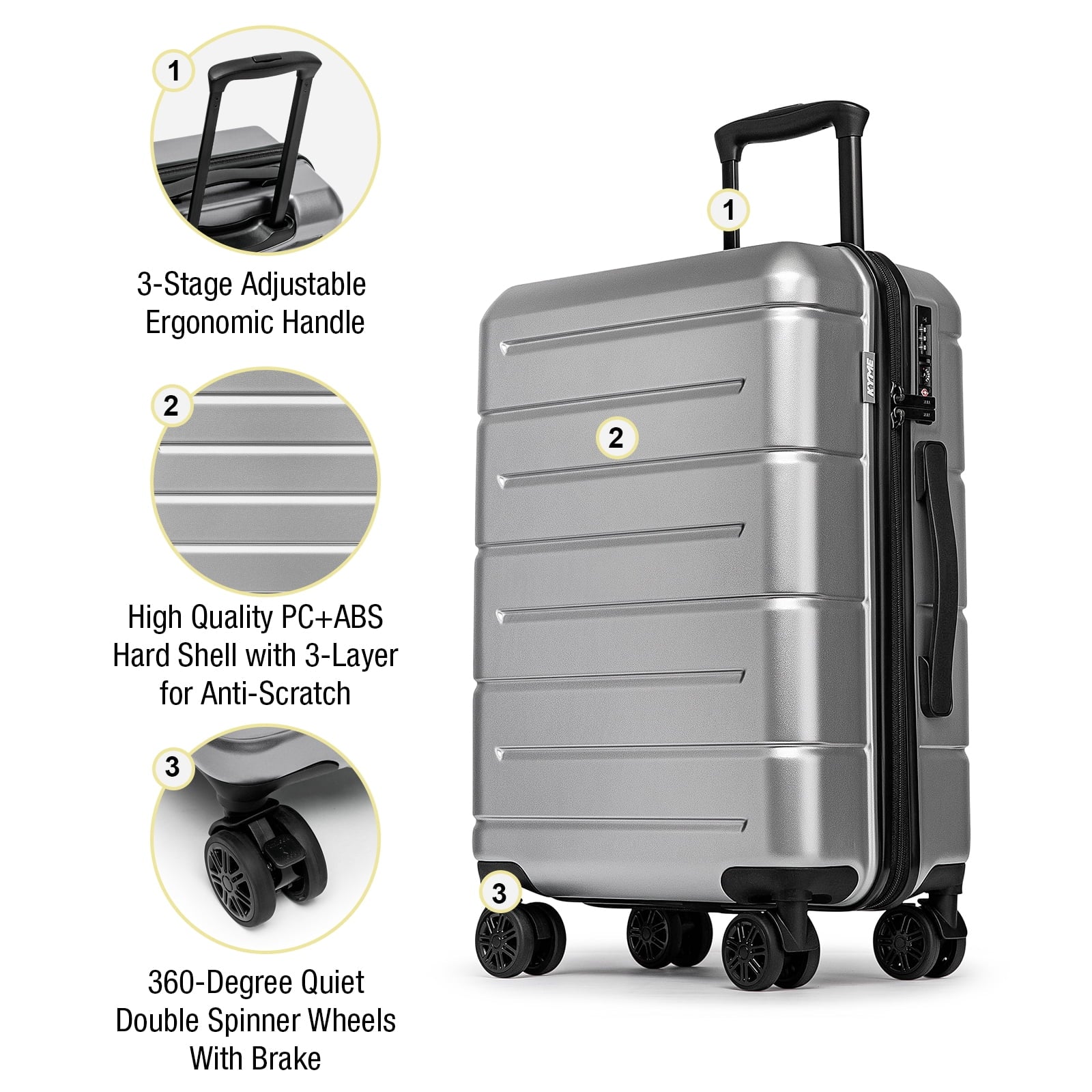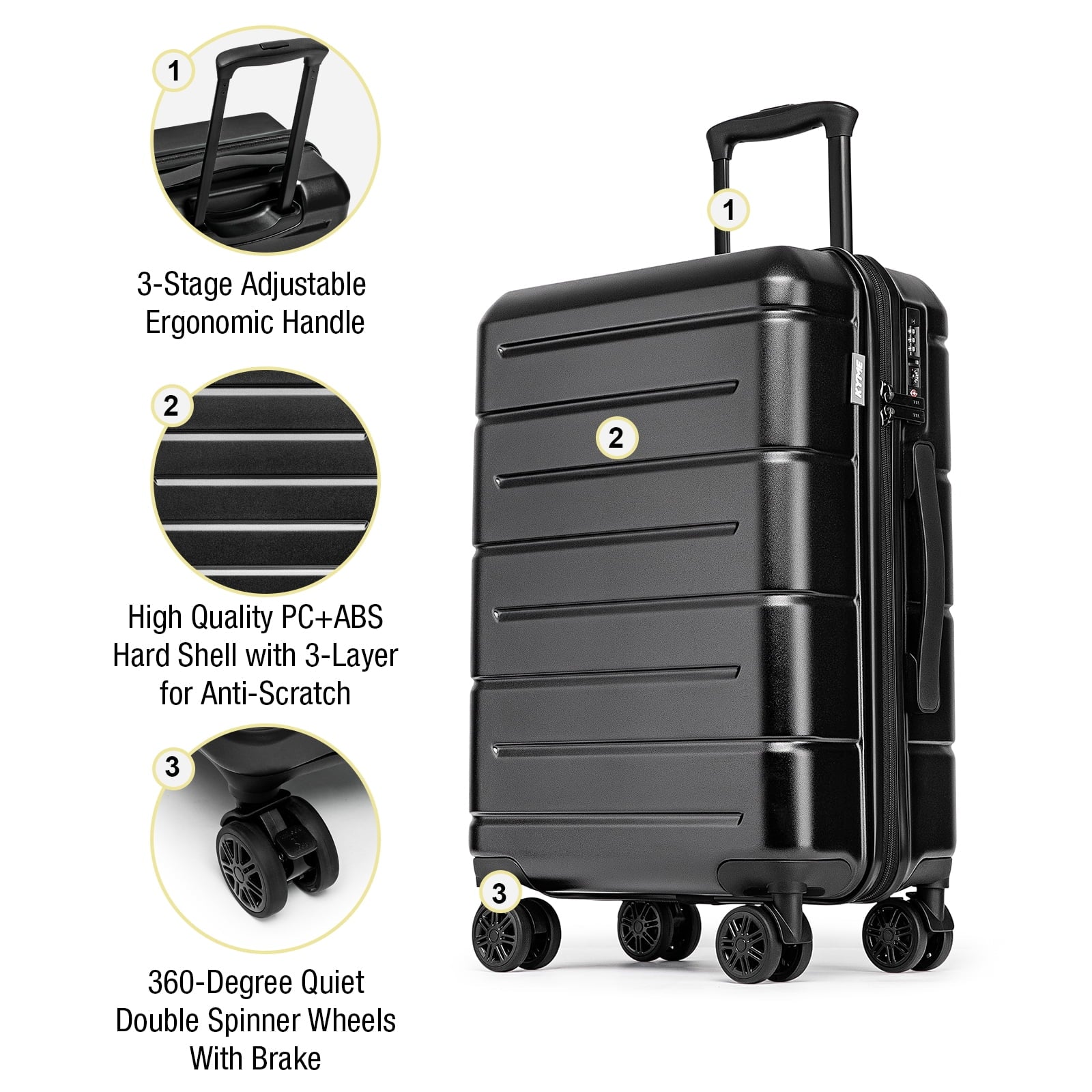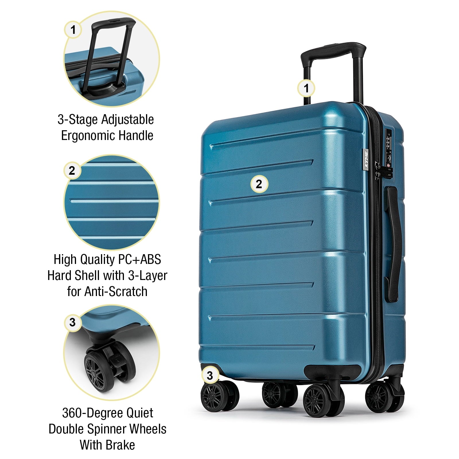 - 【360°Spinner Wheels with Brake for Effortless Travel】 Glide through airports easily with our smooth rolling, hardside carry-on luggage. With four oversized, double spinner wheels and a 6.61 lbs lightweight hard case, the suitcase moves effortlessly in all directions