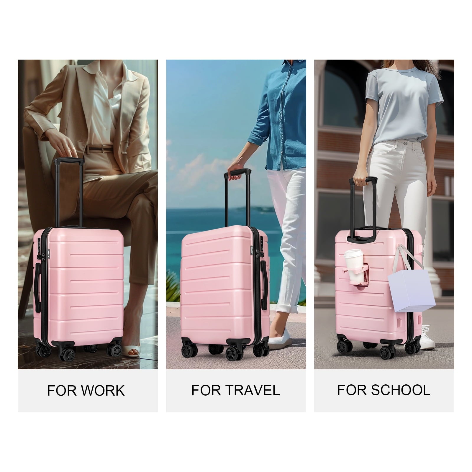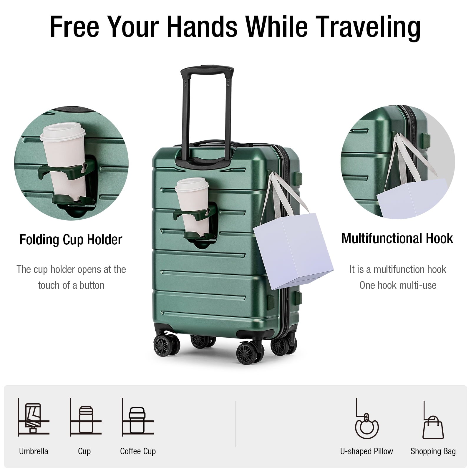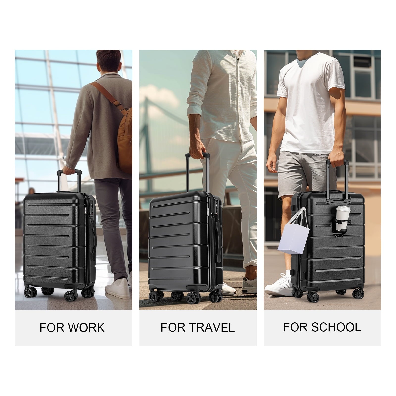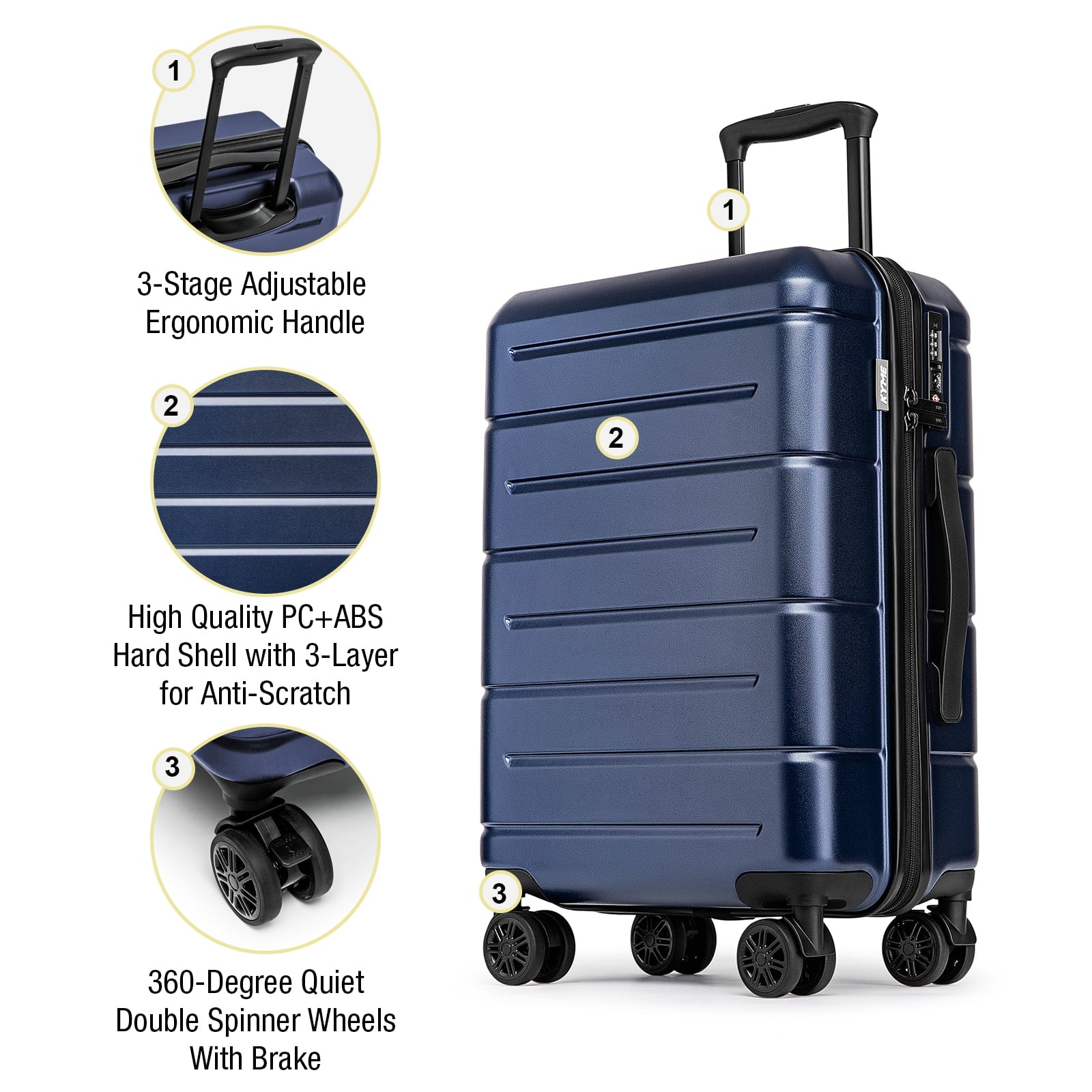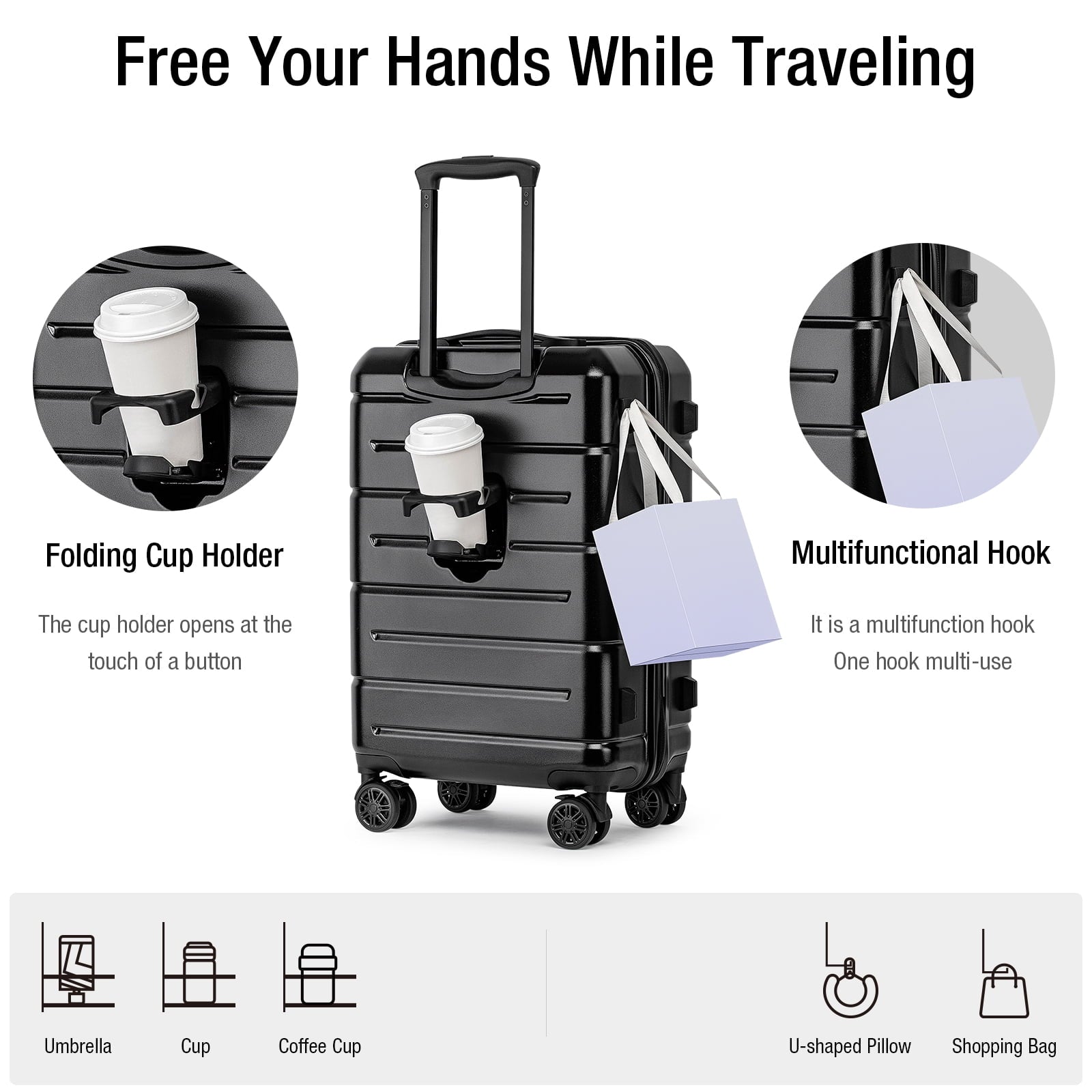 - 【360°Spinner Wheels with Brake for Effortless Travel】 Glide through airports easily with our smooth rolling, hardside carry-on luggage. With four oversized, double spinner wheels and a 6.61 lbs lightweight hard case, the suitcase moves effortlessly in all directions