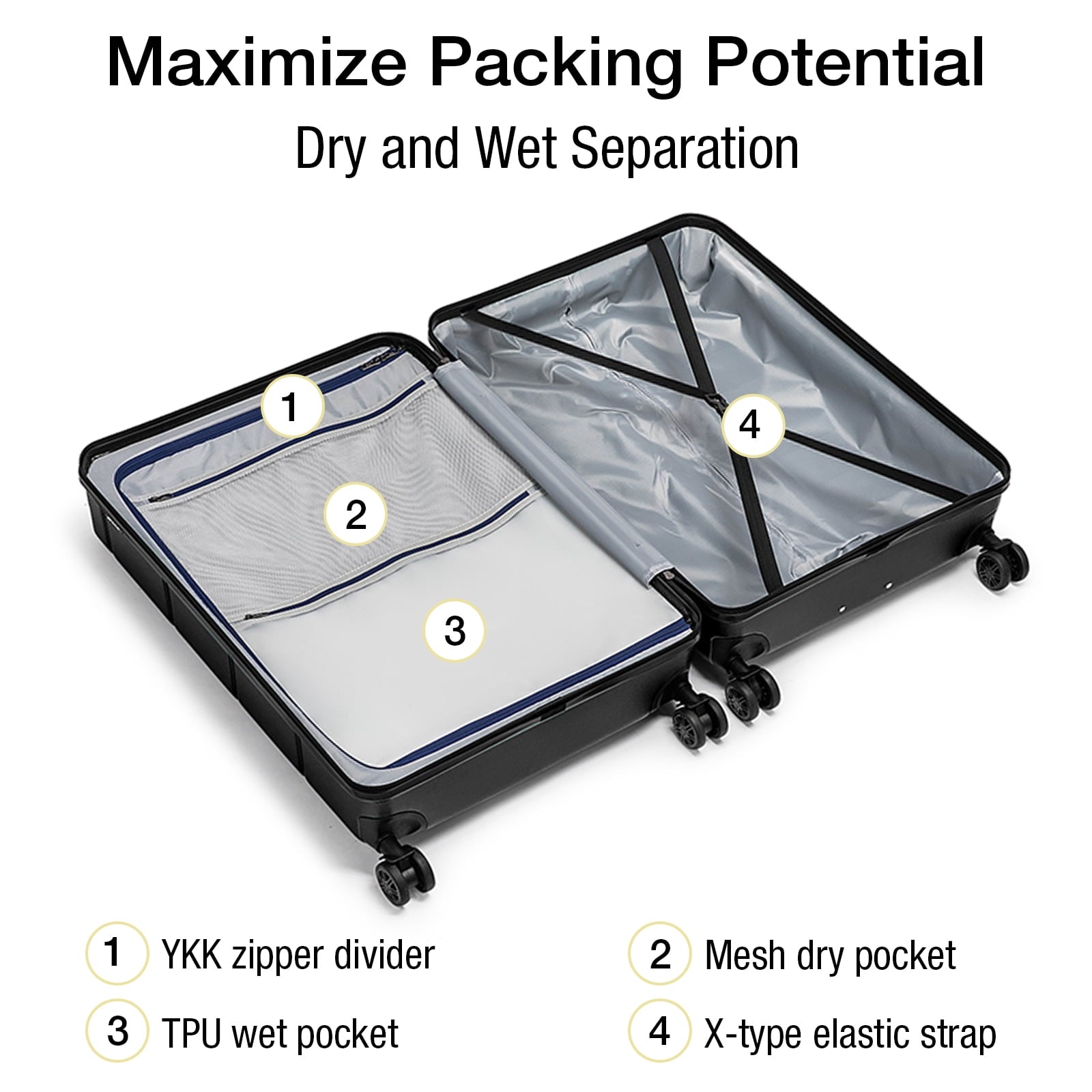 - 【Ecessed TSA Combination Lock】Set your combination easily with the built-in TSA-approved lock—no keys needed. It ensures the belongings in your carry-on luggage stay safe and sound throughout your journey