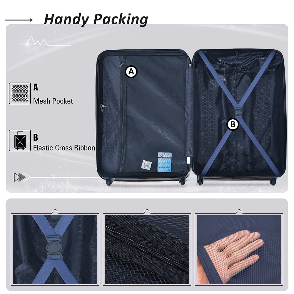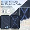Our travel suitcase set equipped with restraint straps to hold your clothes and contents in place, and a large zipper accessory pocket to store smaller items. It allows you to not only neatly keep clothes and shoes, but also keeps small accessories well organized. The extra full mesh pocket is great for storing files or cables so that you can grab them easily without digging through the entire case.