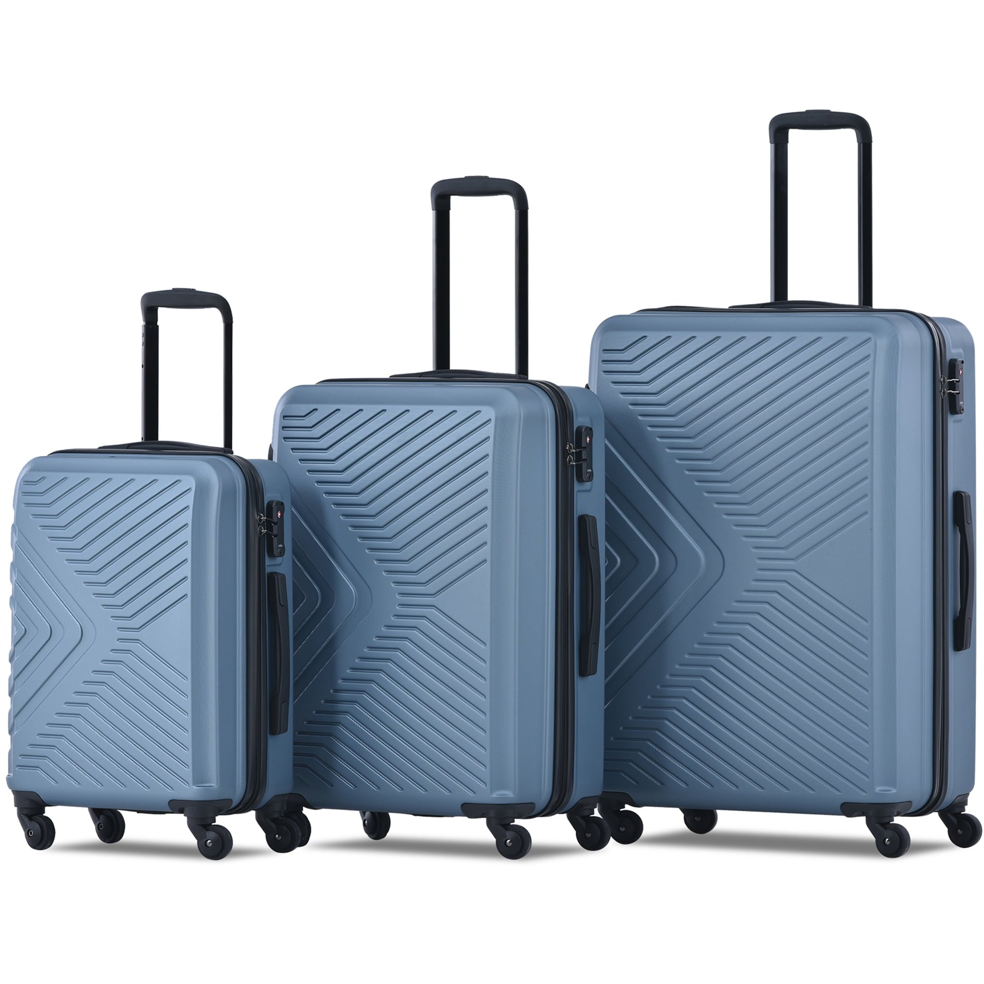 Our uhomepro suitcase set features protective ABS hardshell case and durable zippers that make you use it safely, and lightweight & stylish construction helps you adhere to airline weight restrictions and avoid unneeded airport fees. Decorated with a stylish, unique oblique line pattern and high sheen finish, your luggage will transform into a fashion accessory.