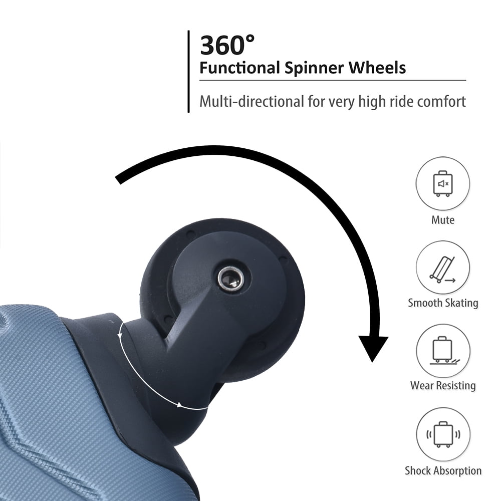 The 4-wheel spinners of our luggage set can be moved and maneuvered smoothly in any direction, and over any rough surface, and for complete mobility, free-weight rolling to relieve any pressure from your arms while on the move.