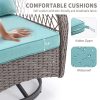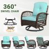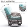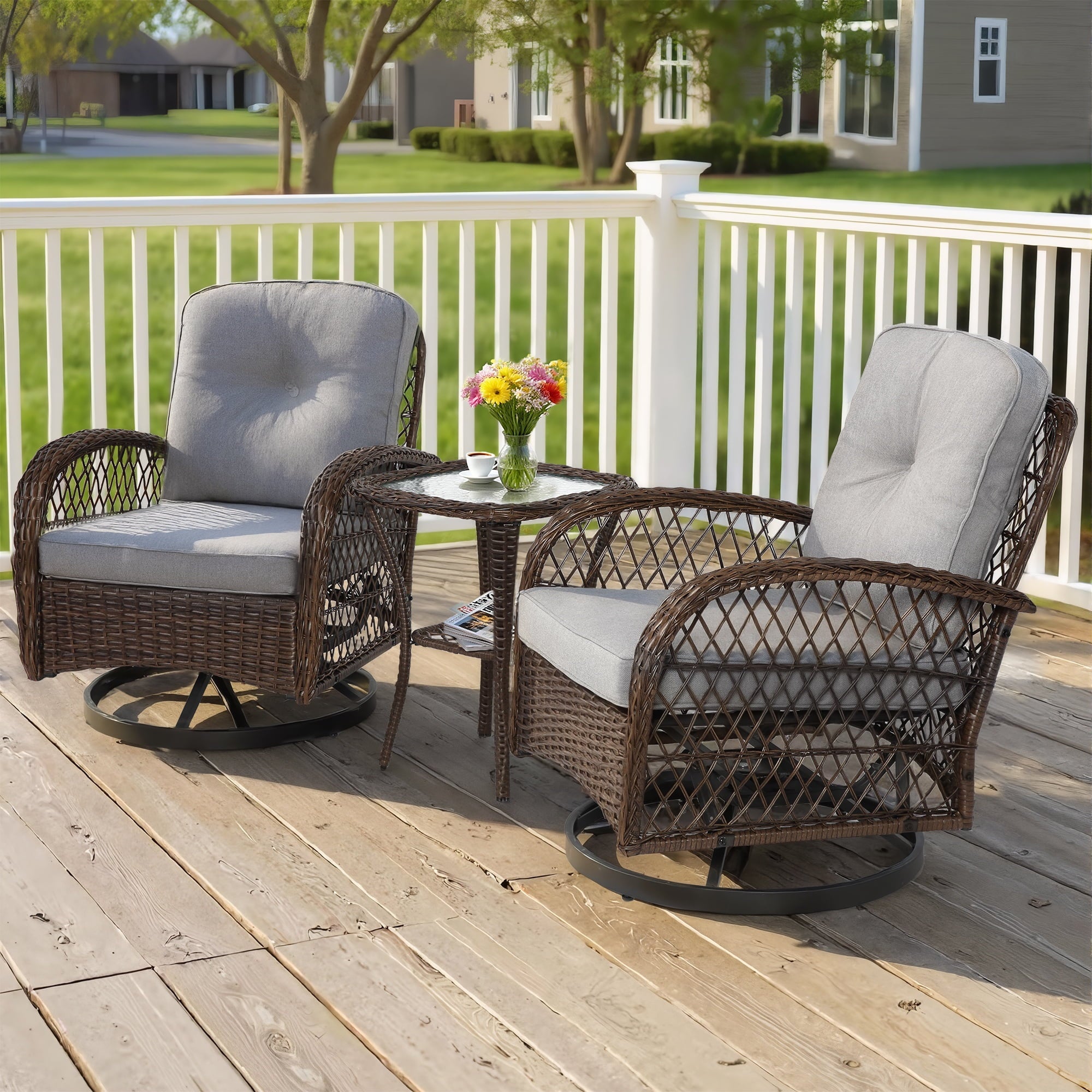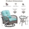 This 3-Piece Outdoor Bistro Set with 2 360° swivel rocking chairs features weather-resistant PE rattan and a high-quality steel frame for easy cleaning and durability. Hosting friends and family for drinks would be the best choice. The swivel chairs with armrests match the glass table, giving you the most harmonious visual experience. It is a perfect addition to a lawn, pool, backyard garden, front porch or balcony. If you are looking for furniture that you can use to entertain guests with, this conversation set is a great choice for you.