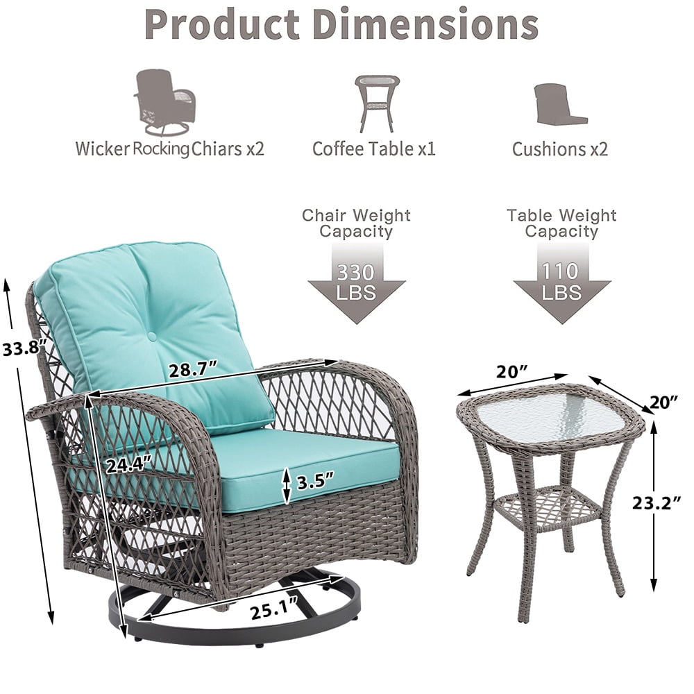 3 Piece Swivel Rocking Chairs and Table Set – Perfect your outdoor living, to bring you the best enjoyment of life!
