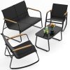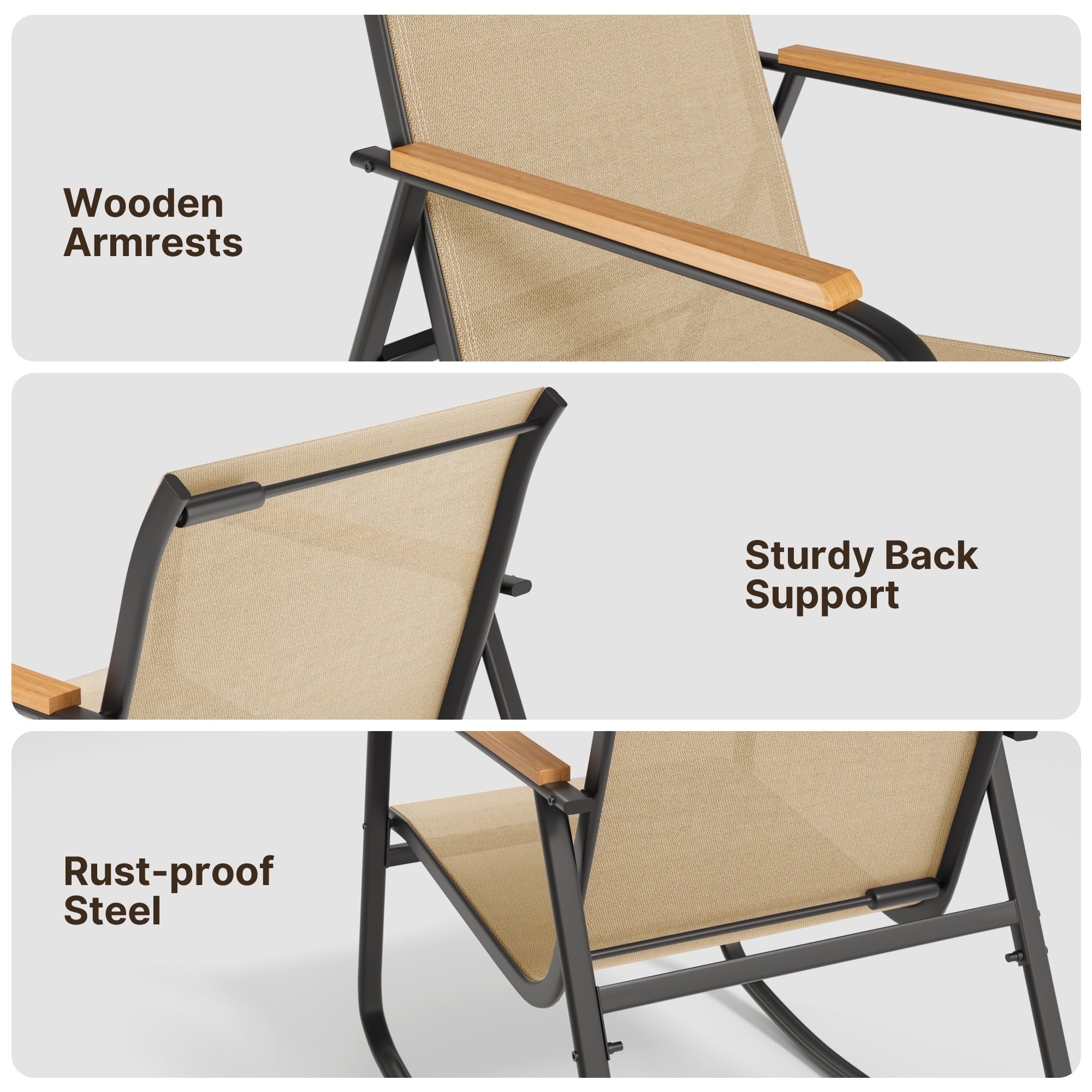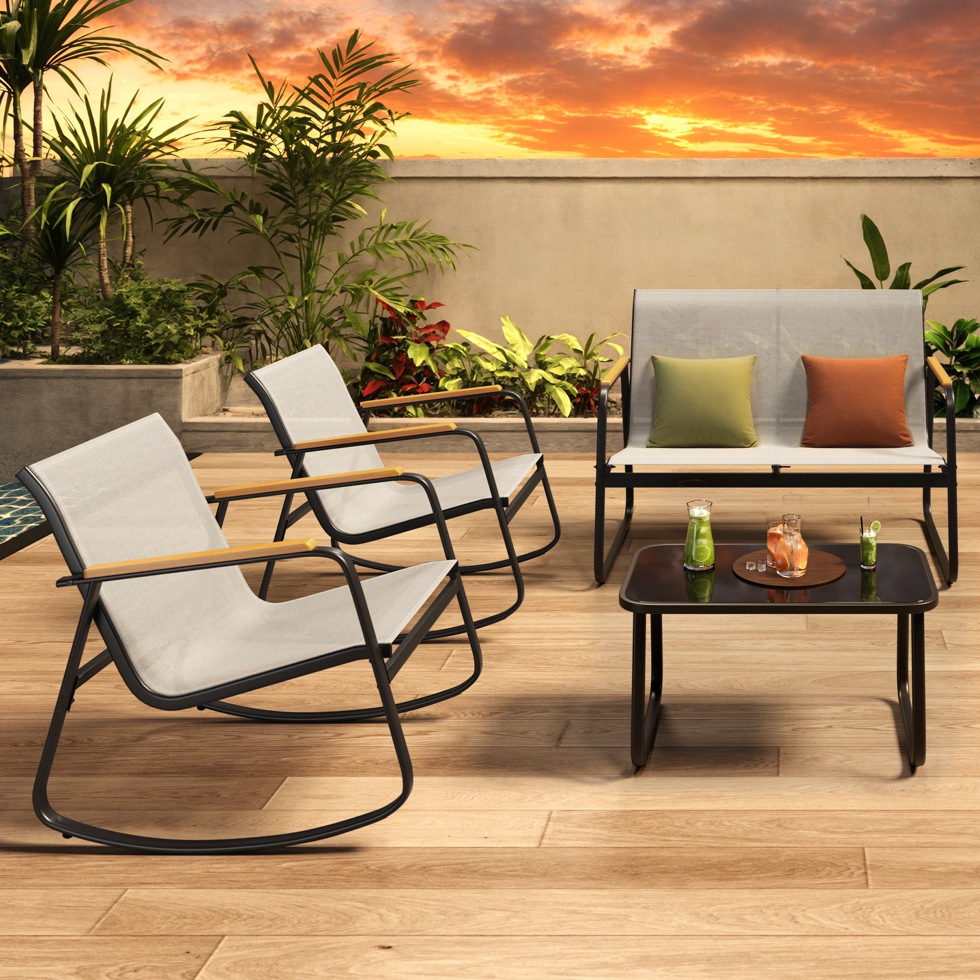 Asofer 4-Piece Patio Furniture Set, Textilene Outdoor Bistro Set with 2 Rocking Chair for Lawn, Garden