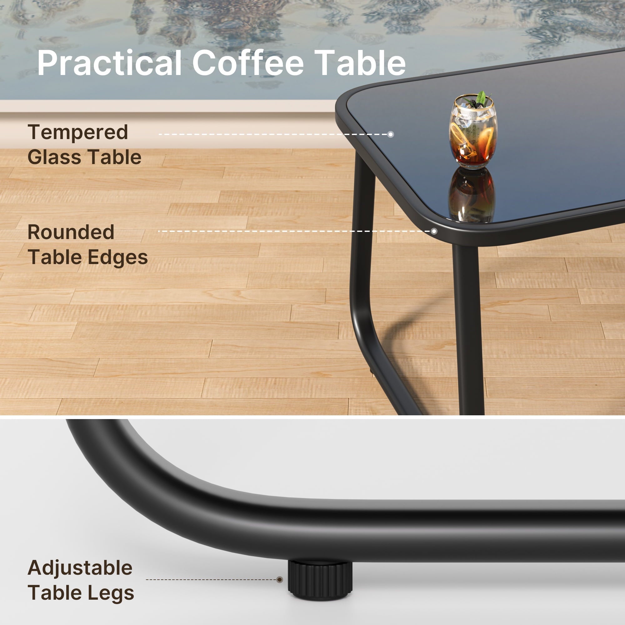 🍻【Safe and Durable Design】 black patio furniture set is made of high-quality metal steel and highly breathable textile fabrics for durability. The bottom of the table and chairs are designed with an adjustable spiral design to enhance their stability. The tempered glass tabletop is durable, scratch-resistant, and easy to clean. The table corners are rounded to ensure the safety of you and your family and extend its service life. You can easily enjoy outdoor gatherings or leisure time, making your patio vibrant and a highlight of your home.