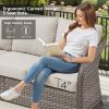 3-Seat Patio Wicker Sofa Outdoor Rattan Couch Furniture Steel Frame with Beige cushion&Waterproof Cover, Gray