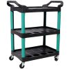 • This mobile utility cart is built to deliver exceptional durability and heavy-duty performance, with its standout feature being the high-grade plastic shelves—a material chosen specifically for its impressive strength-to-weight ratio and resilience. Boasting a remarkable load capacity of up to 300 lbs across the cart’s shelving system.
