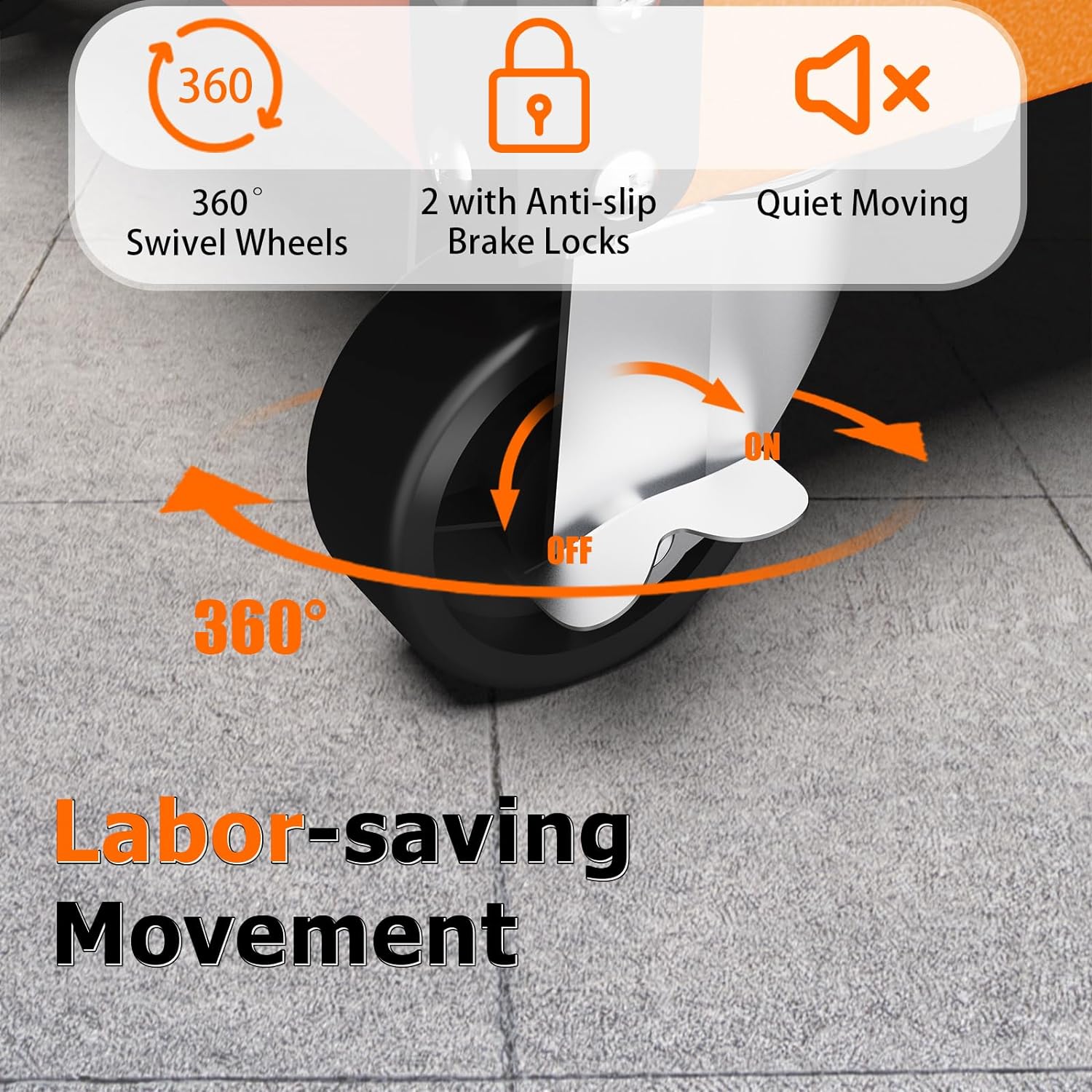 【Easy To Move】2 swivel casters with brakes & 2 fixed casters ensure easy movement and steady placement when you are working in the workshop or moving the cart to another room. As well, the cart is almost silent