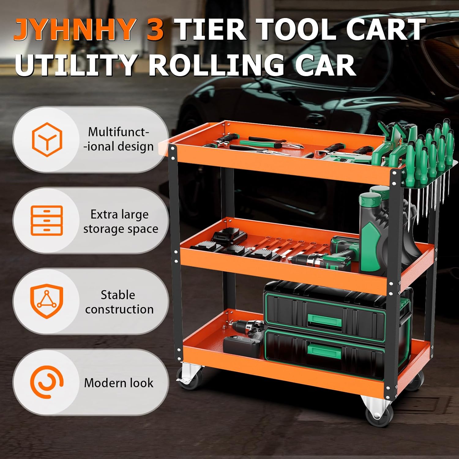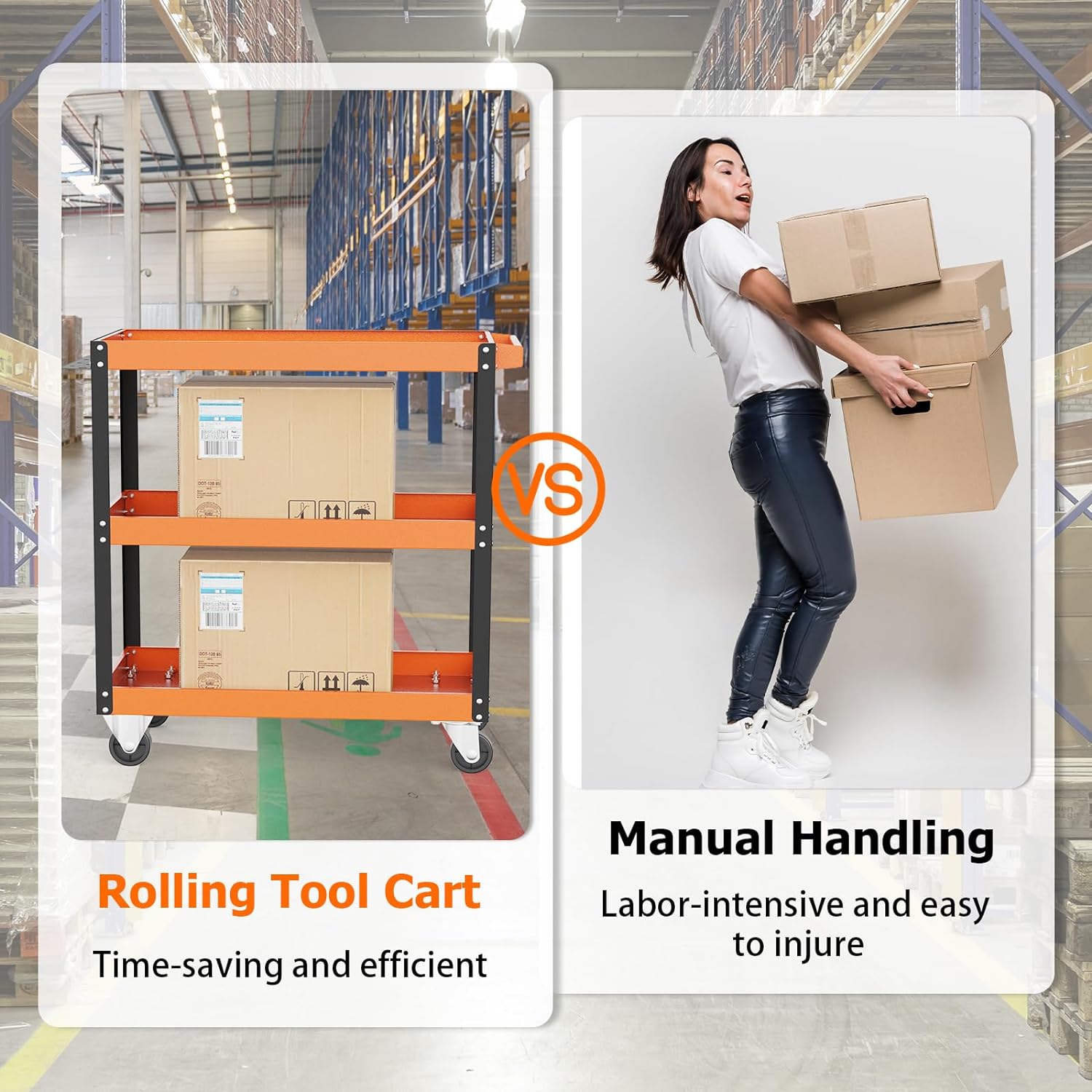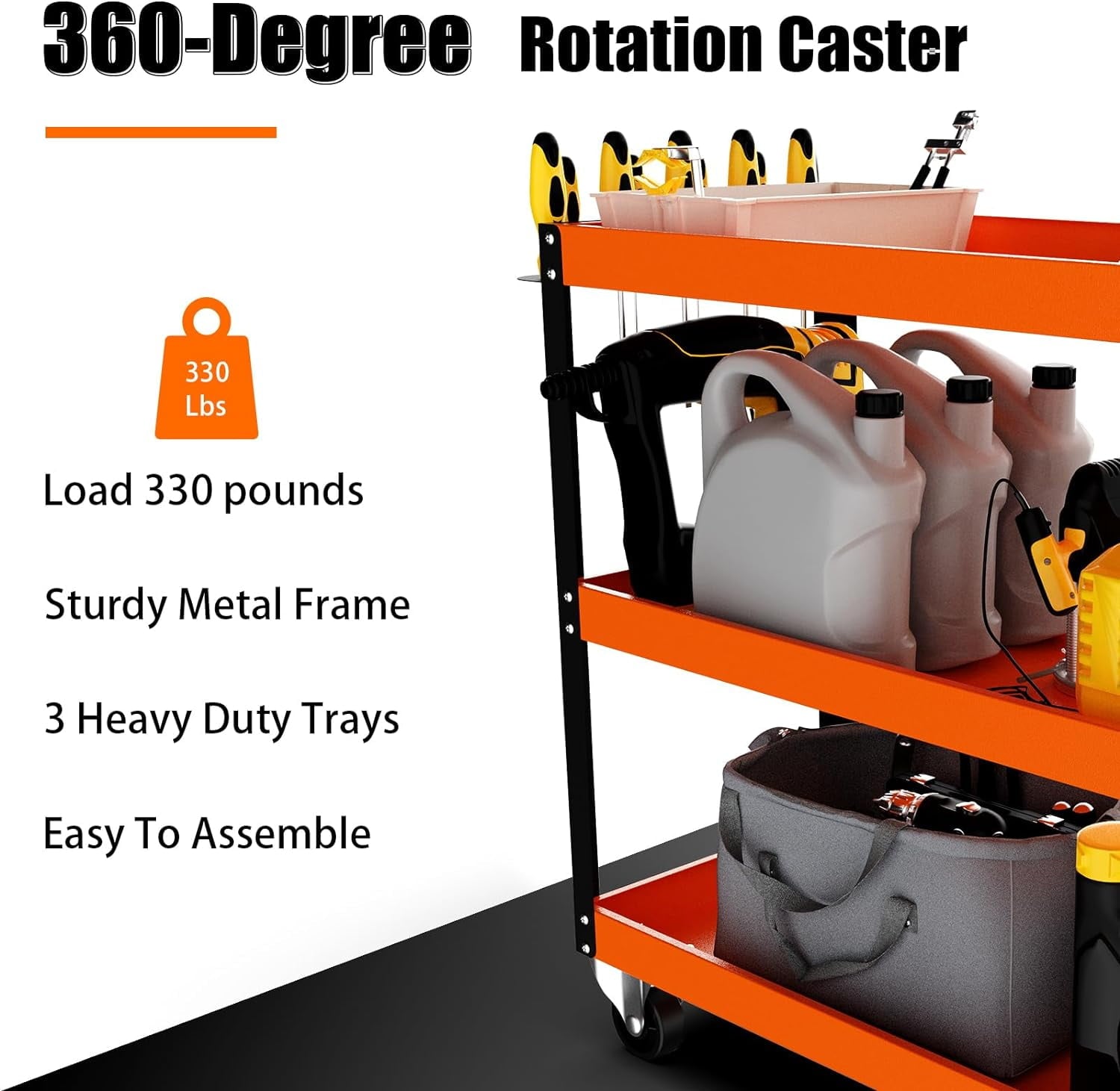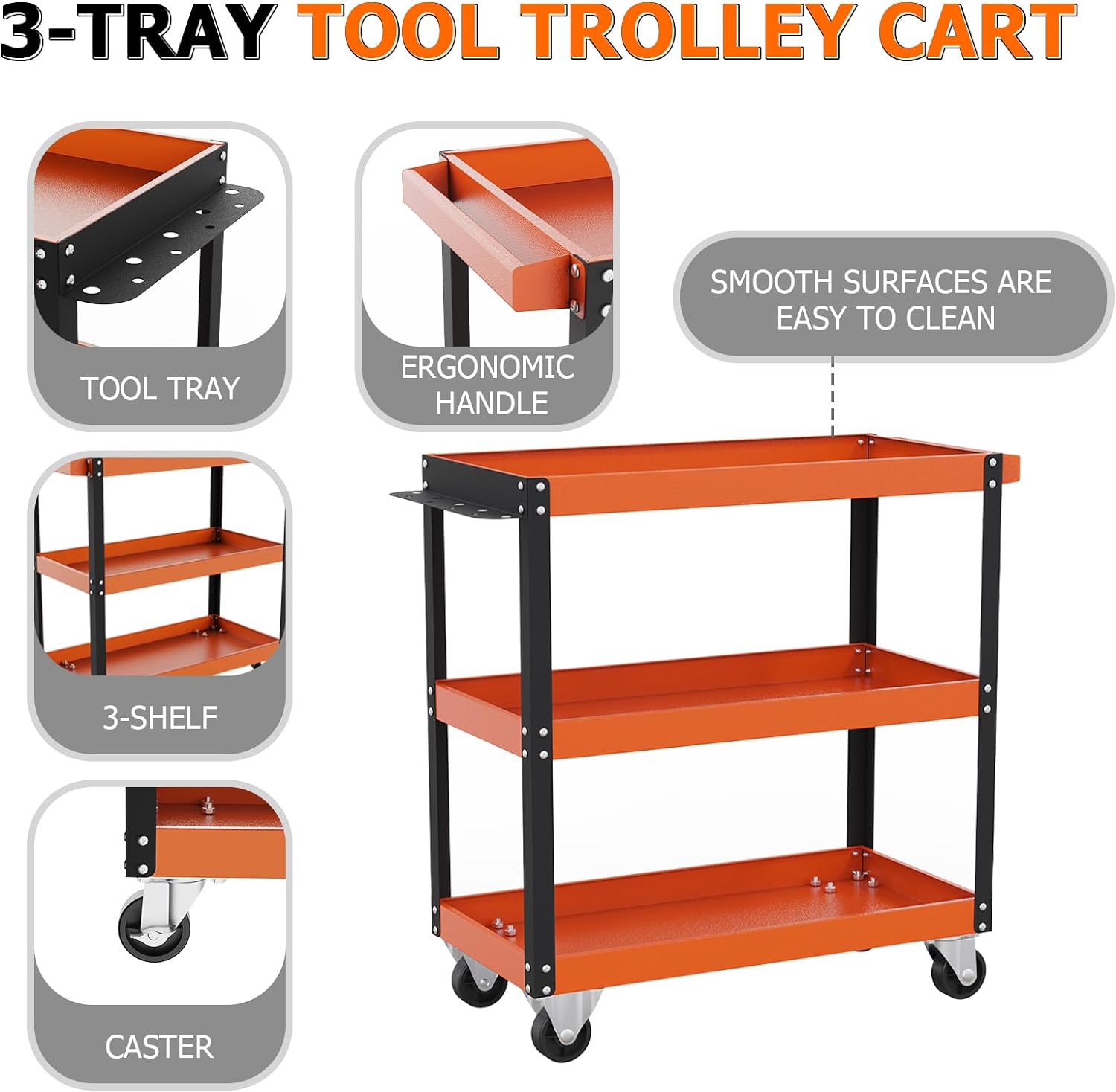 【Sturdy & Durable Construction】This orange tool cart is made of heavy-duty steel, and high-quality paint coating to prevent peeling off. Sturdy and durable, steady construction ensures its long-term durability