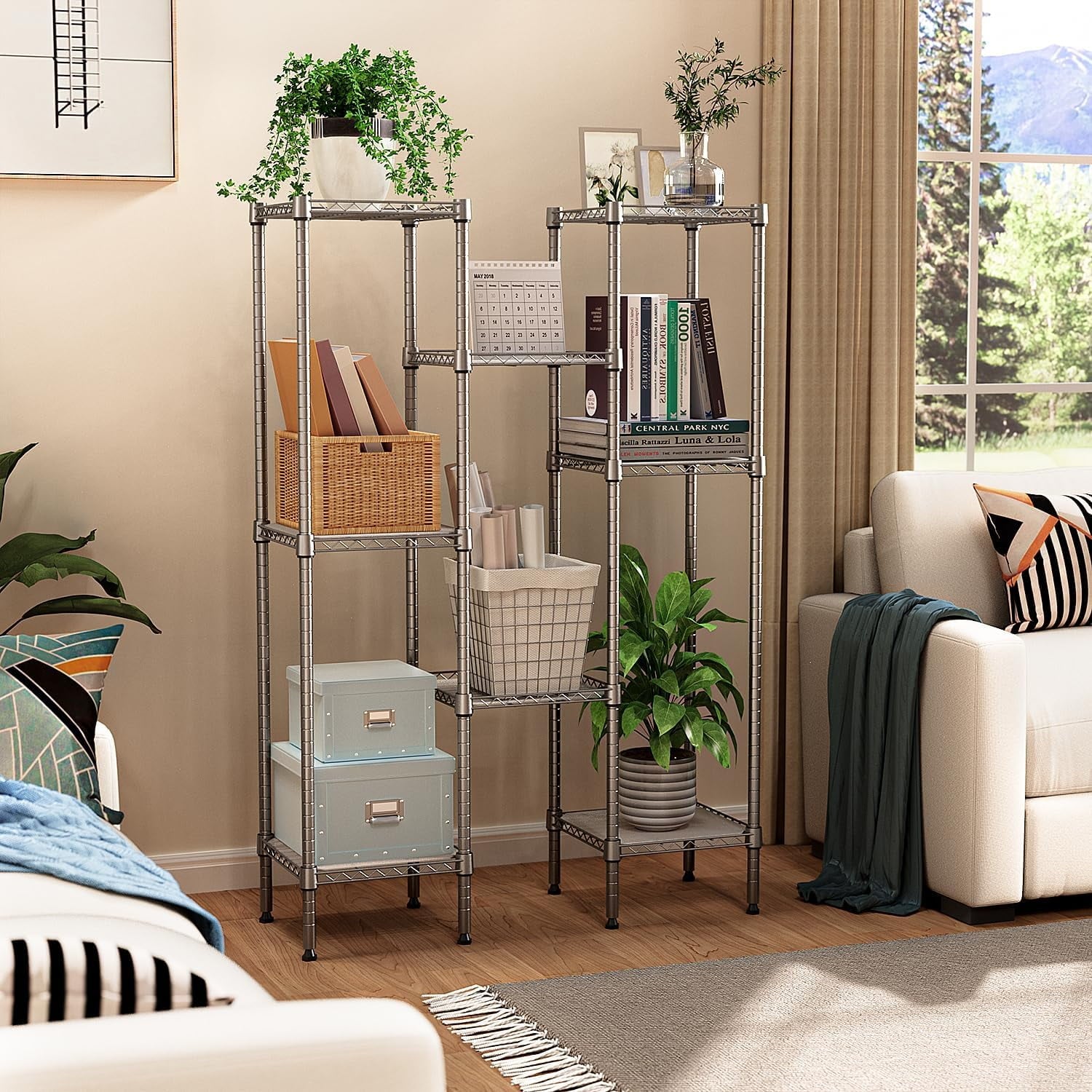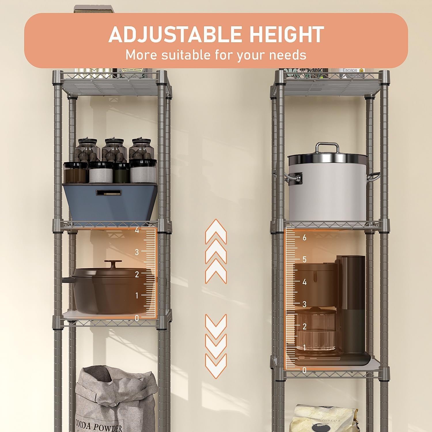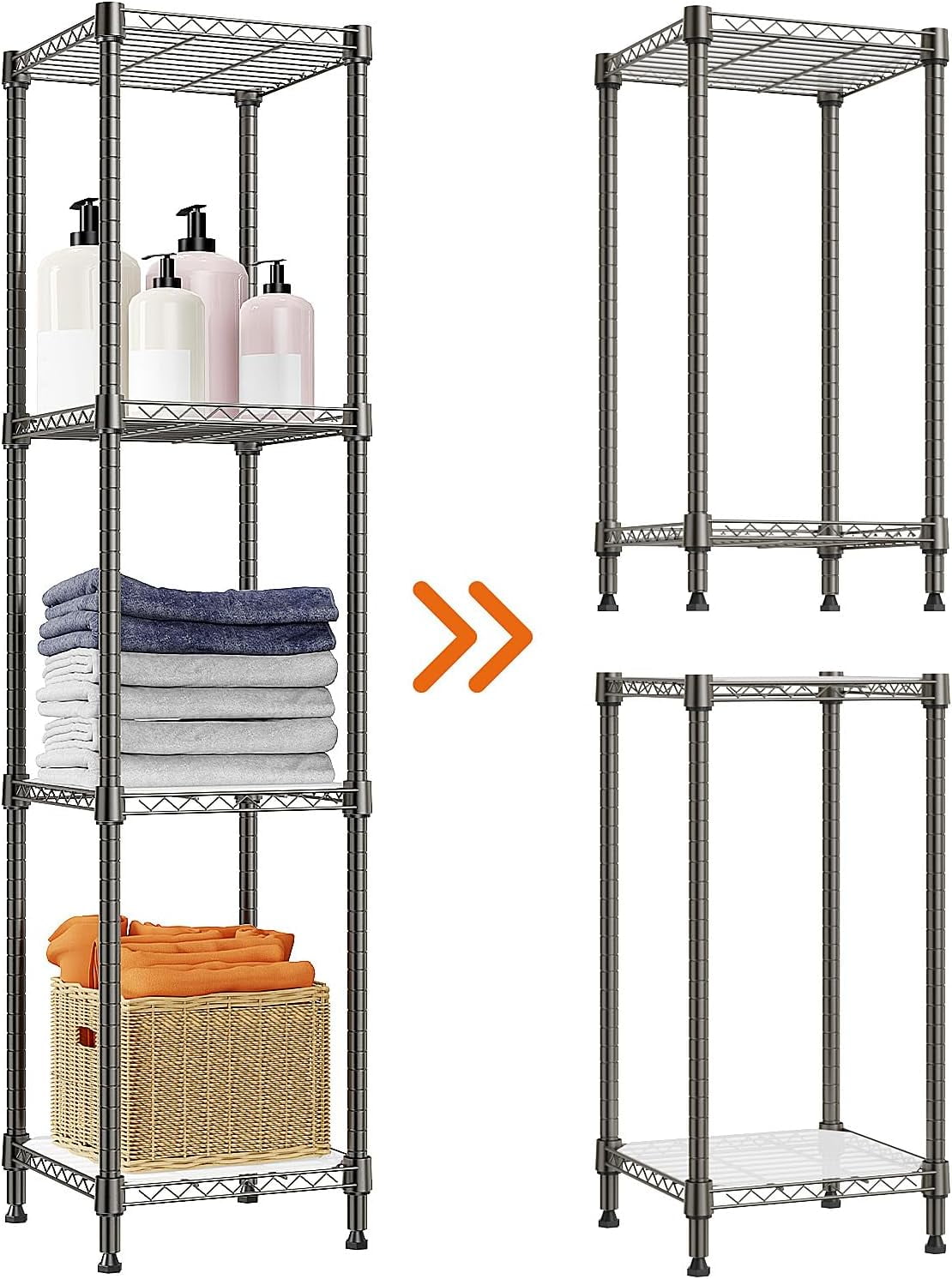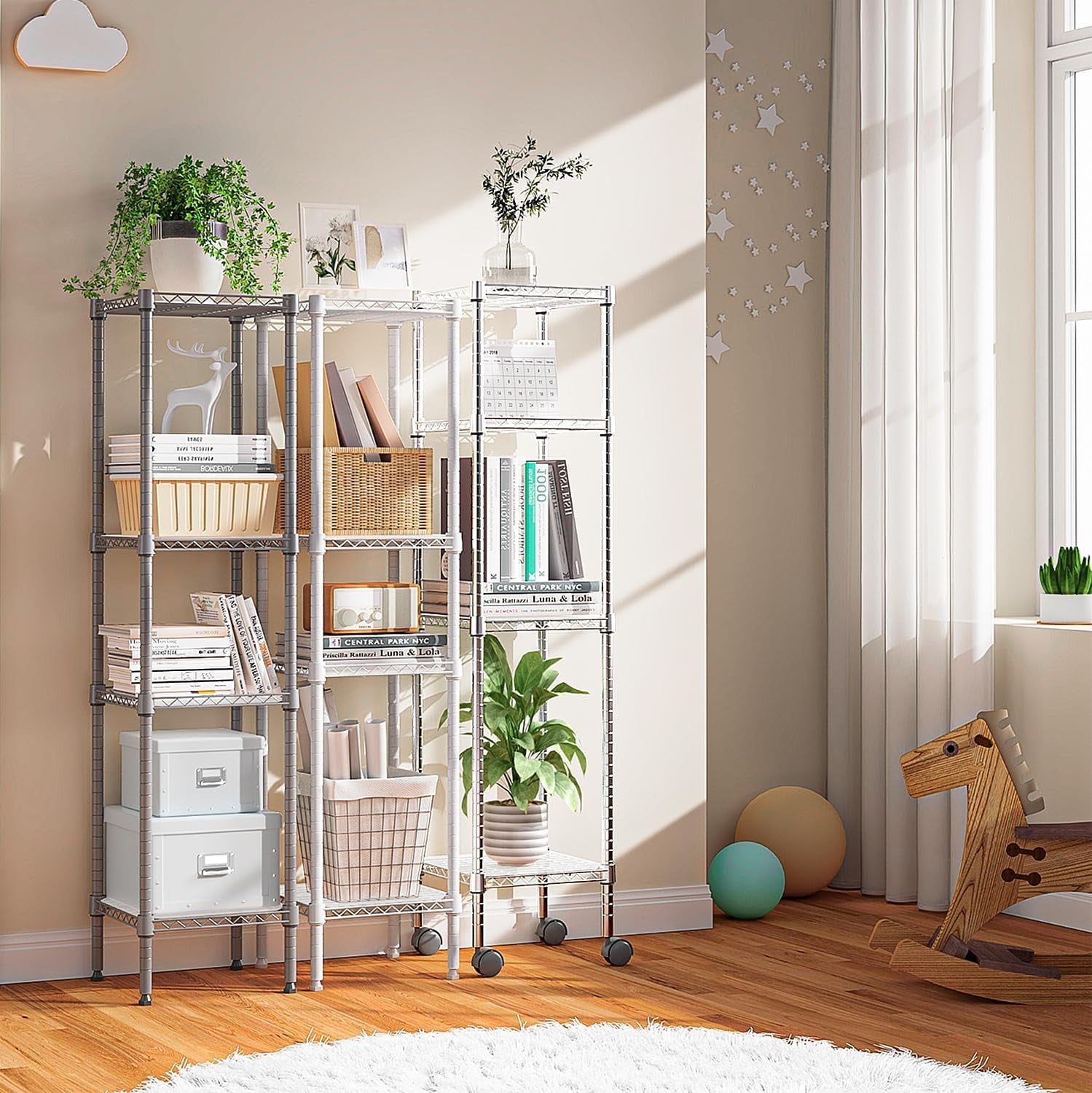 IMPACT & SPACE-SAVING: This storage shelf is exquisitely designed to maximize efficiency in small spaces. Its multiple wire shelves provide ample vertical storage capacity, making it an ideal choice for narrow areas or corners.