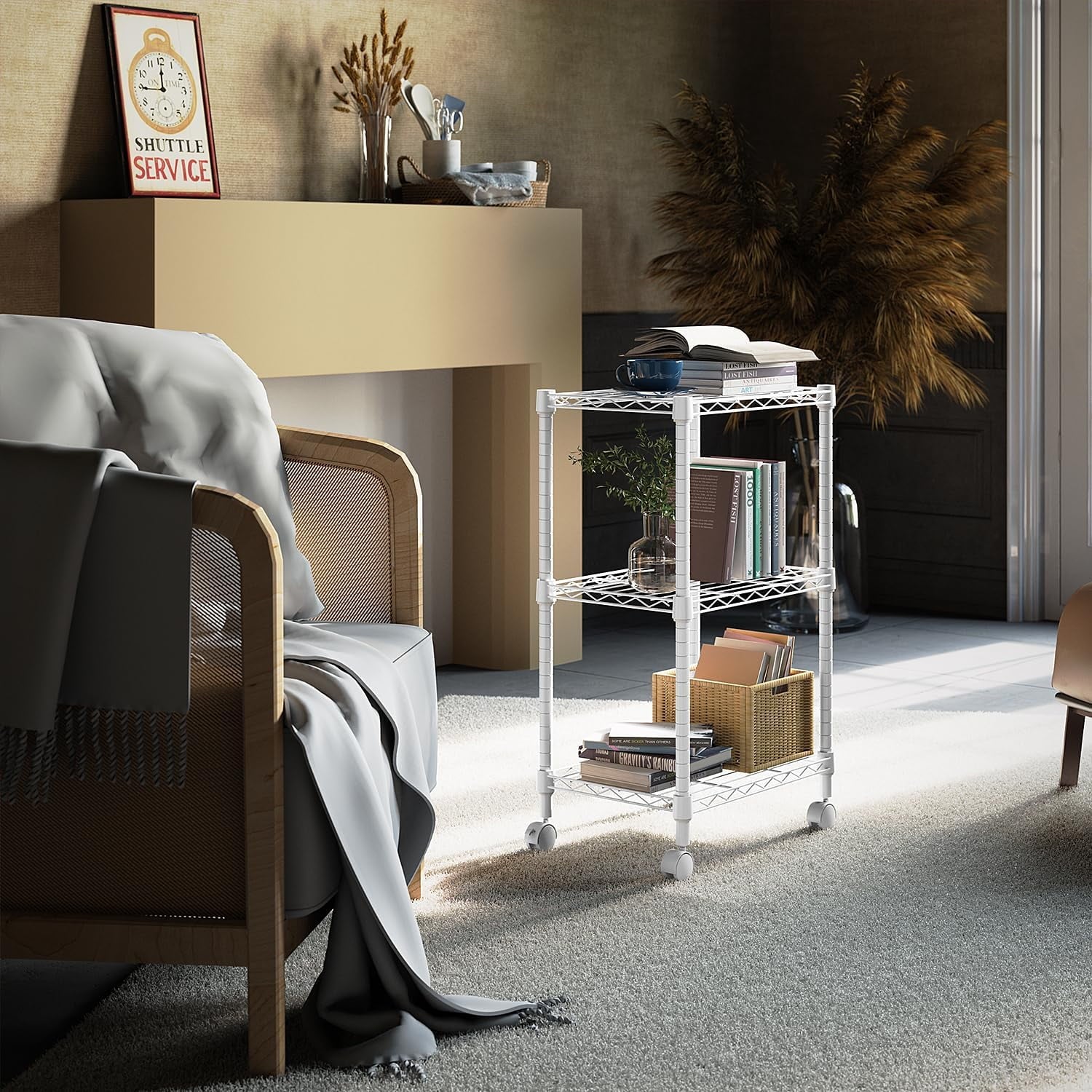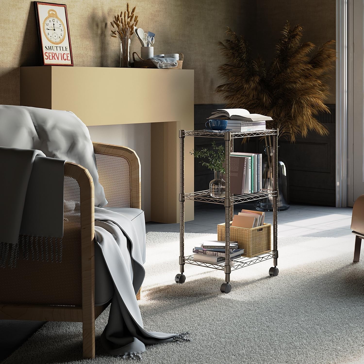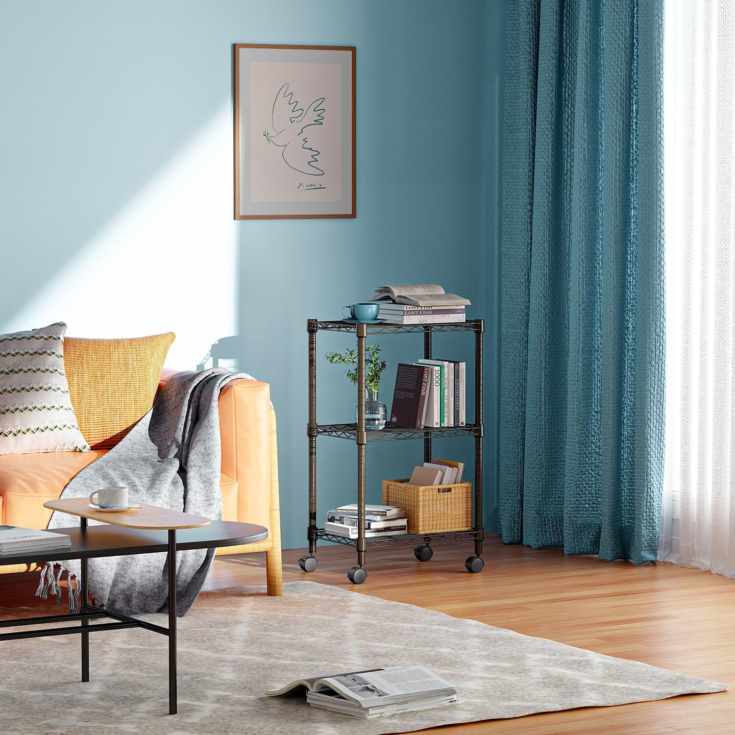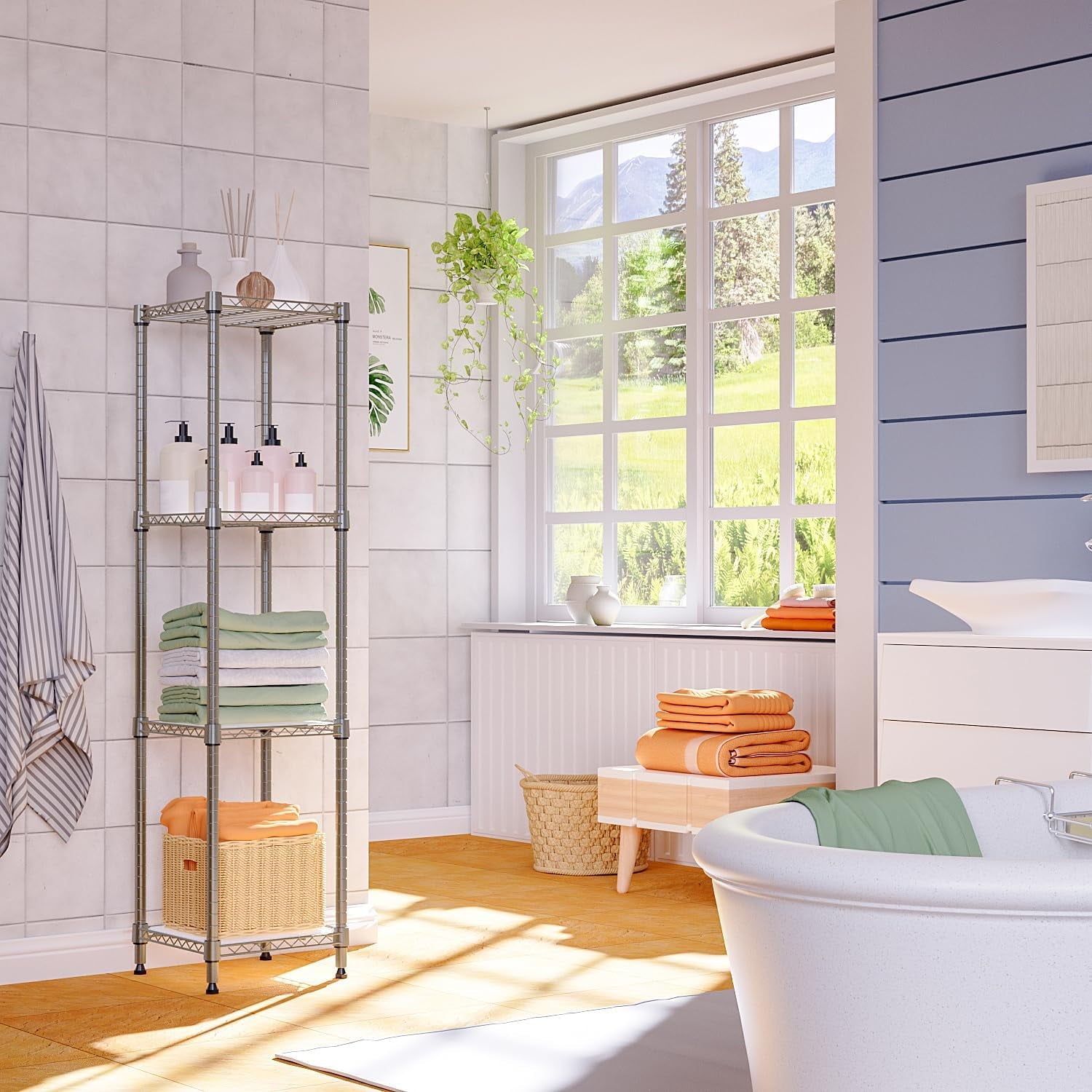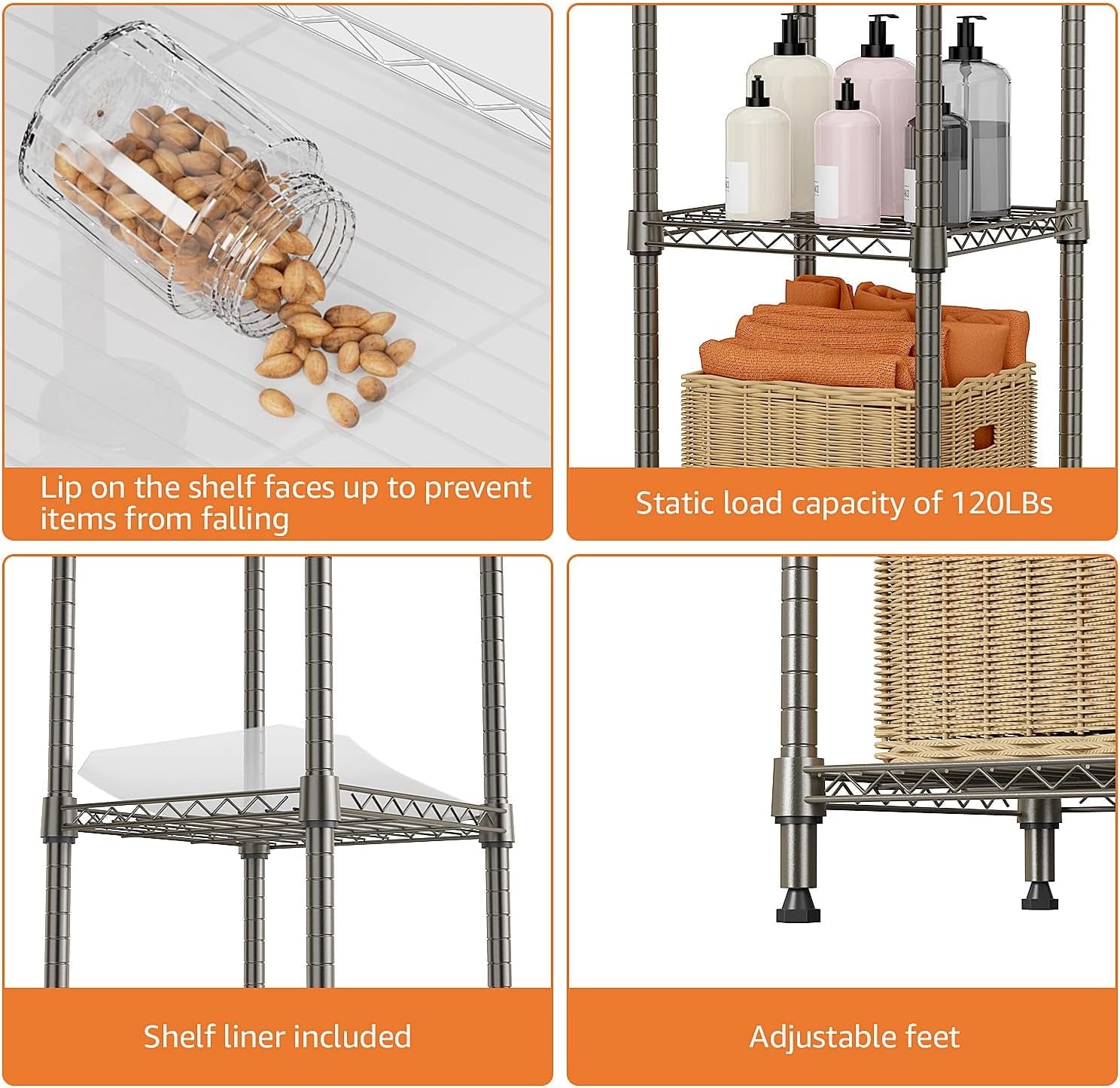 IMPACT & SPACE-SAVING: This storage shelf is exquisitely designed to maximize efficiency in small spaces. Its multiple wire shelves provide ample vertical storage capacity, making it an ideal choice for narrow areas or corners.