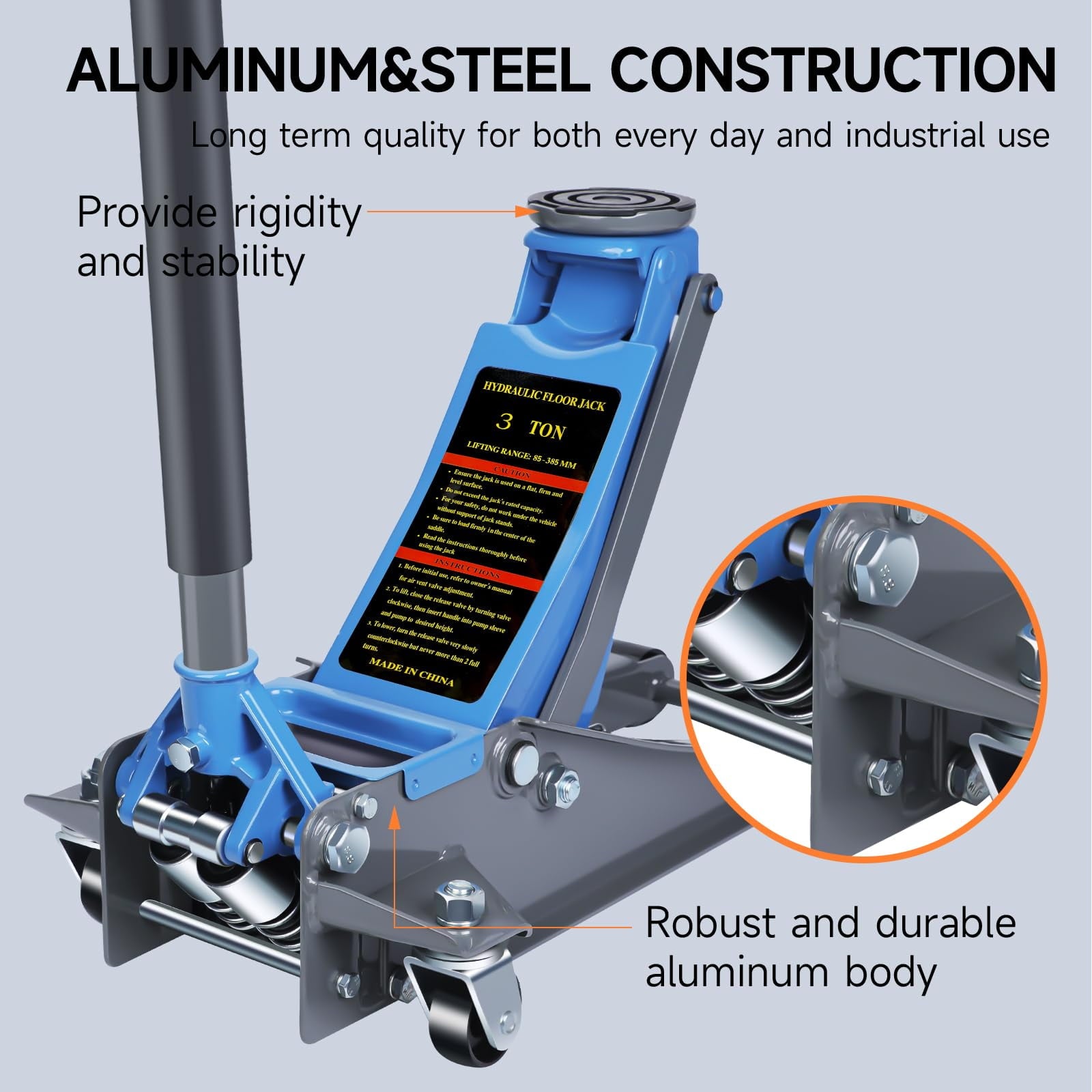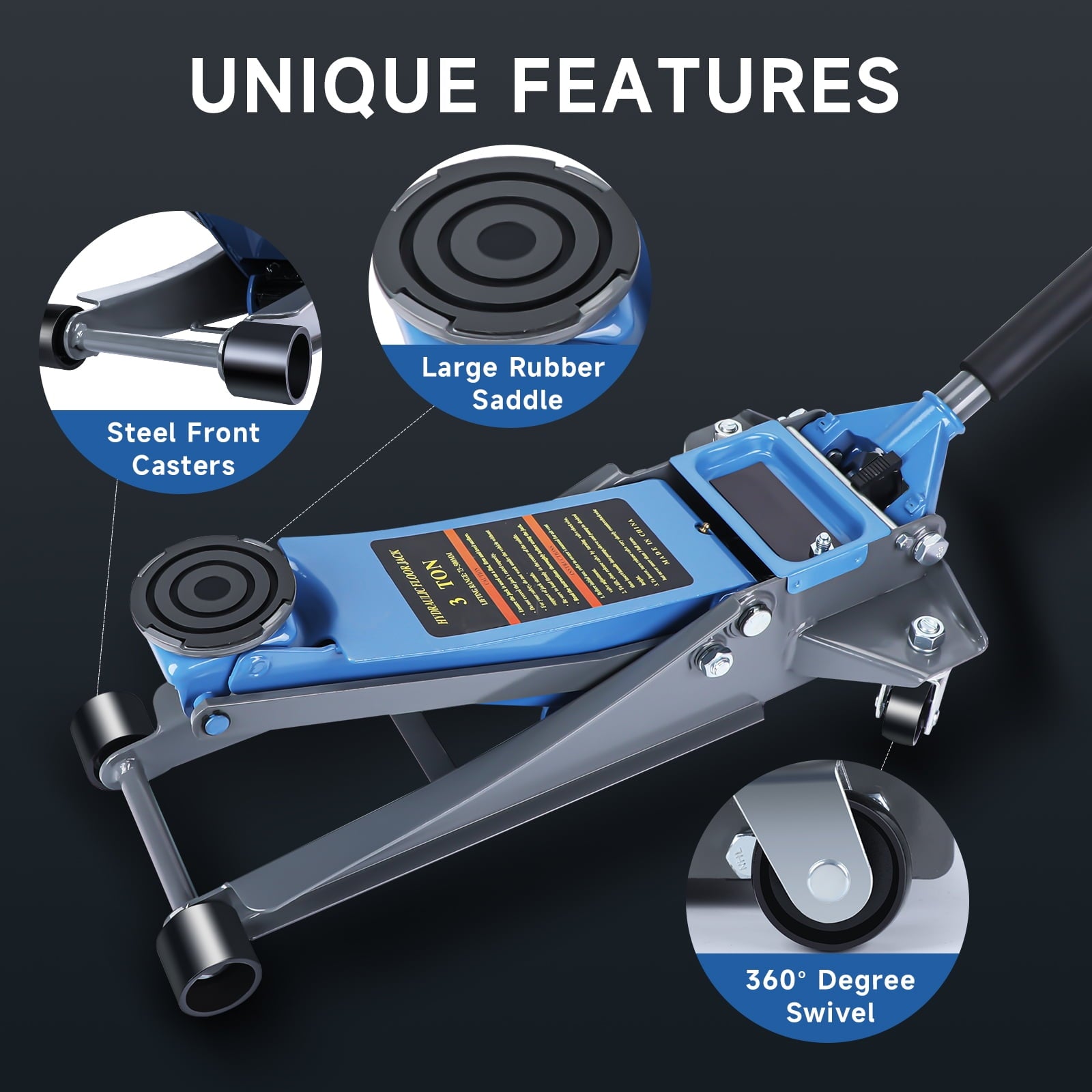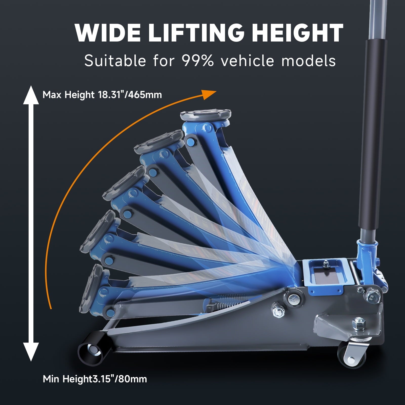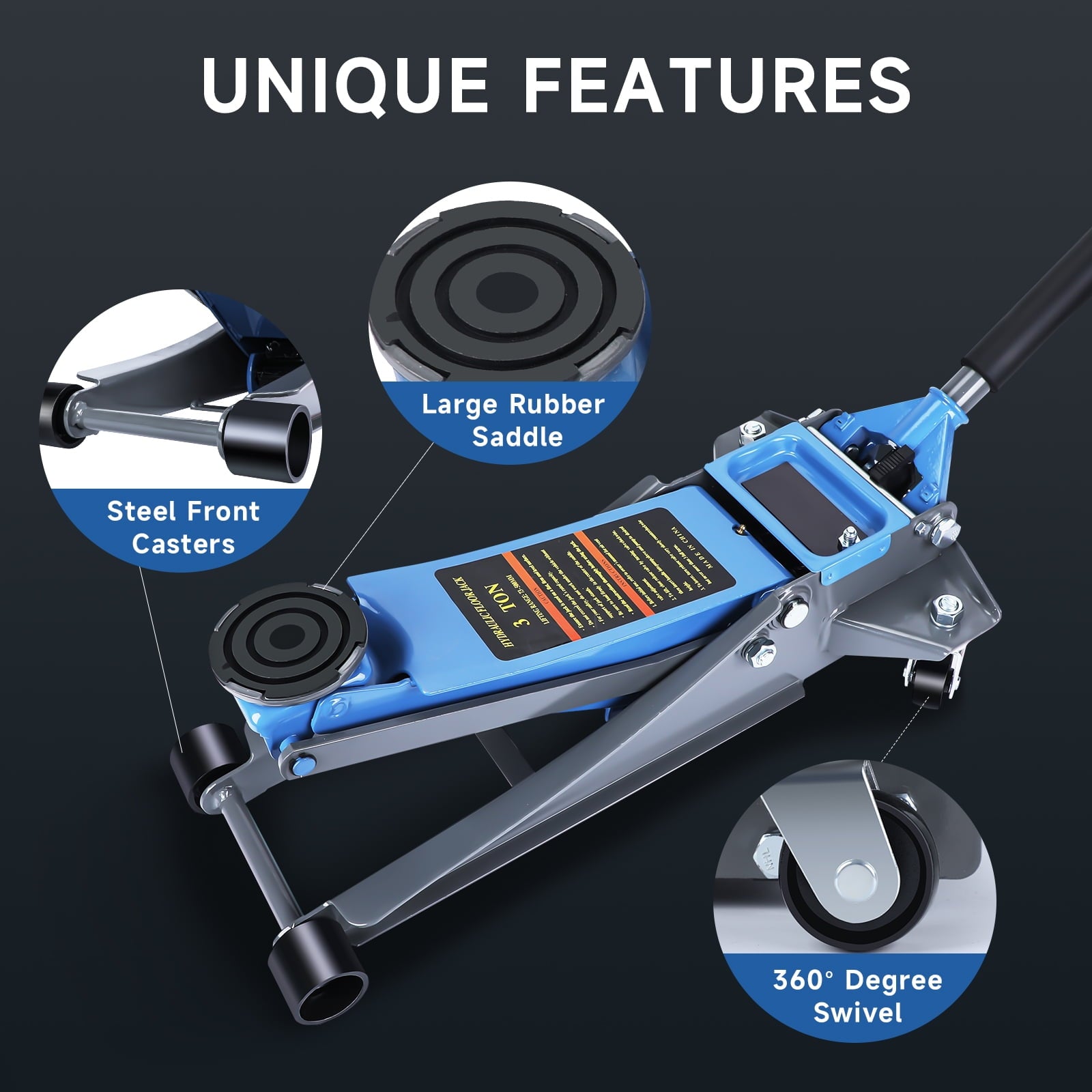 - 【Heavy-Duty 3-Ton Capacity & Wide Saddle】Effortlessly lift your vehicle with a massive 3-ton (6,600 lbs) capacity. The extra-wide 4.65-inch saddle provides superior stability and distributes pressure evenly, protecting your vehicle’s lift points during tire changes, brake jobs, and undercarriage repairs. This jack is built for confident, heavy-duty use.