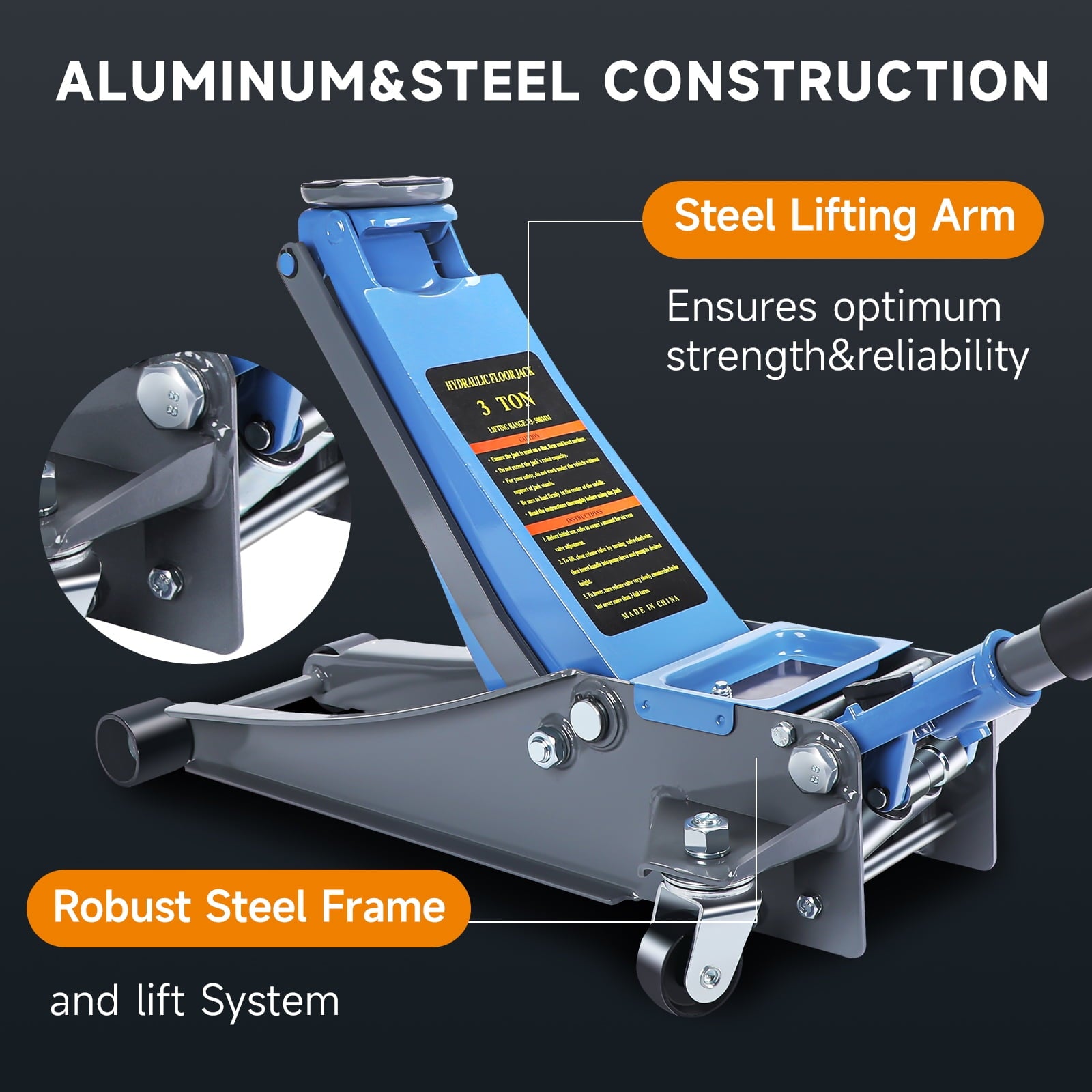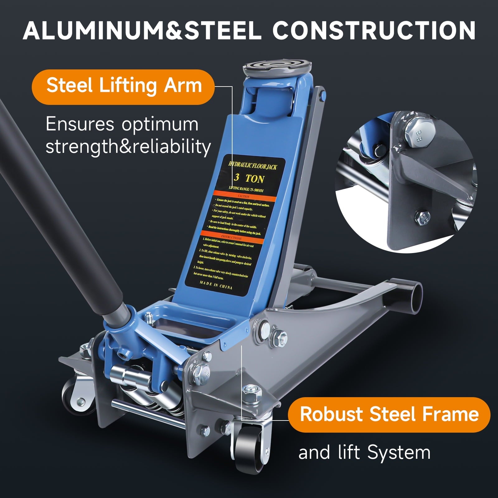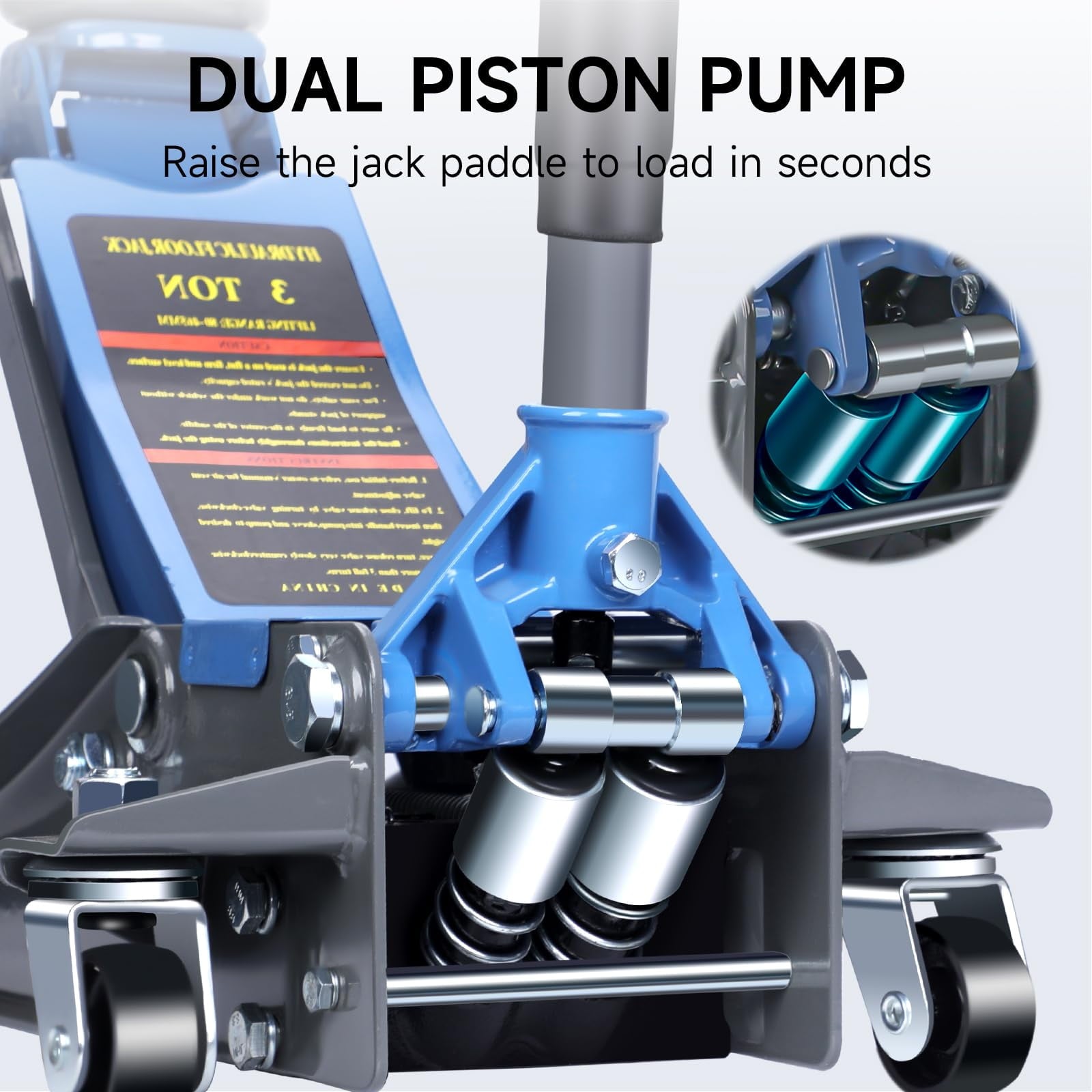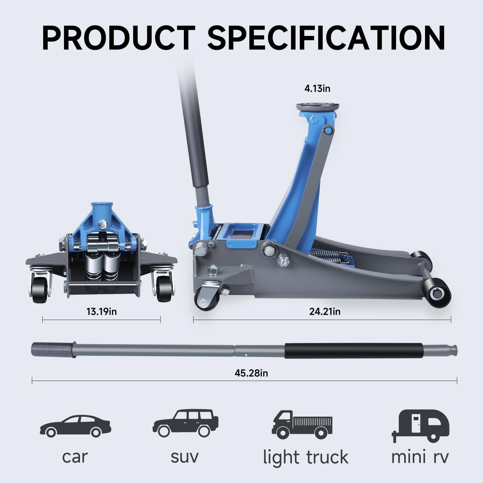 - 【Heavy-Duty 3-Ton Capacity & Wide Saddle】Effortlessly lift your vehicle with a massive 3-ton (6,600 lbs) capacity. The extra-wide 4.65-inch saddle provides superior stability and distributes pressure evenly, protecting your vehicle’s lift points during tire changes, brake jobs, and undercarriage repairs. This jack is built for confident, heavy-duty use.