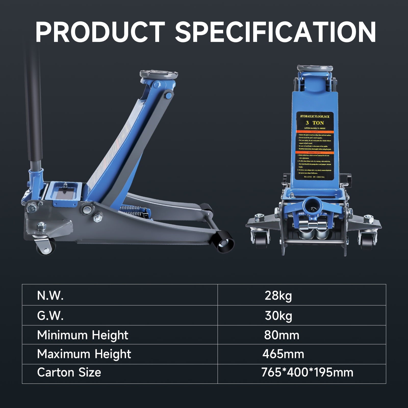 Elevate your garage work with the LARBANKE 3-Ton Heavy Duty Floor Jack. Built with robust carbon steel for exceptional durability, this automotive jack features a wide 4.65-inch saddle for stable lifting and a versatile range from 5.35″ to 18.15″ to accommodate cars, SUVs, and light trucks. The 360-degree swivel casters ensure easy maneuvering on any surface. Perfect for tire changes, brakes, and routine maintenance, it combines a fast lift with precise control for safe and efficient repairs. Always confirm your vehicle’s specifications for a perfect match.