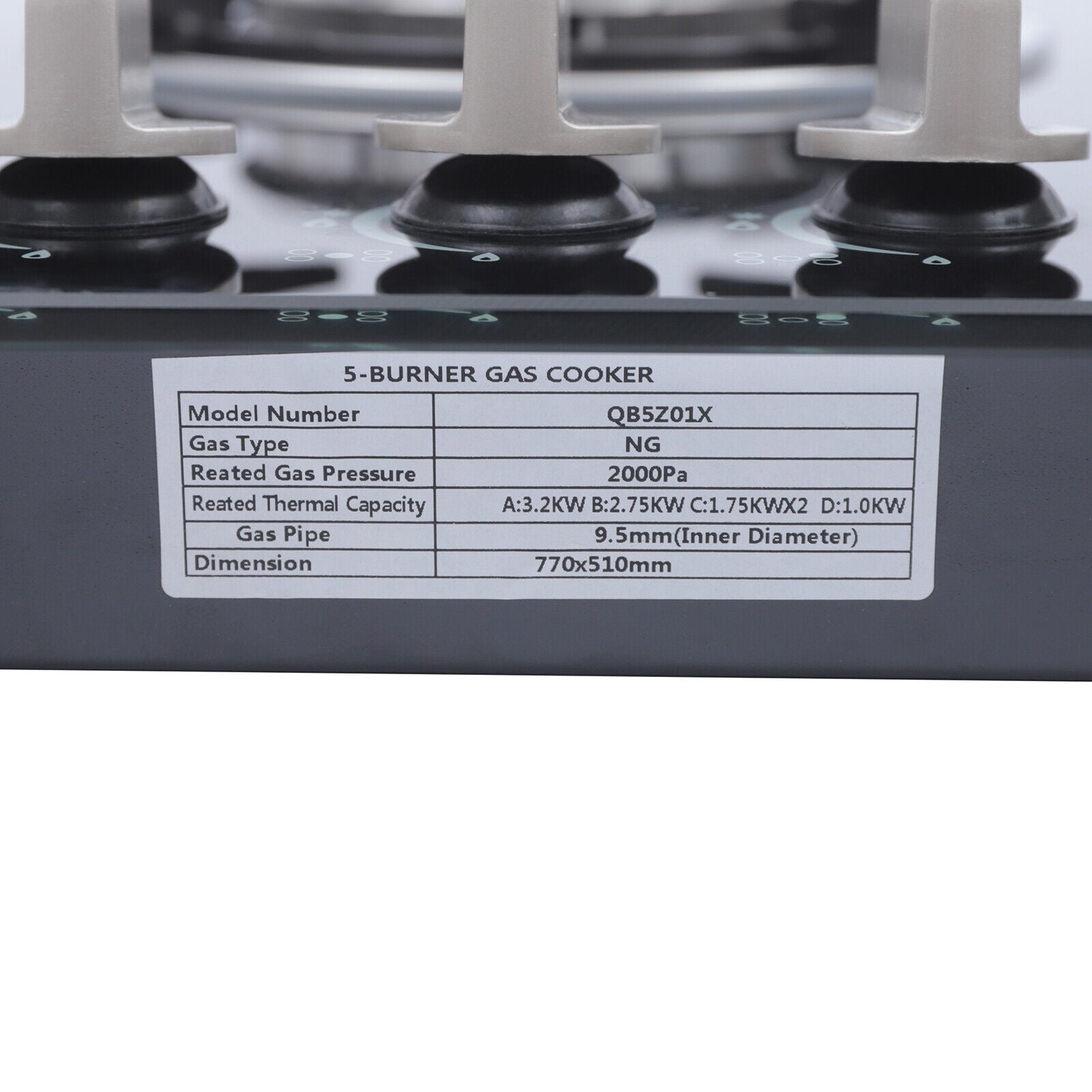• 5 Burners: This 5 burner gas cooktop is equipped with the 770*510mm (30.3″ x 20″) 5 burners tempered glass built-in gas cooktop.With five different burners, you can cook a variety of foods at the same time.