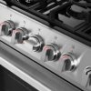 • Modern and professional single oven gas range features premium brushed stainless steel