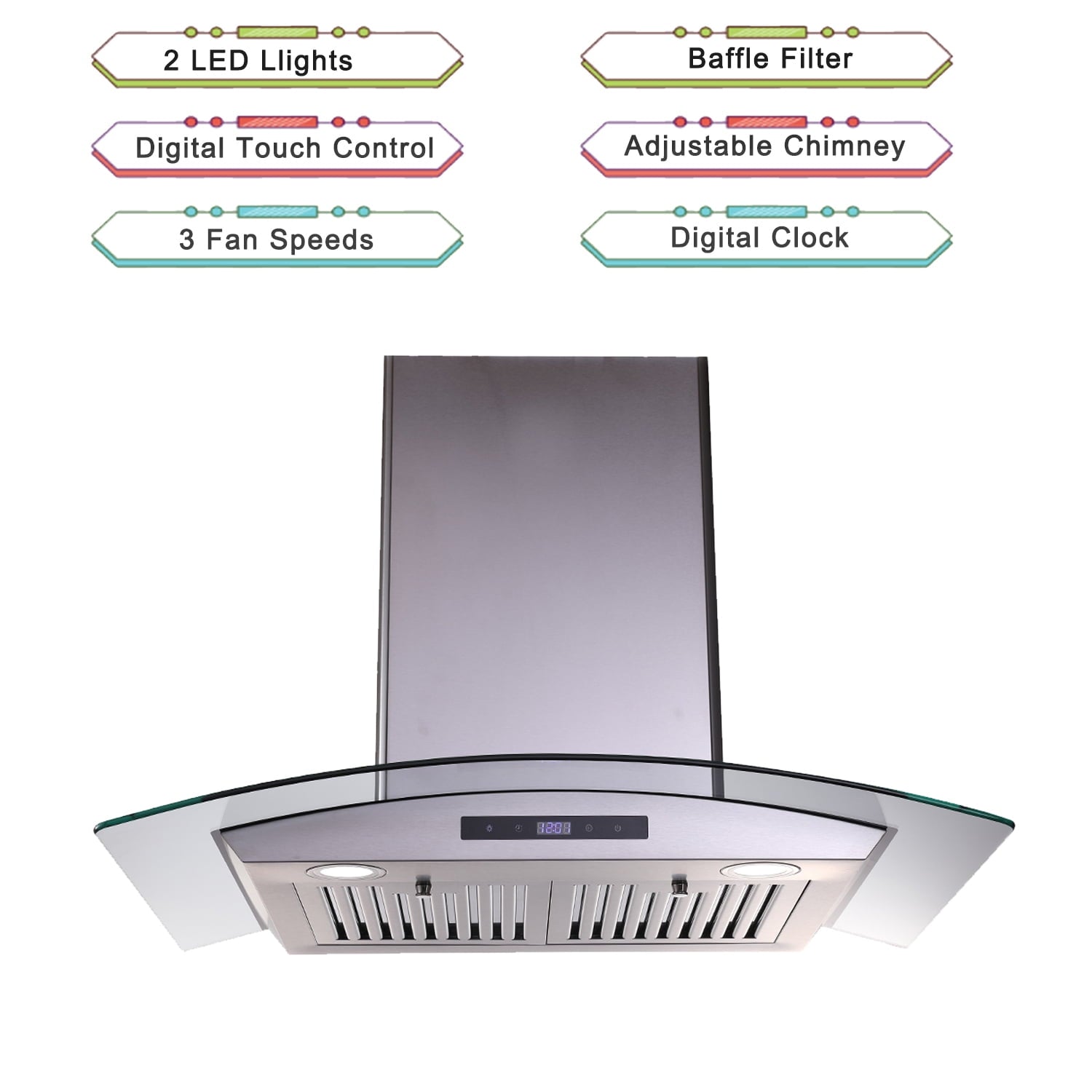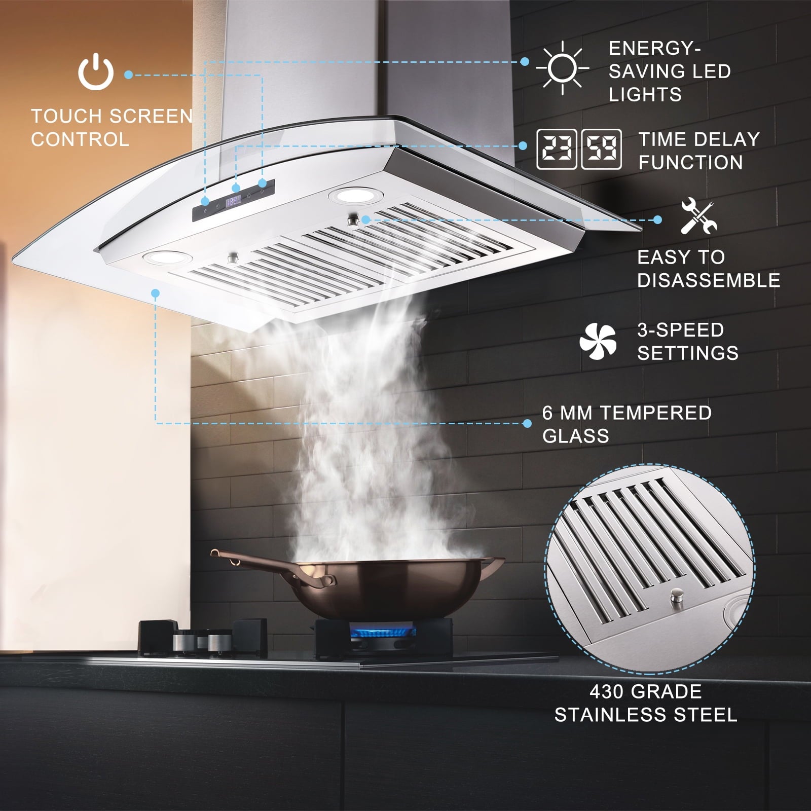Home Range Hoods 30 in. Ducted Wall Mount Range Hood Kitchen Hood Stainless Steel with Touch Control LED Light
