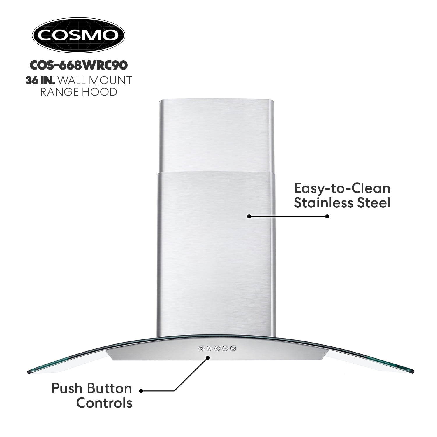 - Push button controls make operating our wall mount range hood easy to control with just a tap of a finger