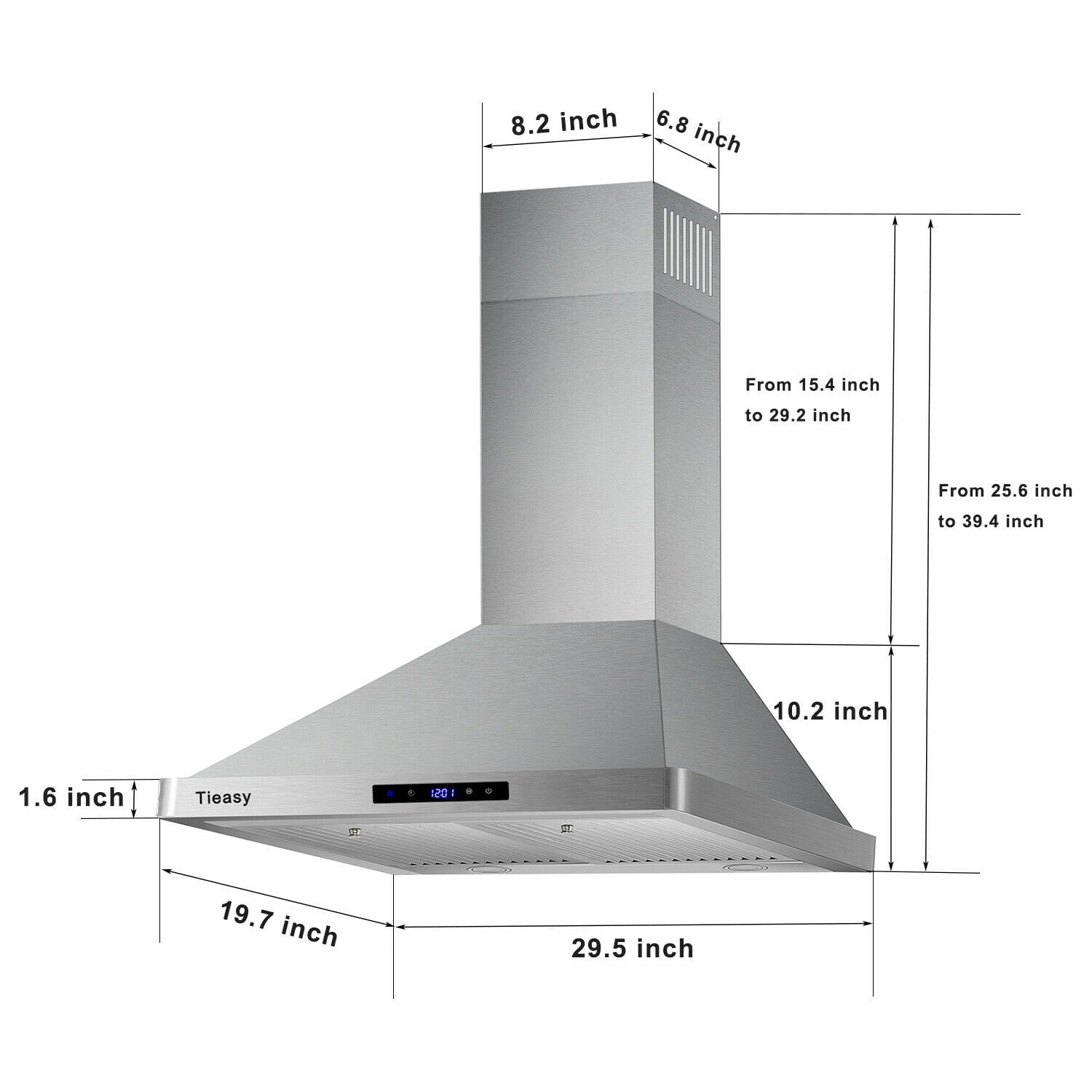 Range hood come equipped with everything needed to easily install and use, including two 15.7-inch telescoping chimney pieces, allowing a fit for most ceilings between 7.5 and 8.5 feet.