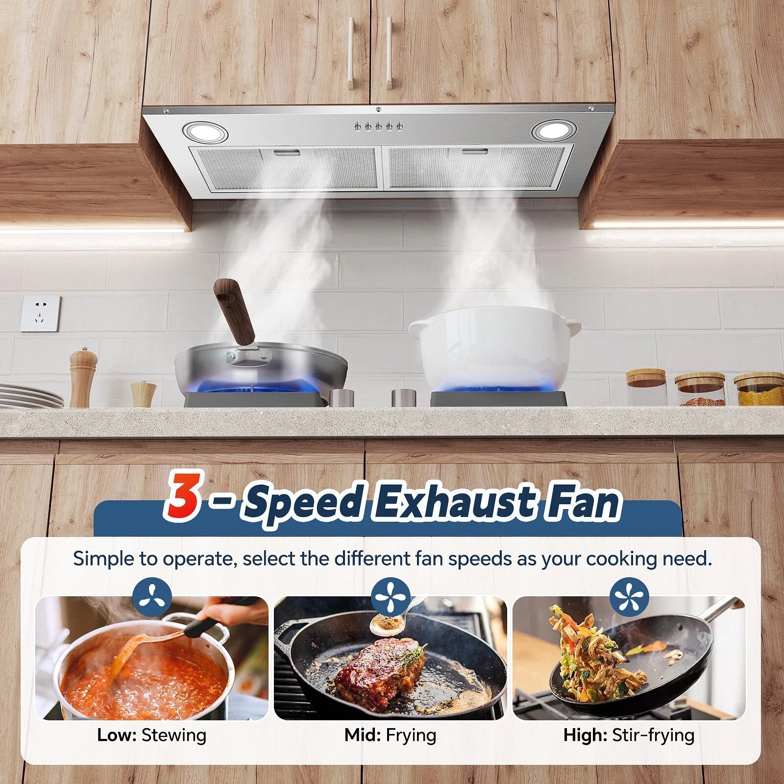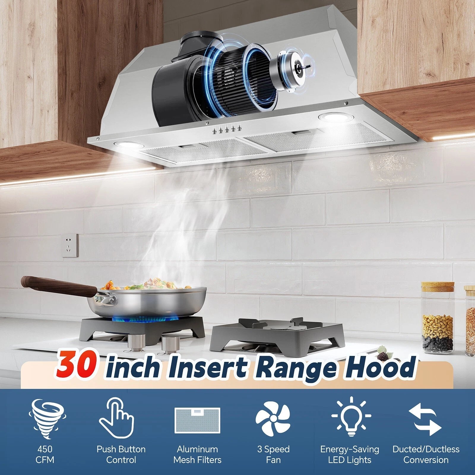 Home Range Hoods 30 inch Built in Range Hood Stainless Steel 600 CFM Integrated Rangehood Cooking Vented
