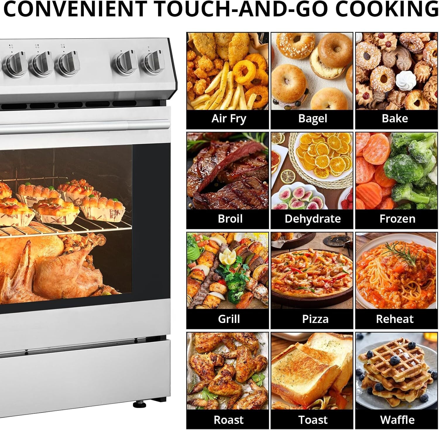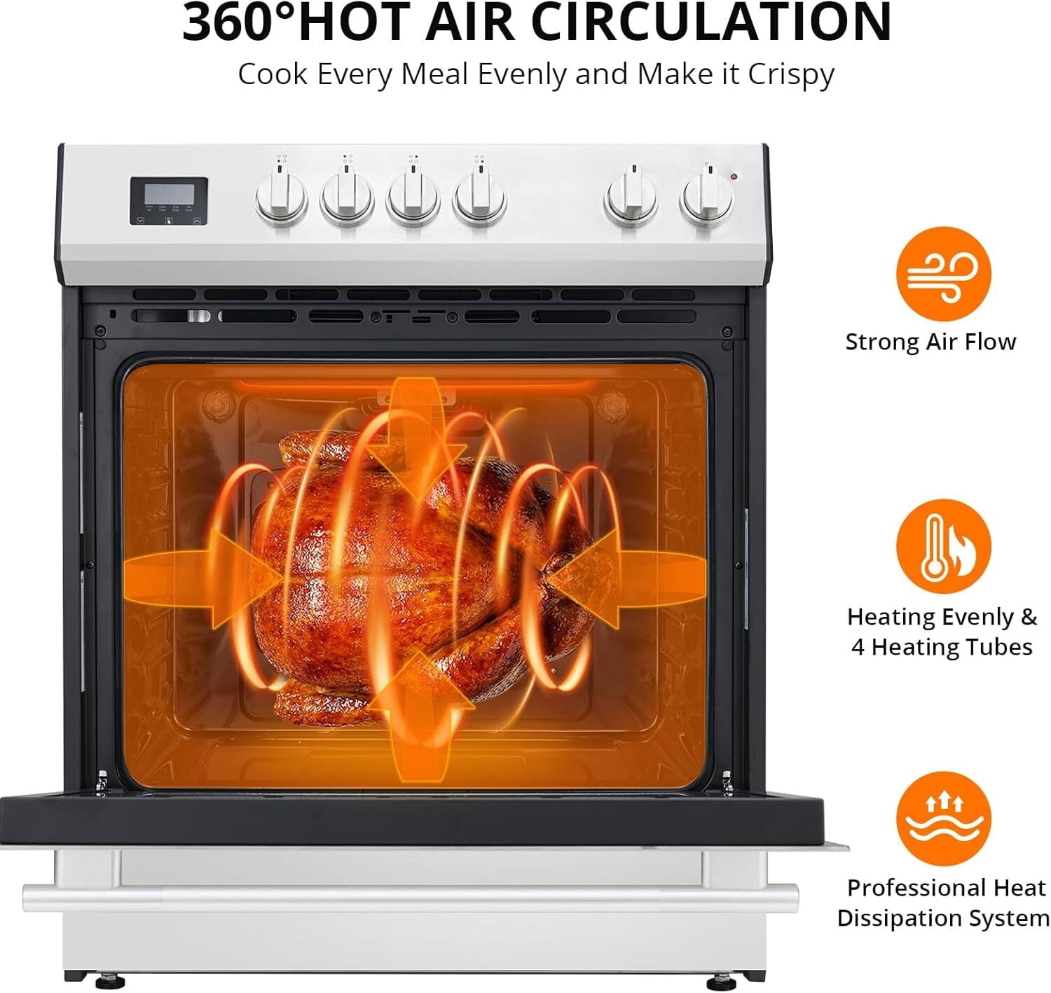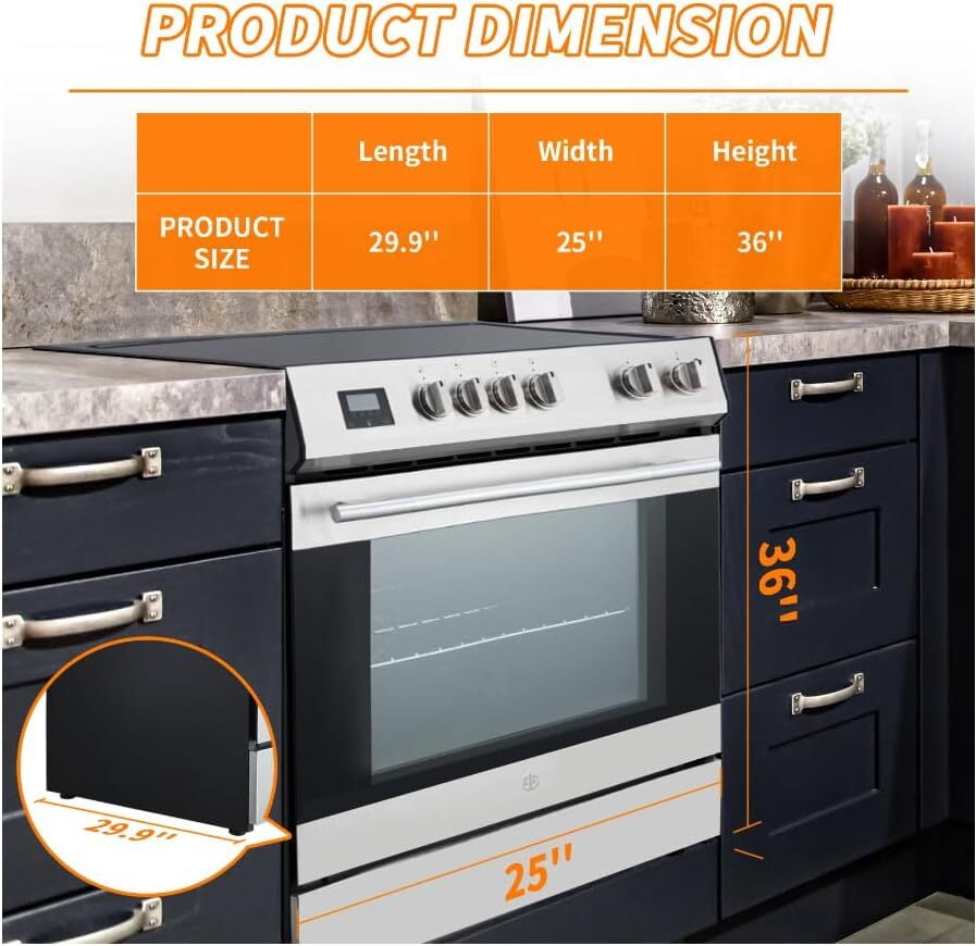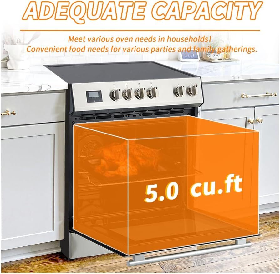 - Safety Features for Peace of Mind: Cook confidently with built-in safety features that enhance your cooking experience. The hot surface indicator light alerts you when the cooktop is still hot, while the cooling ventilation system enhances safe operation. Additionally, the triple-layer oven glass and cool-touch handle design help prevent burns, ensuring a secure cooking environment.