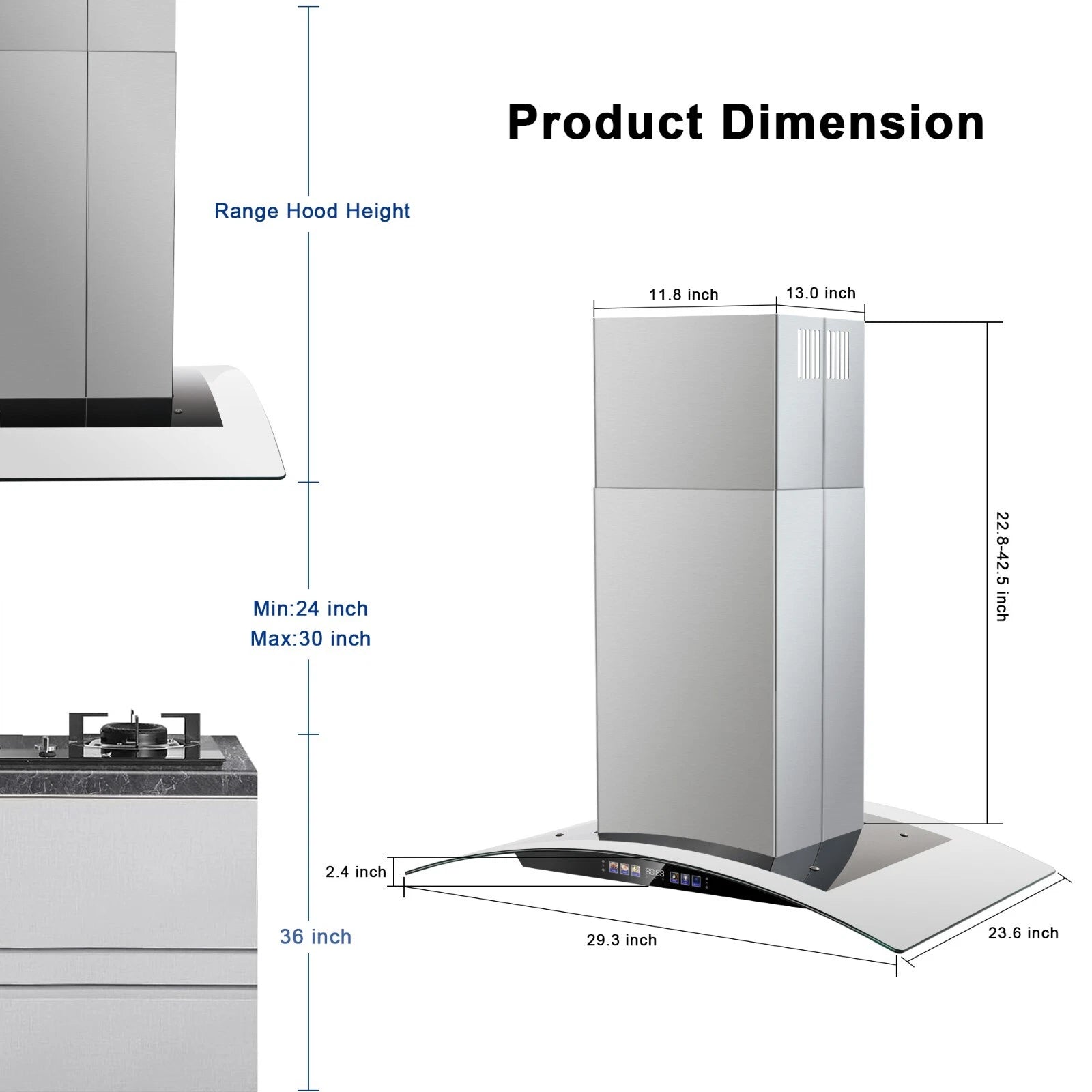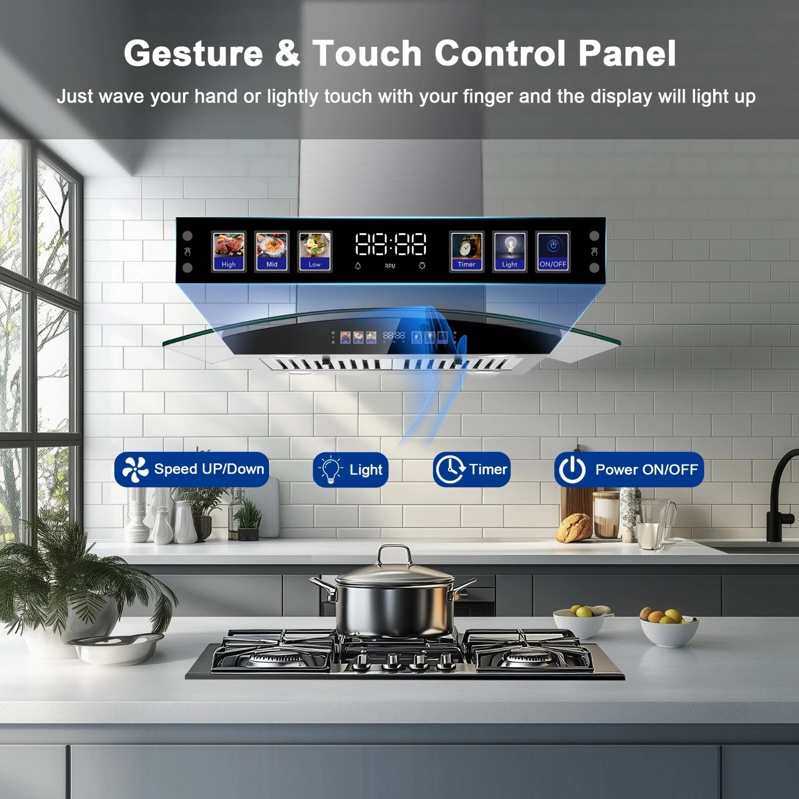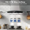 Intuitive Color Touch Screen & Gesture Control:Command your kitchen with this 30 inch island range hood featuring a responsive color touch screen and intuitive hands-free gesture control—perfect for modern over-island setups. Instantly adjust 700-CFM fan speeds, dimmable LED lighting, and cooking timers via color-coded icons, eliminating messy button presses during meal prep
