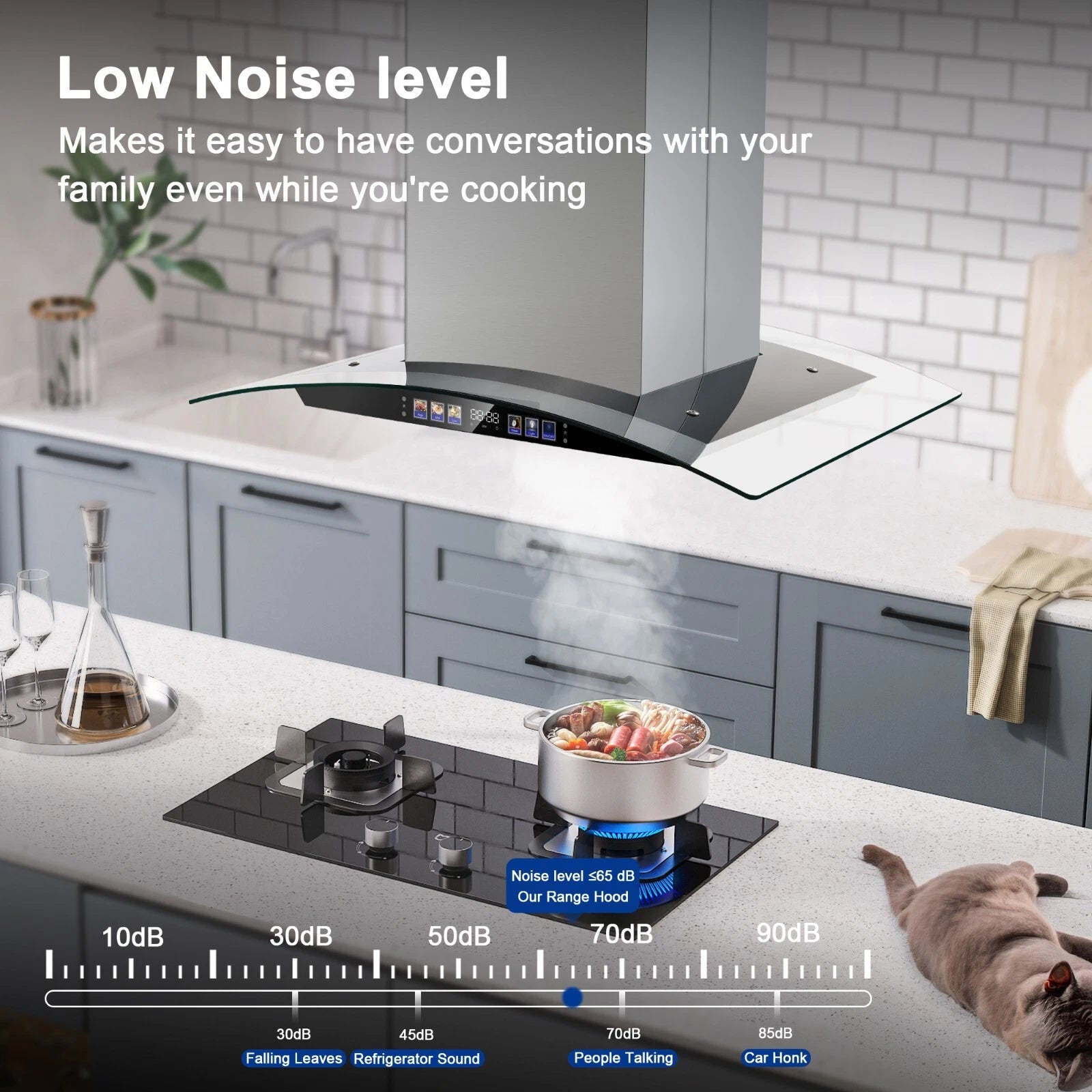 Powerful yet Quiet: The Tieasy island range hood 30 inch delivers ultra-strong 700 CFM suction to instantly clear smoke, grease, and stubborn cooking odors, while advanced noise reduction keeps sound as low as 65 dB—so you can cook, chat, and enjoy a fresh kitchen without the racket