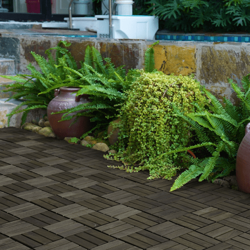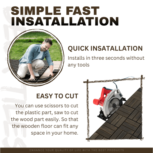 - Perfect Size: Each tile has a square shape of 12 inches x 12 inches with 0.75 inches thickness. The wood part is 0.47 inches thick and the plastic part is 0.28 inches thick enough for drainage during the rainy season.