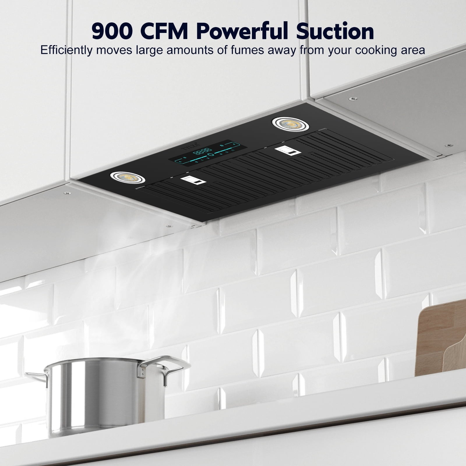 - Strong Adsorption Force: Range hood insert 30 inch includes a 900 CFM motor with strong suction, durable power, long service life and more stable operation, ideal for quickly clearing your kitchen of residual heat, oil fumes and harmful carcinogens and reducing the damage to your skin and health.