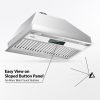 The range hood offers powerful suction with a maximum of 900CFM speed. It can easily and effectively take away large amounts of smoke and oil grease from the air in your kitchen. Meanwhile, the noise level at the highest speed is low at 60dB, bringing you a quiet cooking zone.