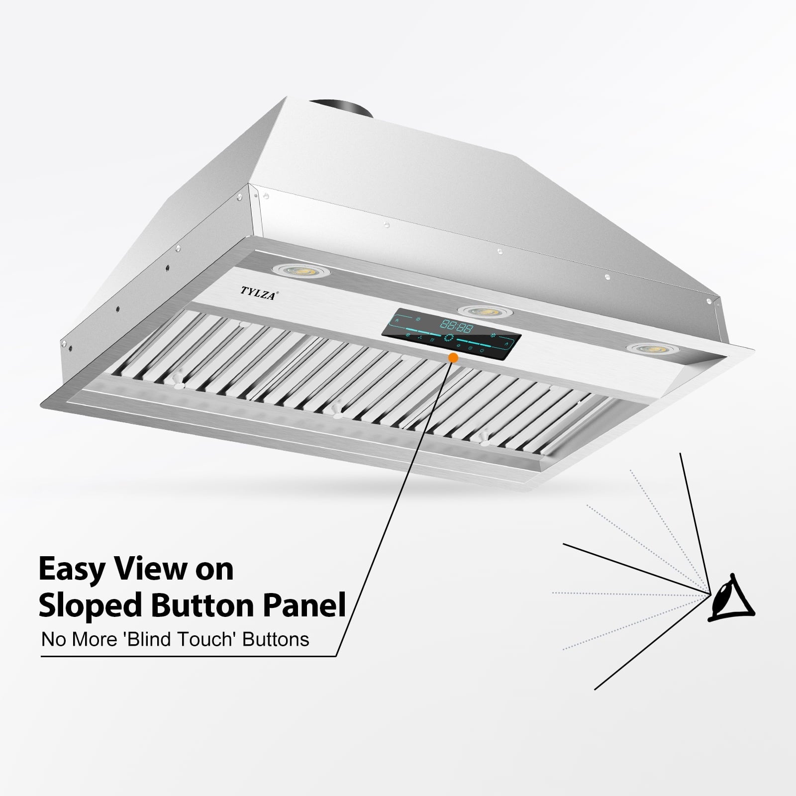 Easy-Operating Panel: This insert vent hood adopts push-button control, which can be used easily via simply selecting the mode you need. It has a 4-speed adjustment, which allows you freely switch between low, medium, and high fan speeds according to different cooking requirements. A light button can conveniently turn on or off the two equipped LED lights.