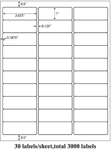 30 per sheet shipping labelsSize:1″ x 2-5/8″ | 30000 Labels Material:Paper Finish Type:Adhesive Shape:Rectangular